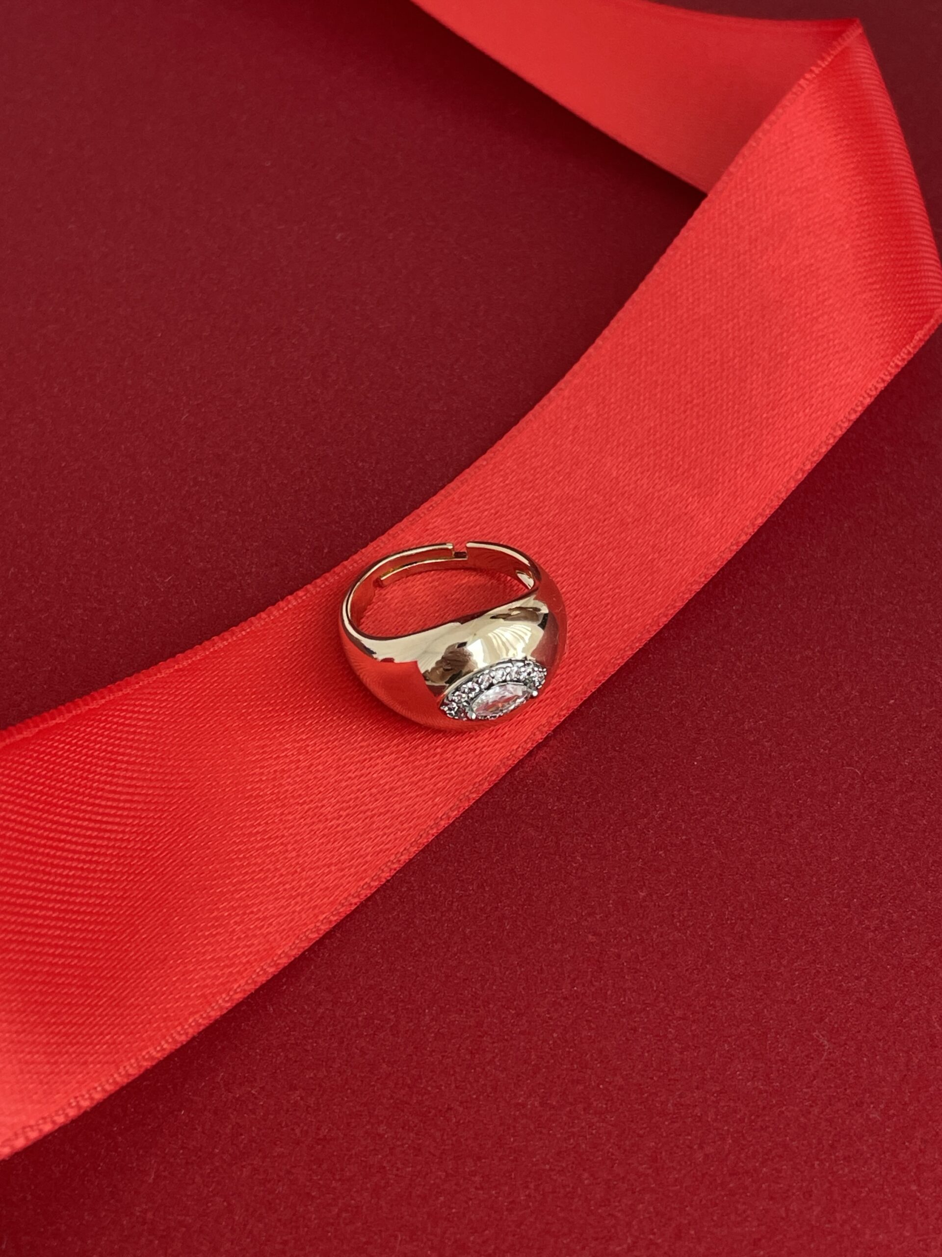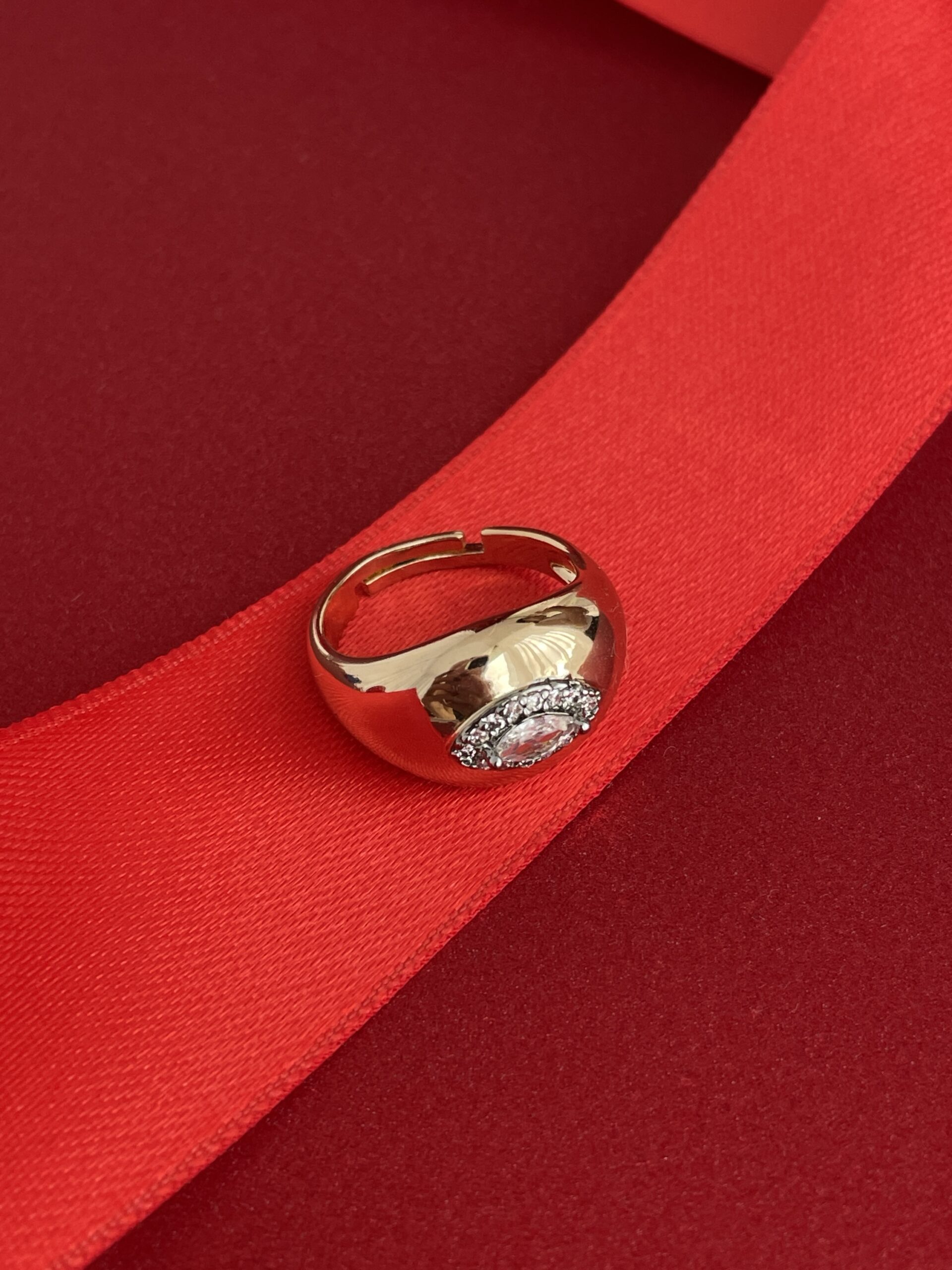 NS-Zirkon Taşlı Oval Tasarım Ayarlanabilir Gold Yüzük