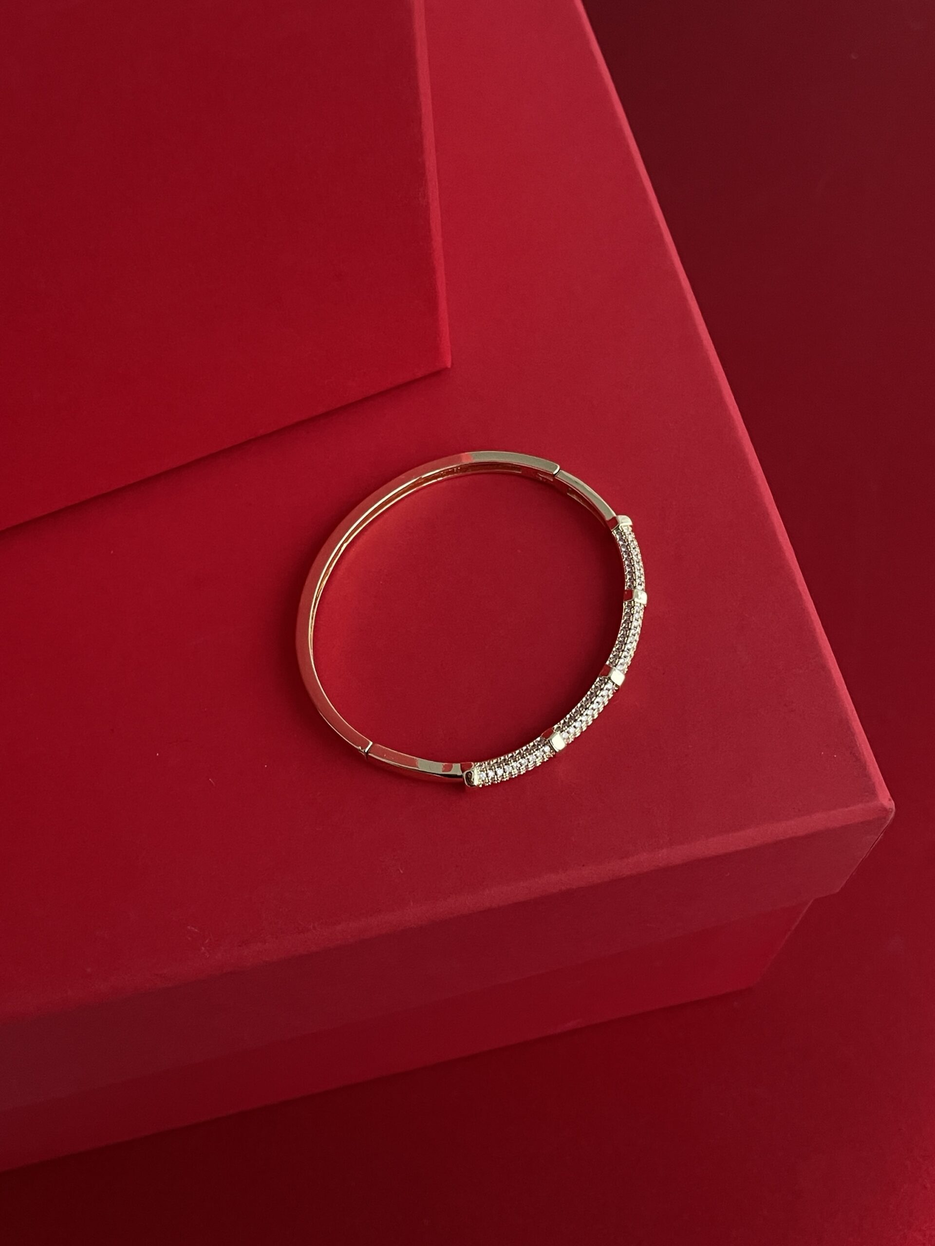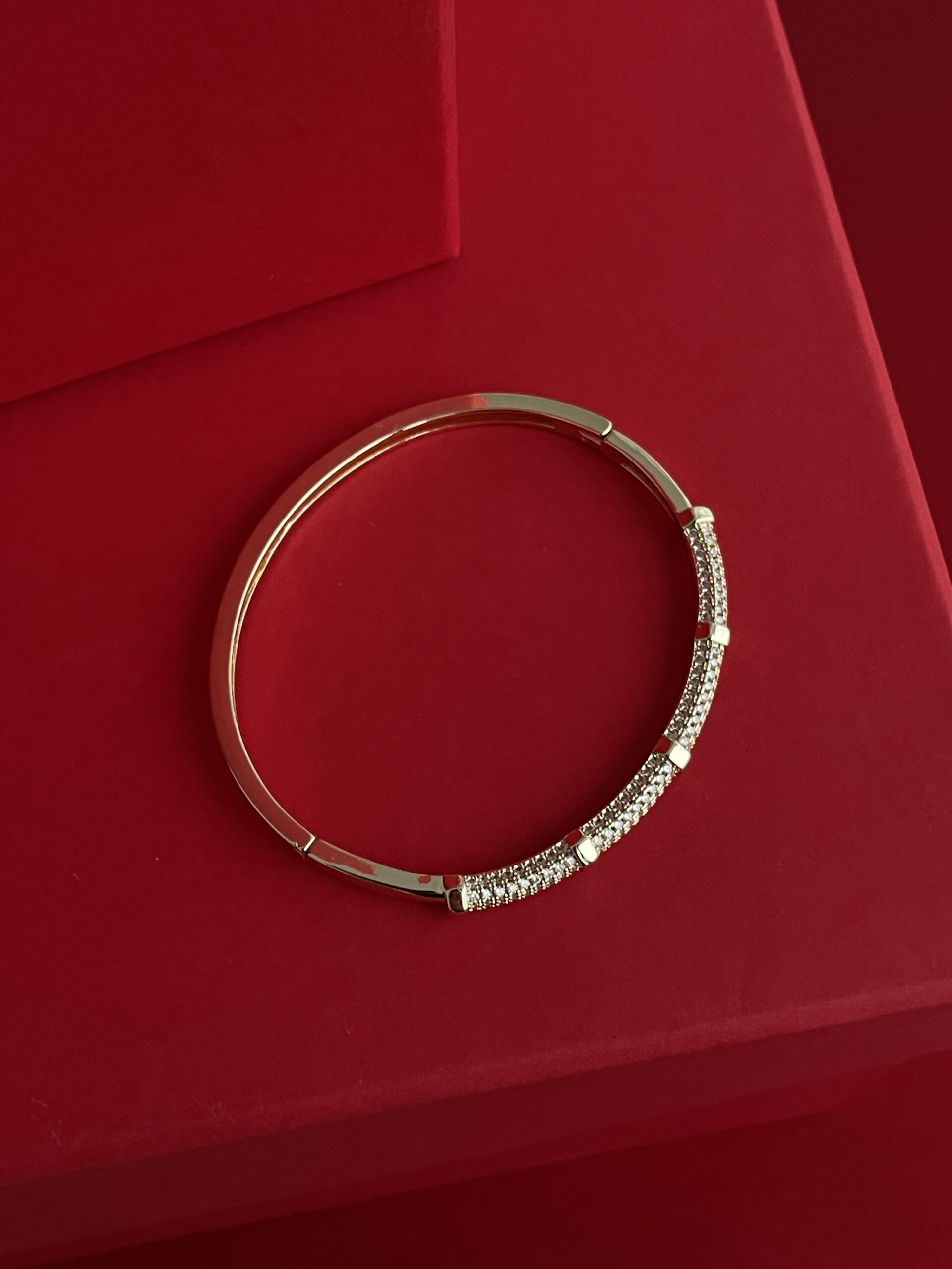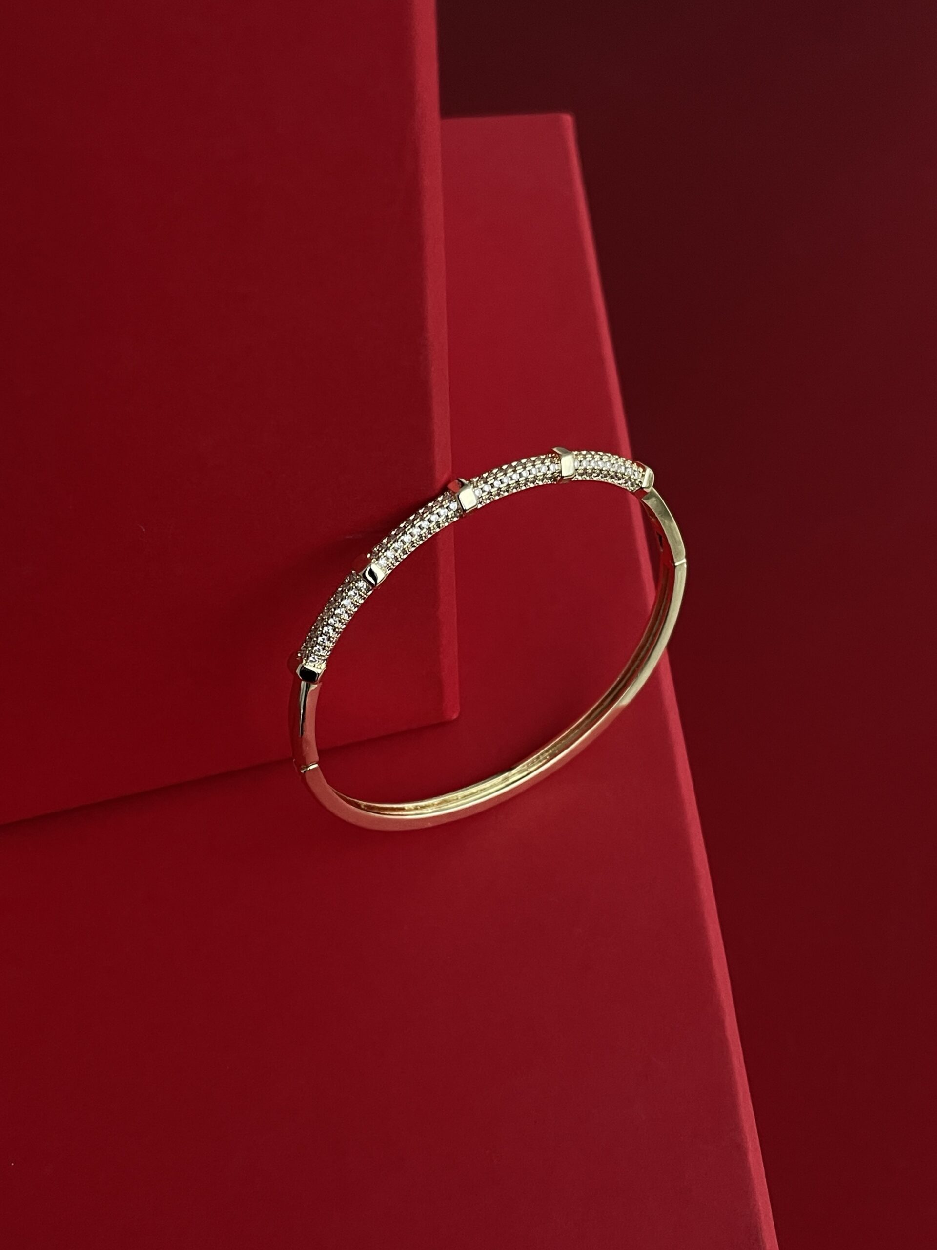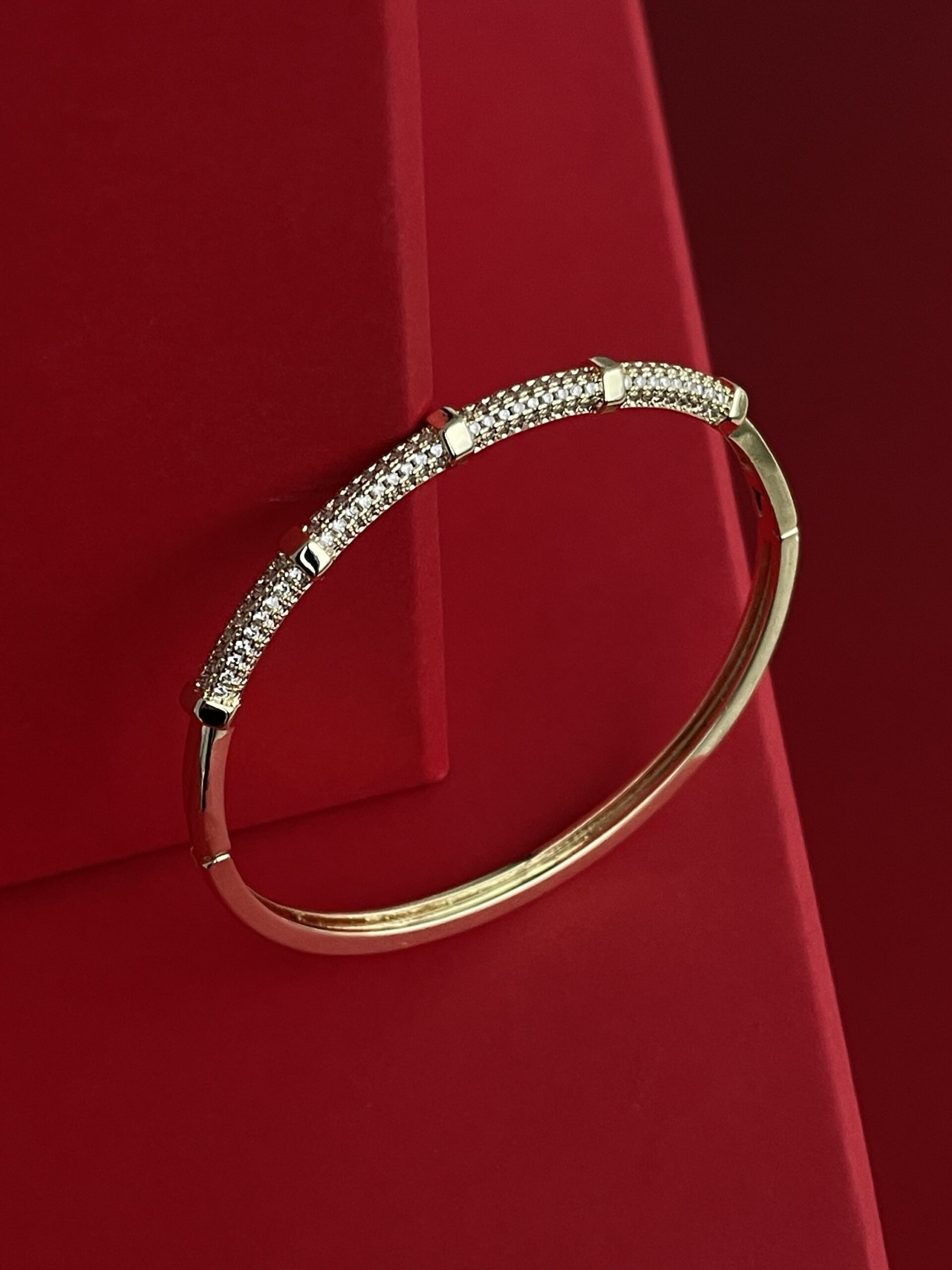 NS-Zirkon Taşlı Halka Tasarım Gold Kelepçe Bileklik
