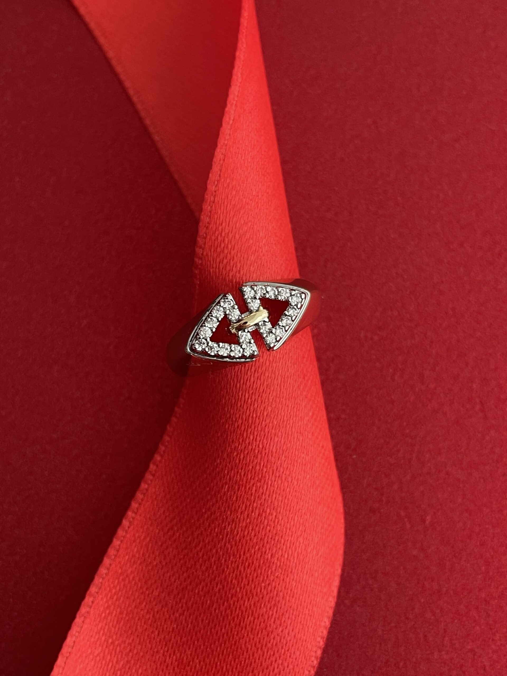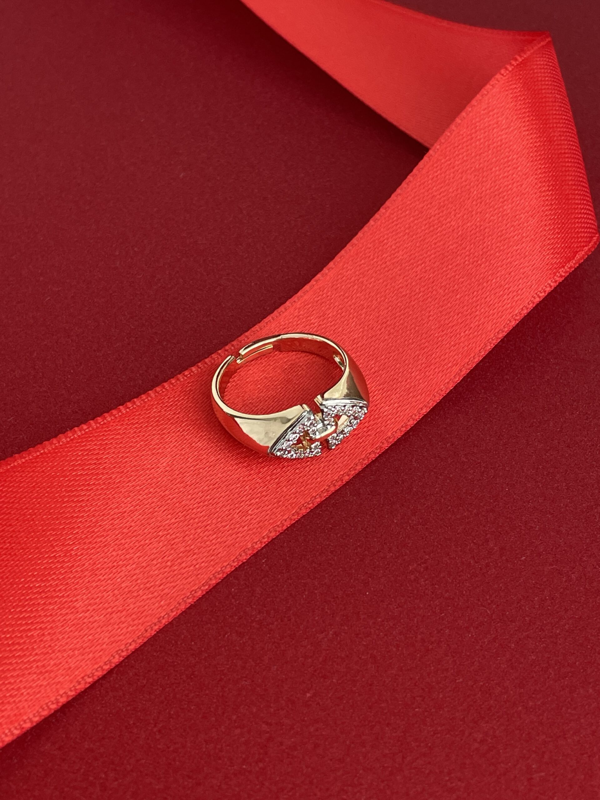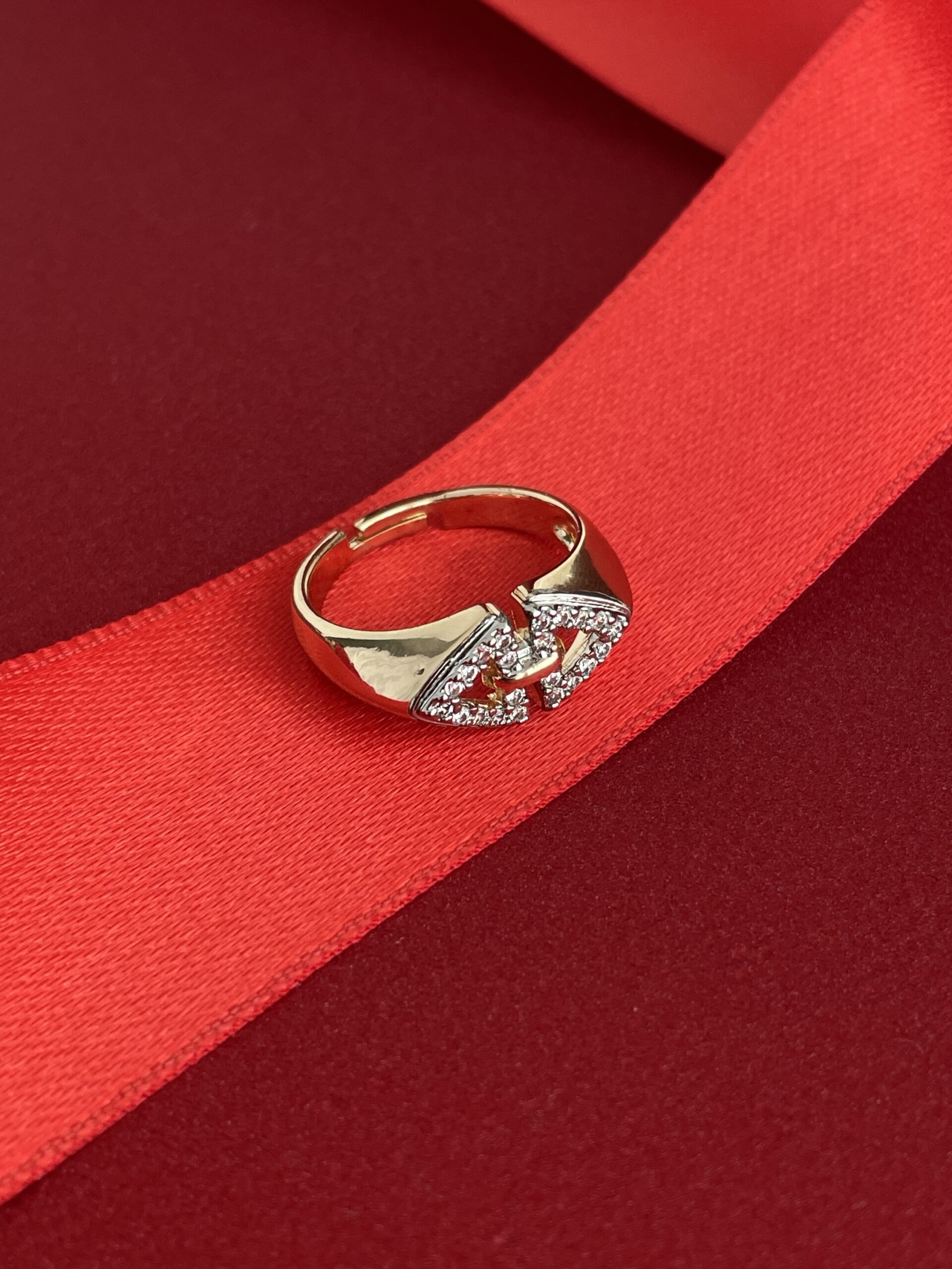 NS-Zirkon Taşlı Üçgen Tasarım Ayarlanabilir Gold Yüzük