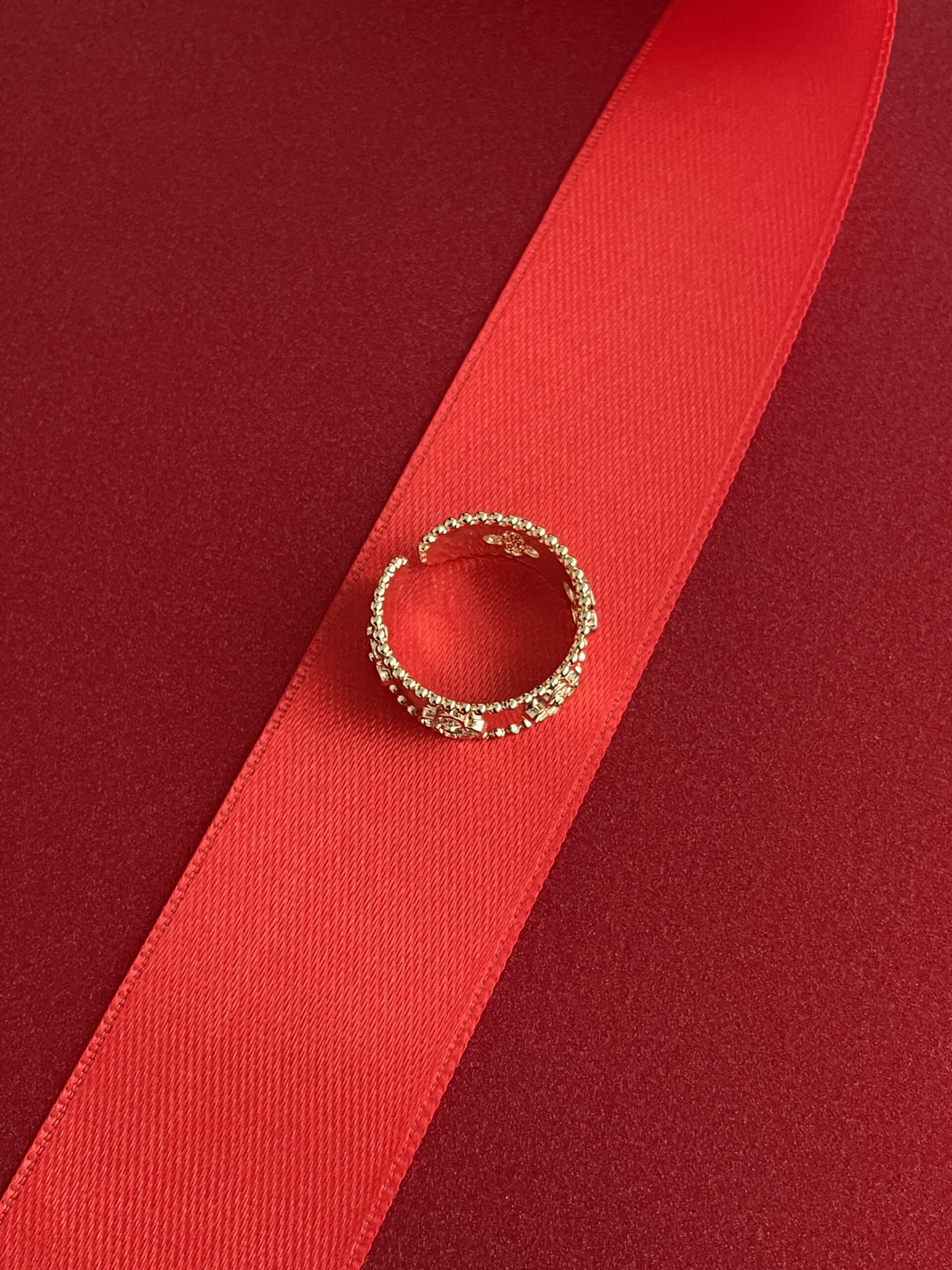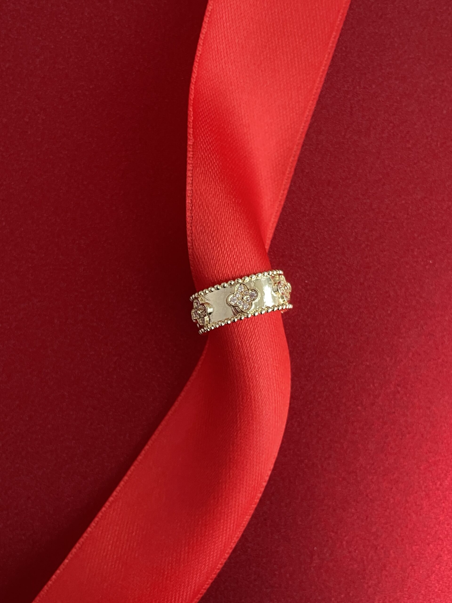 NS-Zirkon Taşlı Yonca Tasarım Ayarlanabilir Gold Yüzük