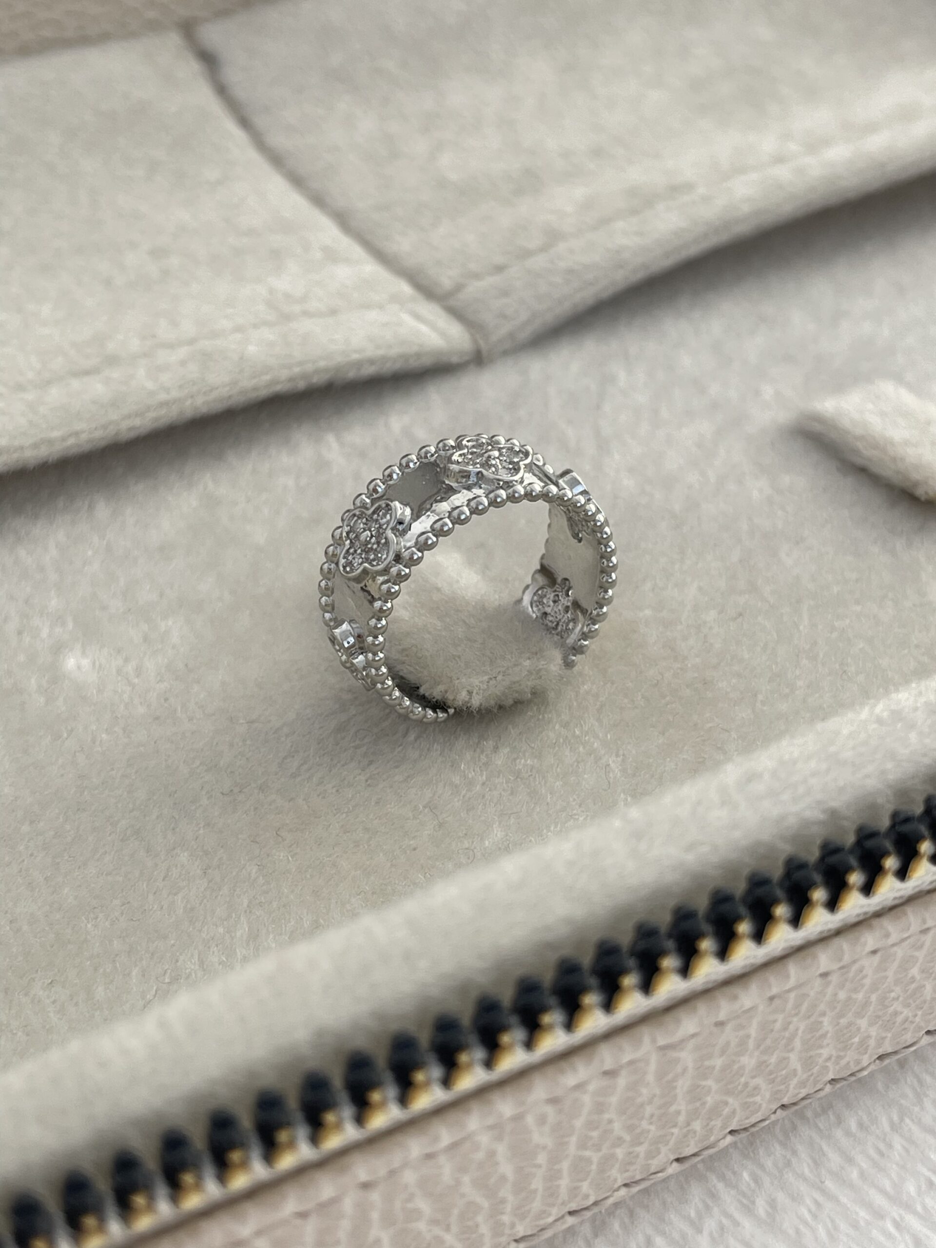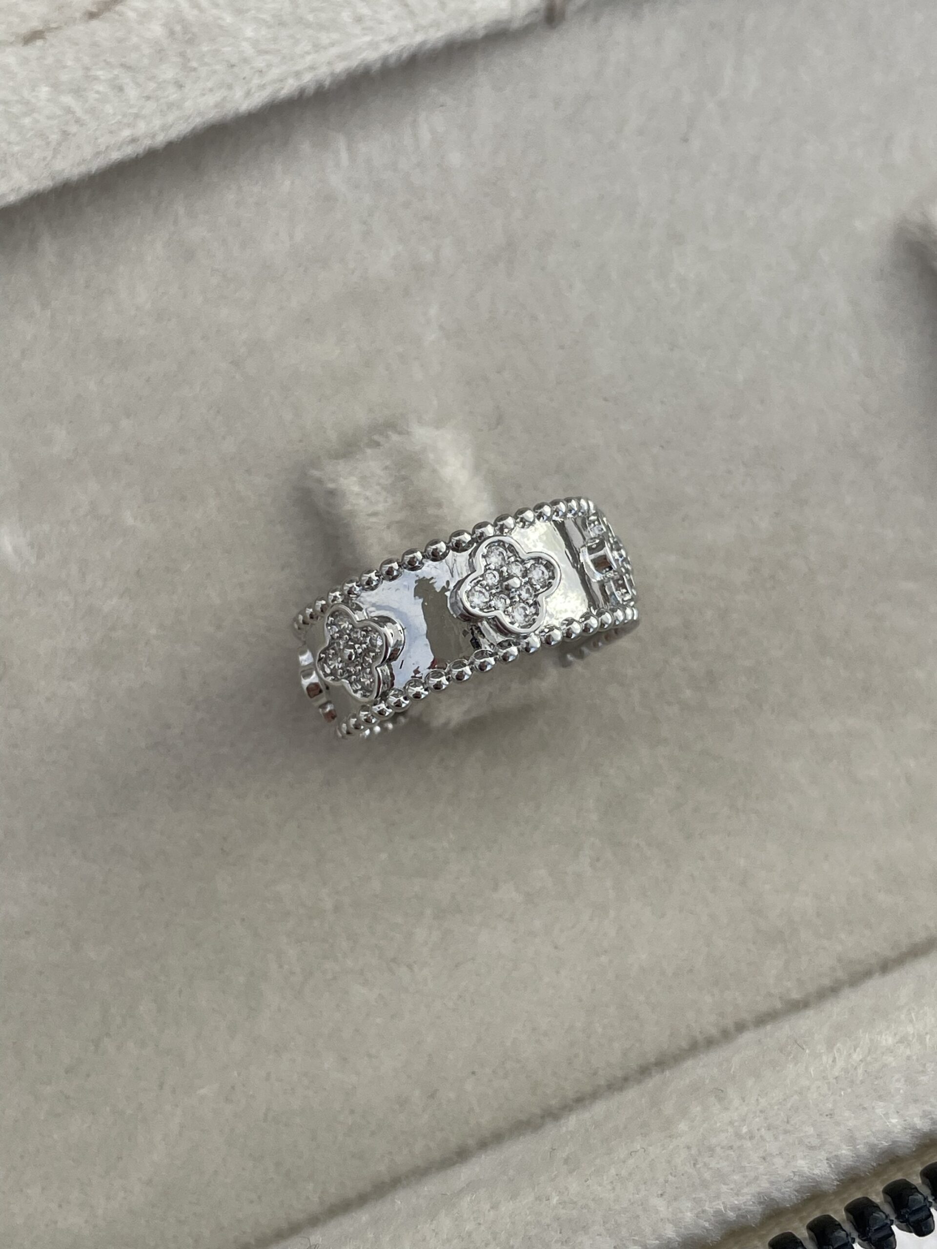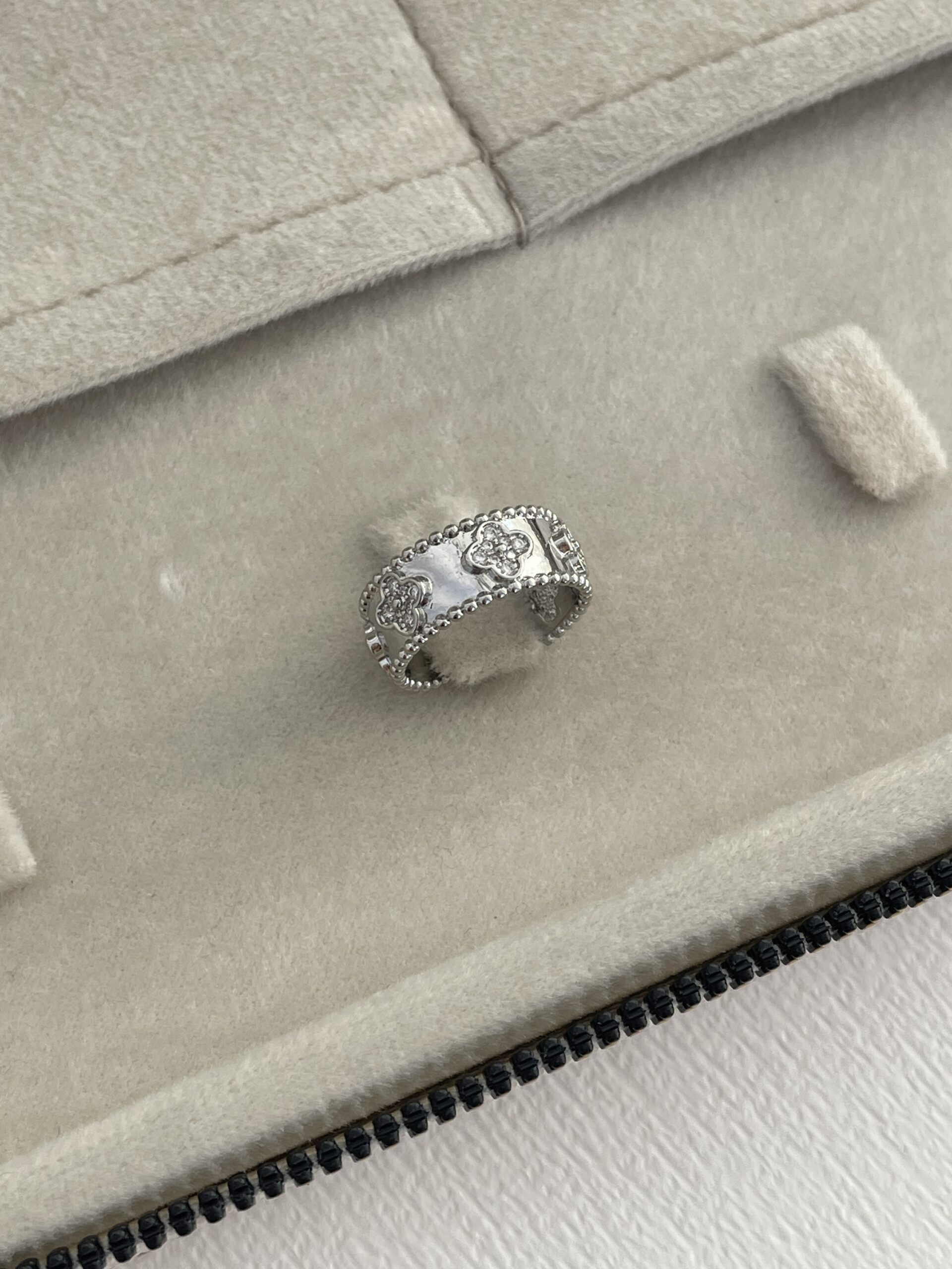 Özel Seri Zirkon Taşlı Yonca Tasarım Ayarlanabilir Gümüş Yüzük