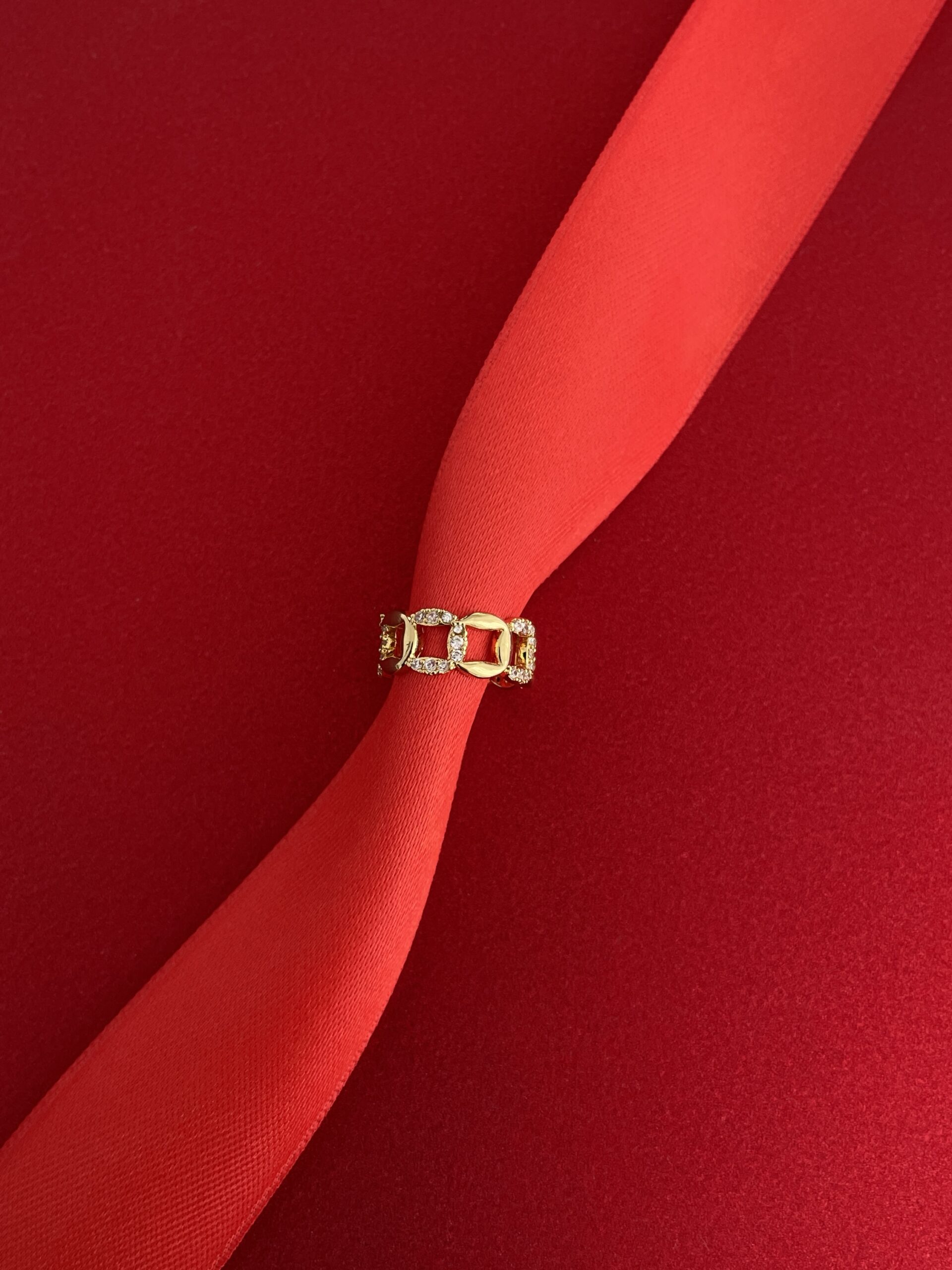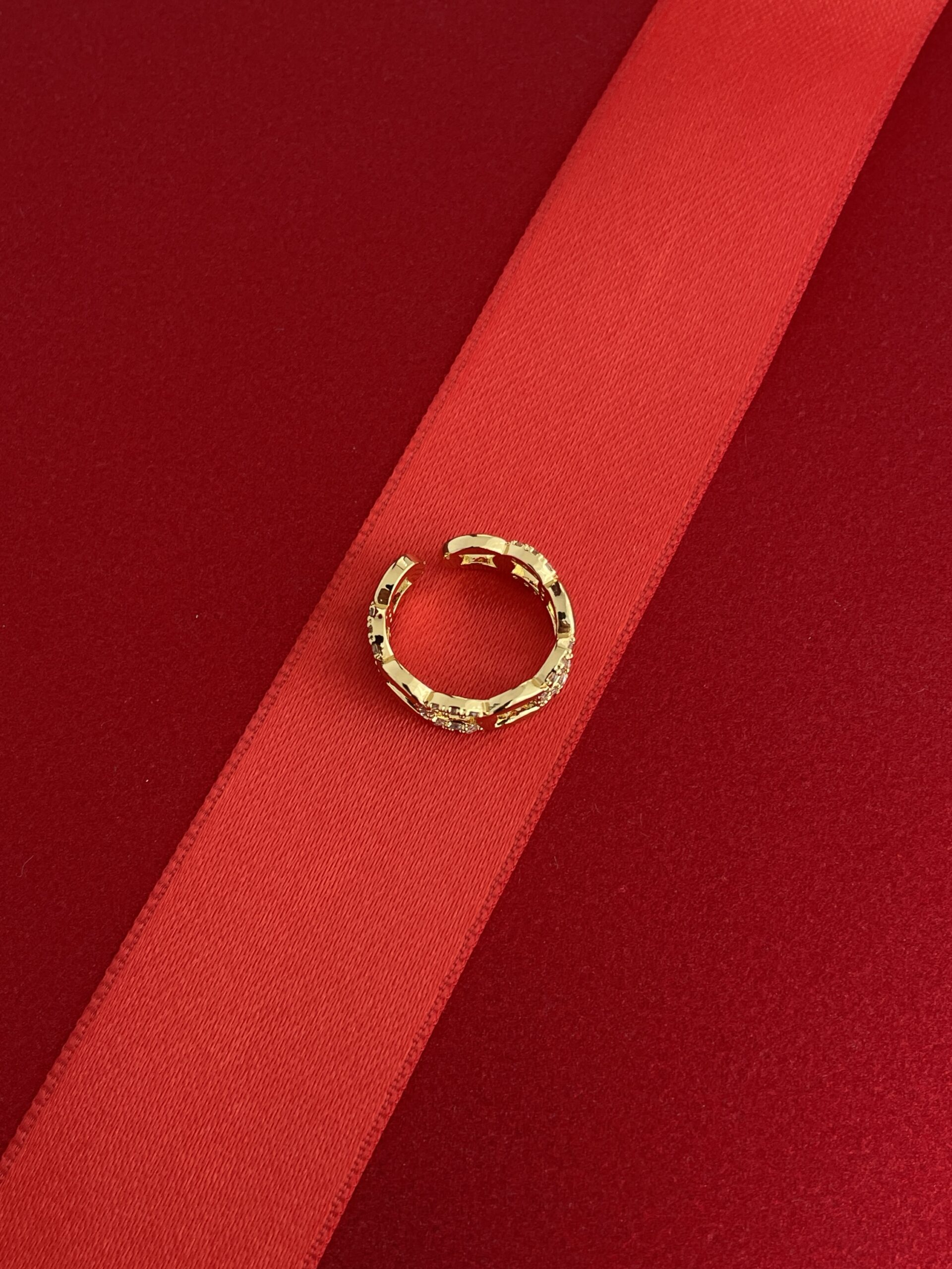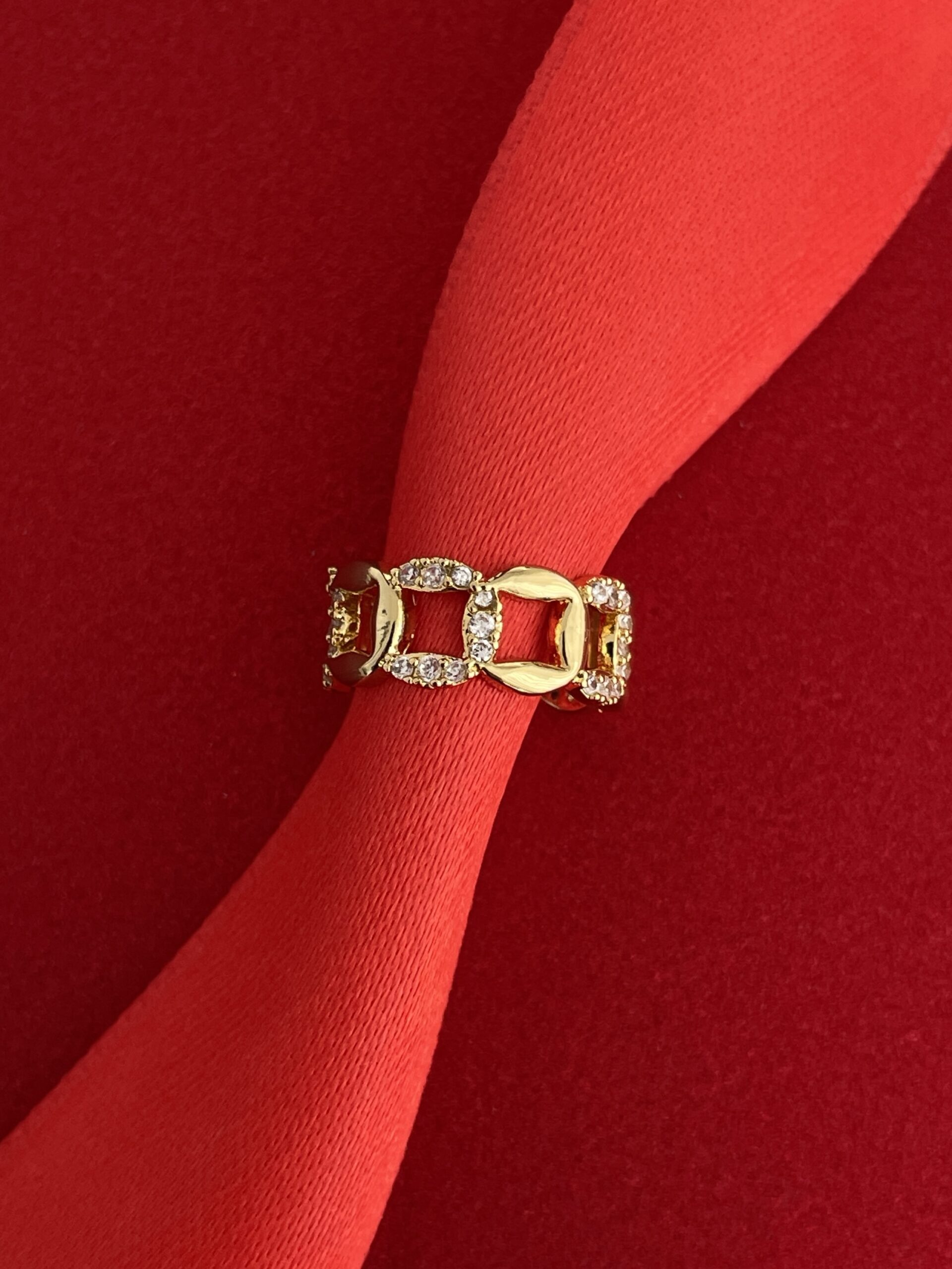 NS-Zirkon Taşlı Zincir Model Ayarlanabilir Gold Yüzük