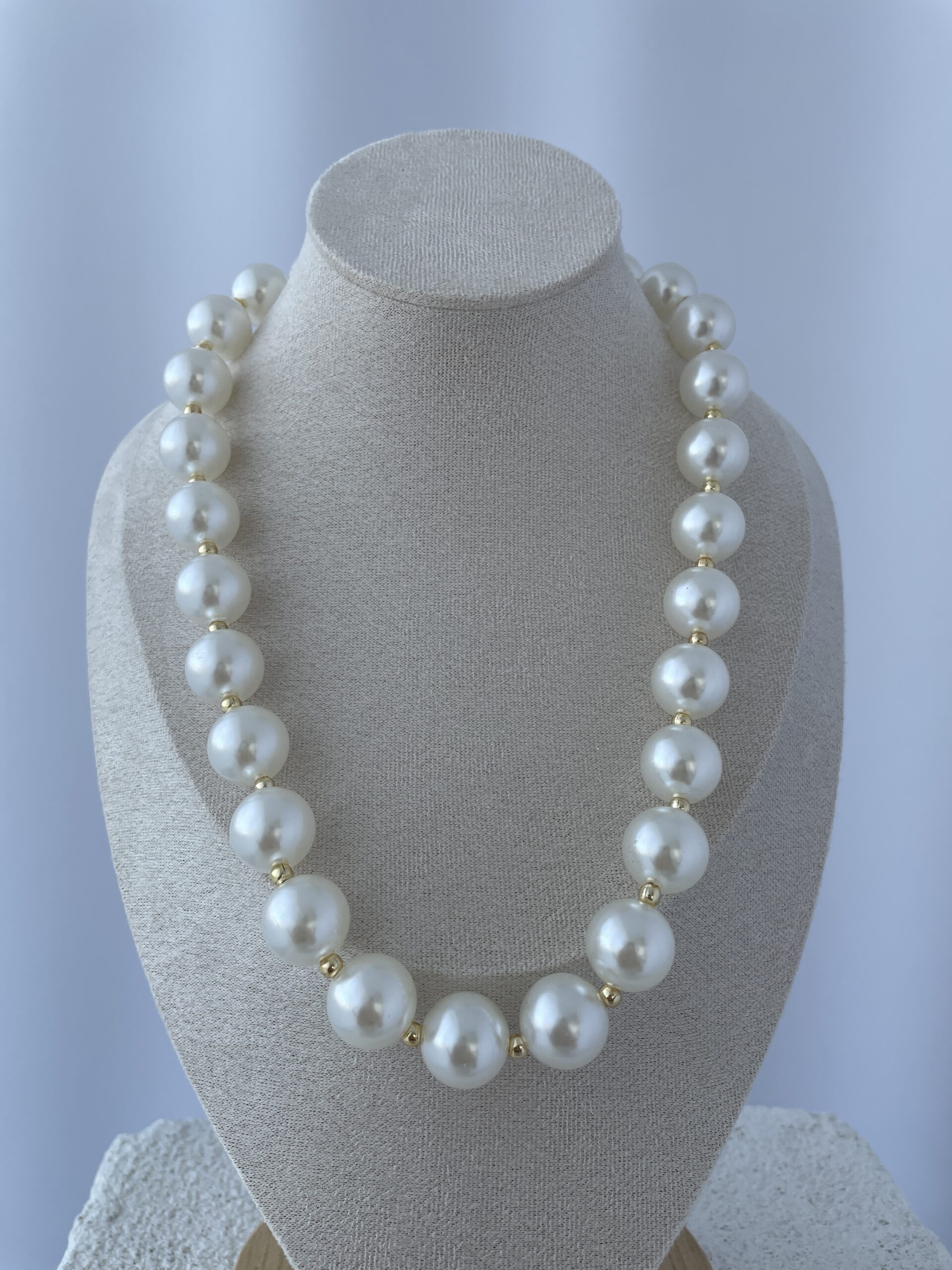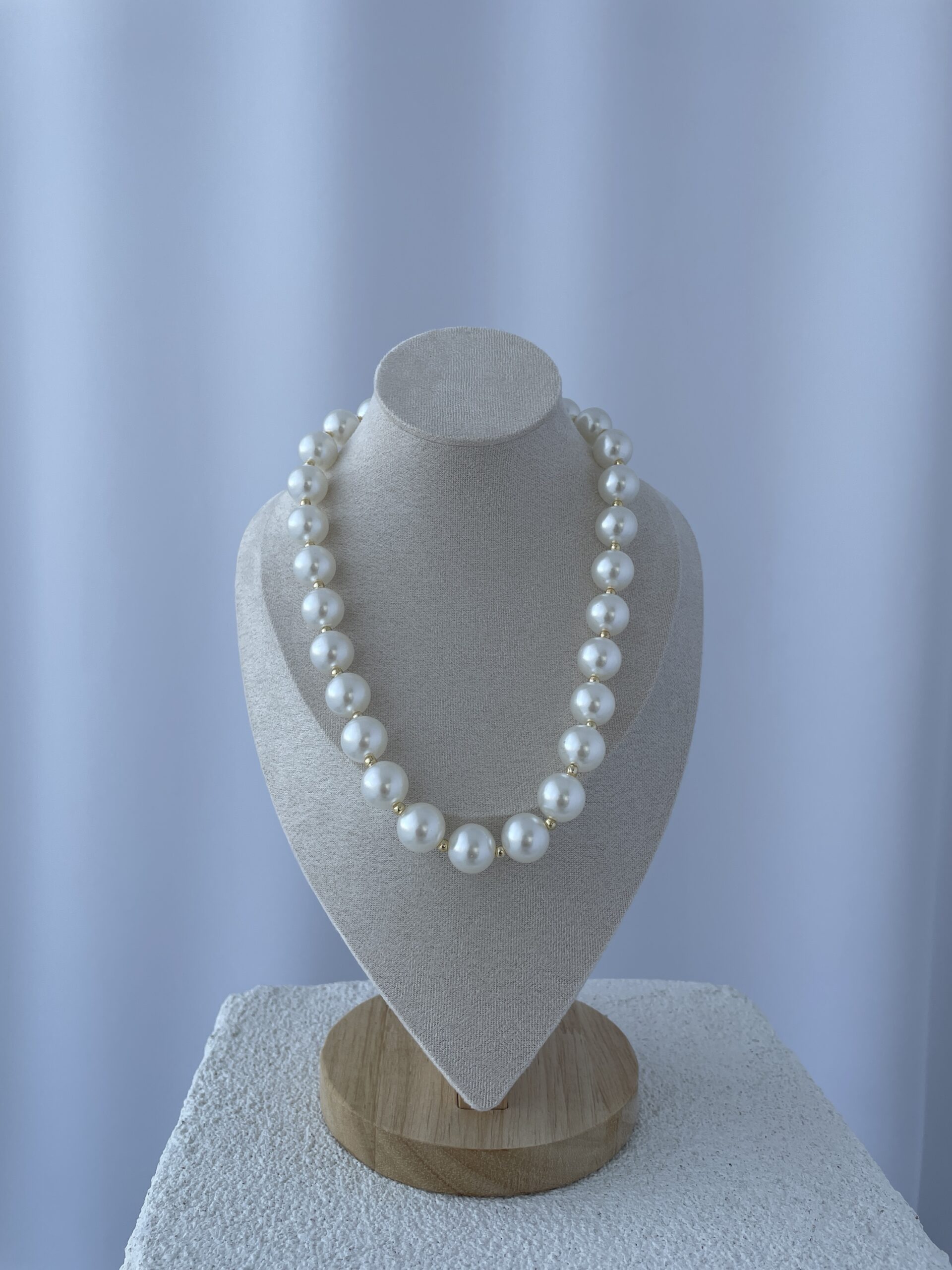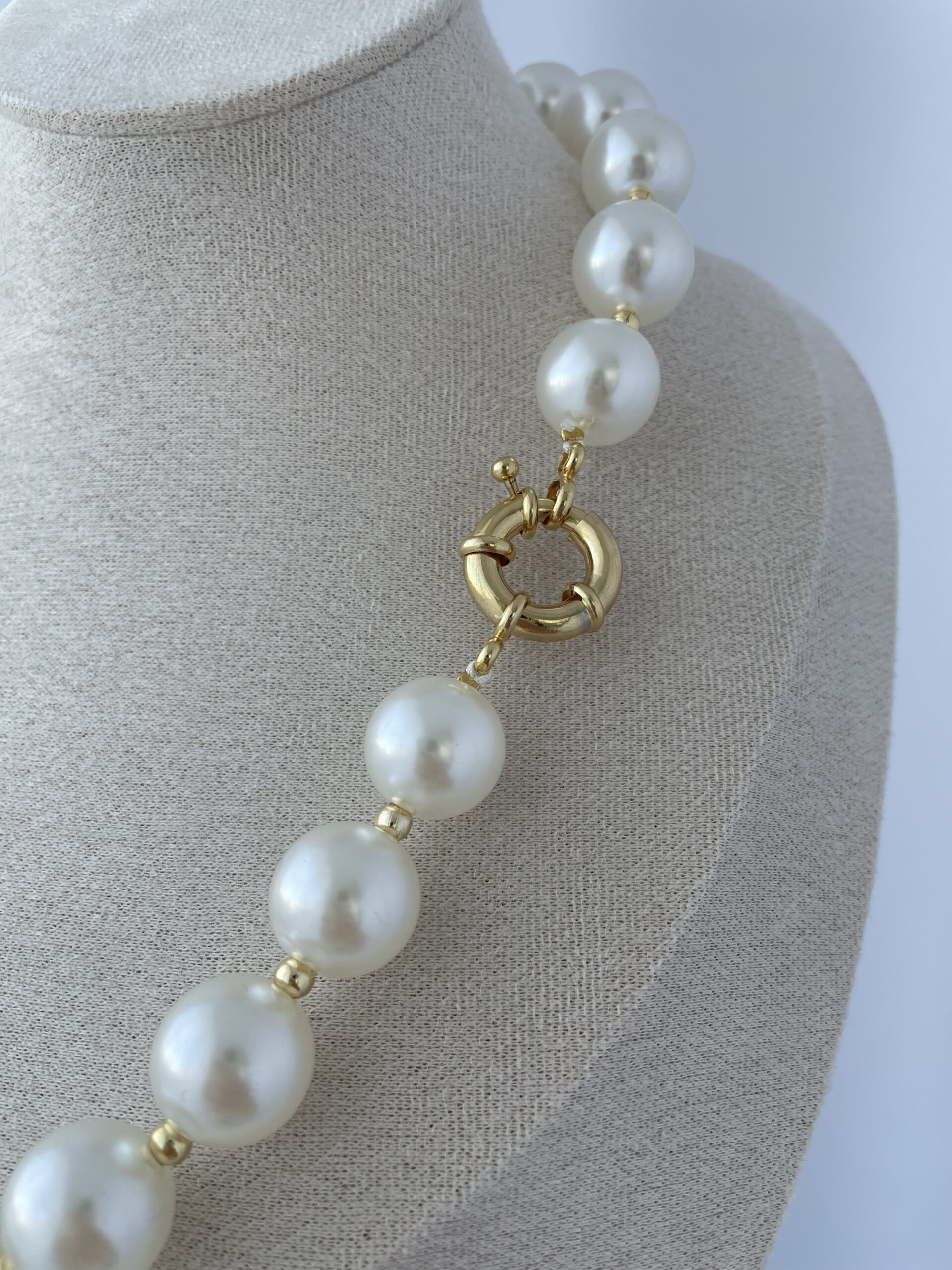 Özel Seri 15 mm Gold Detaylı İnci Kolye 52cm