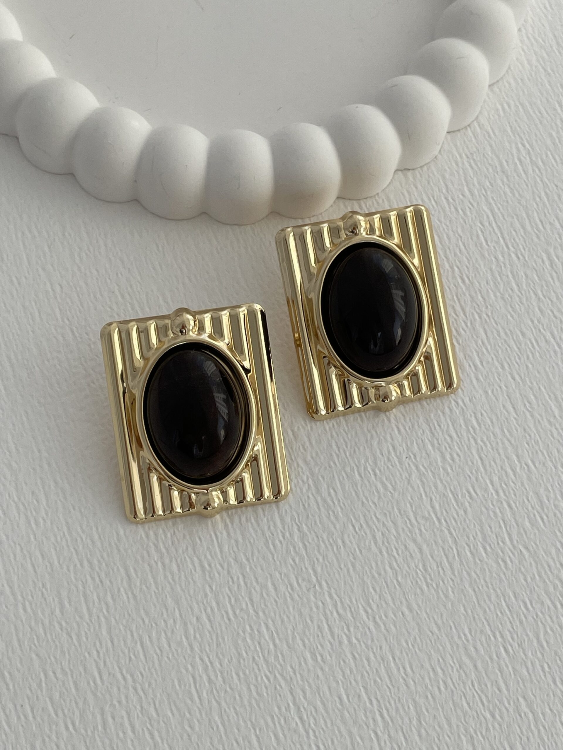 Özel Seri Acı Kahverengi Kemik Tırtık Desen Gold Küpe