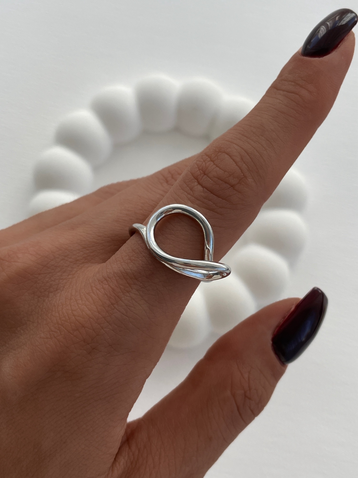 Özel Seri Geometrik Tasarım Gümüş Ayarlanabilir Yüzük