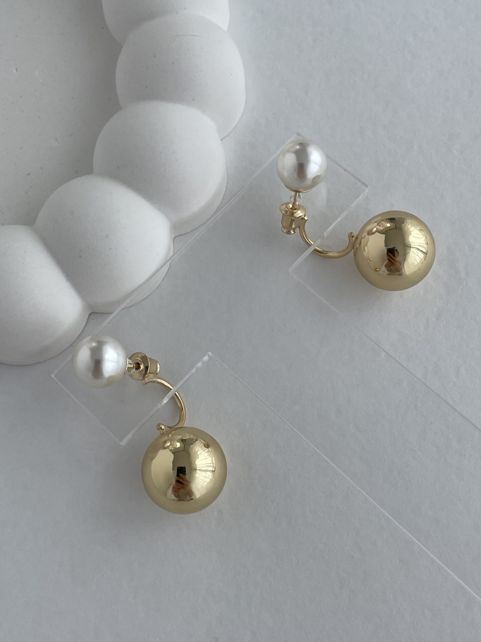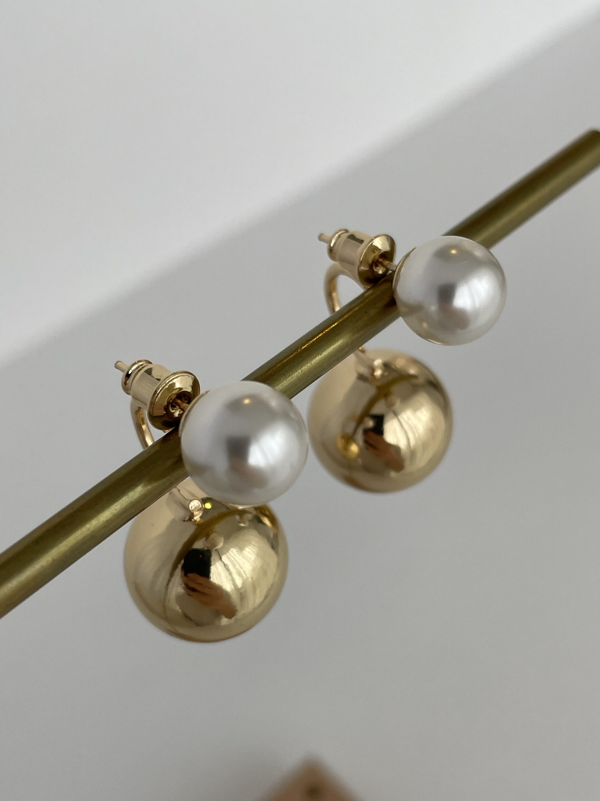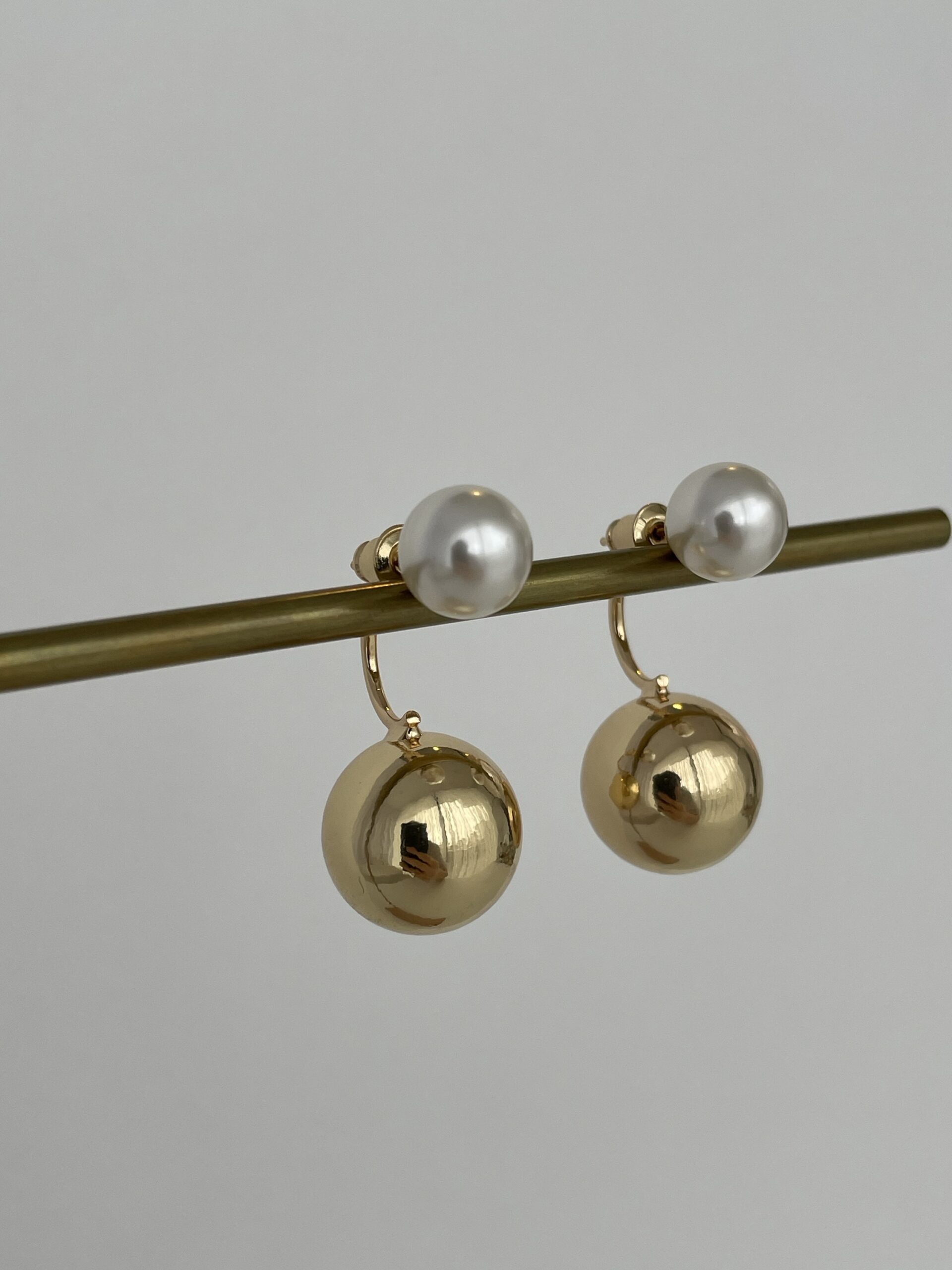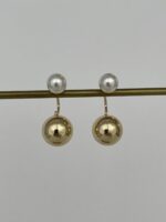 Özel Seri Arkası Top Sallantılı Gold İnci Küpe 3cm