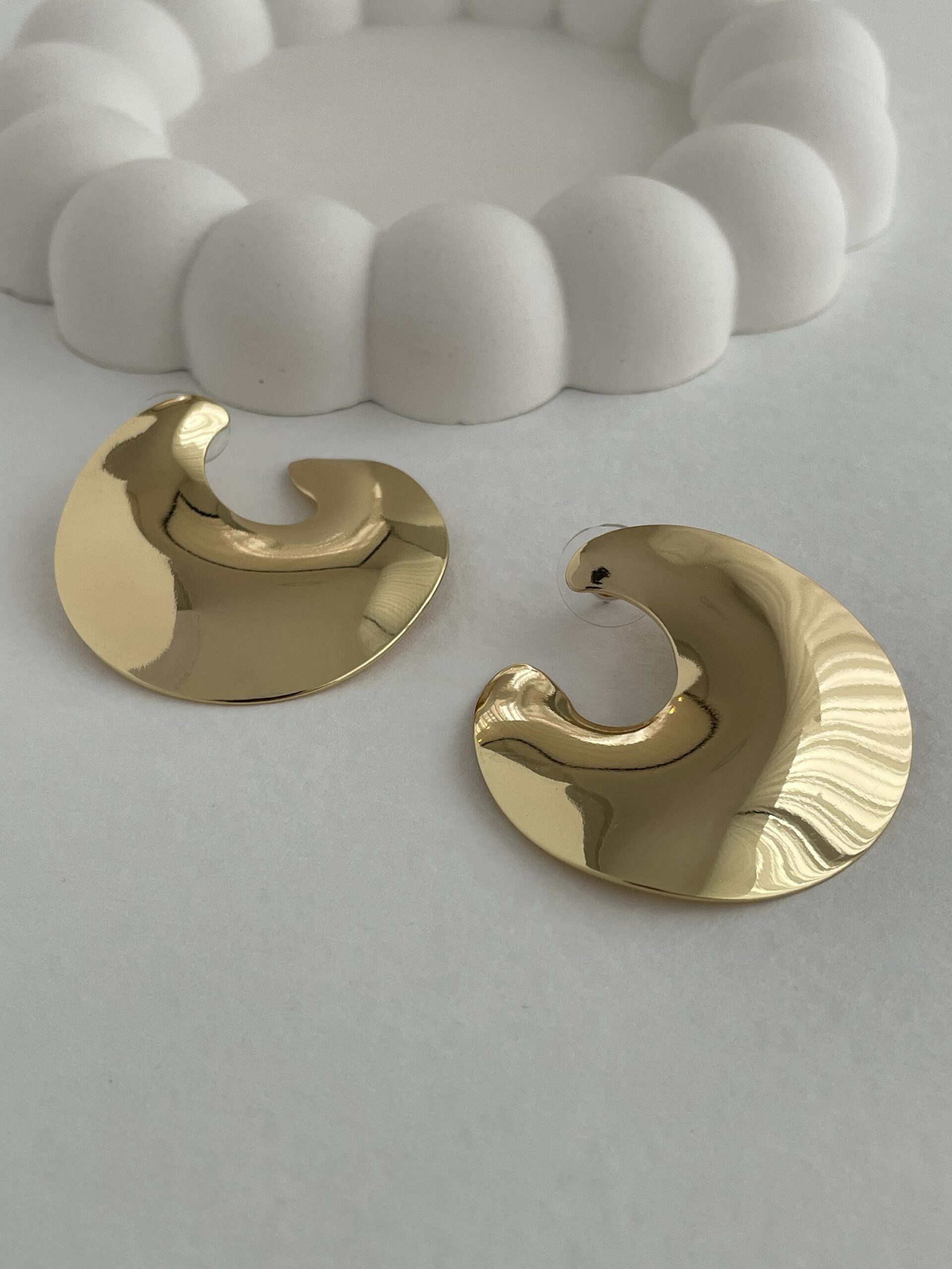 Özel Seri Asimetrik Desen Gold Plaka Küpe 4cm