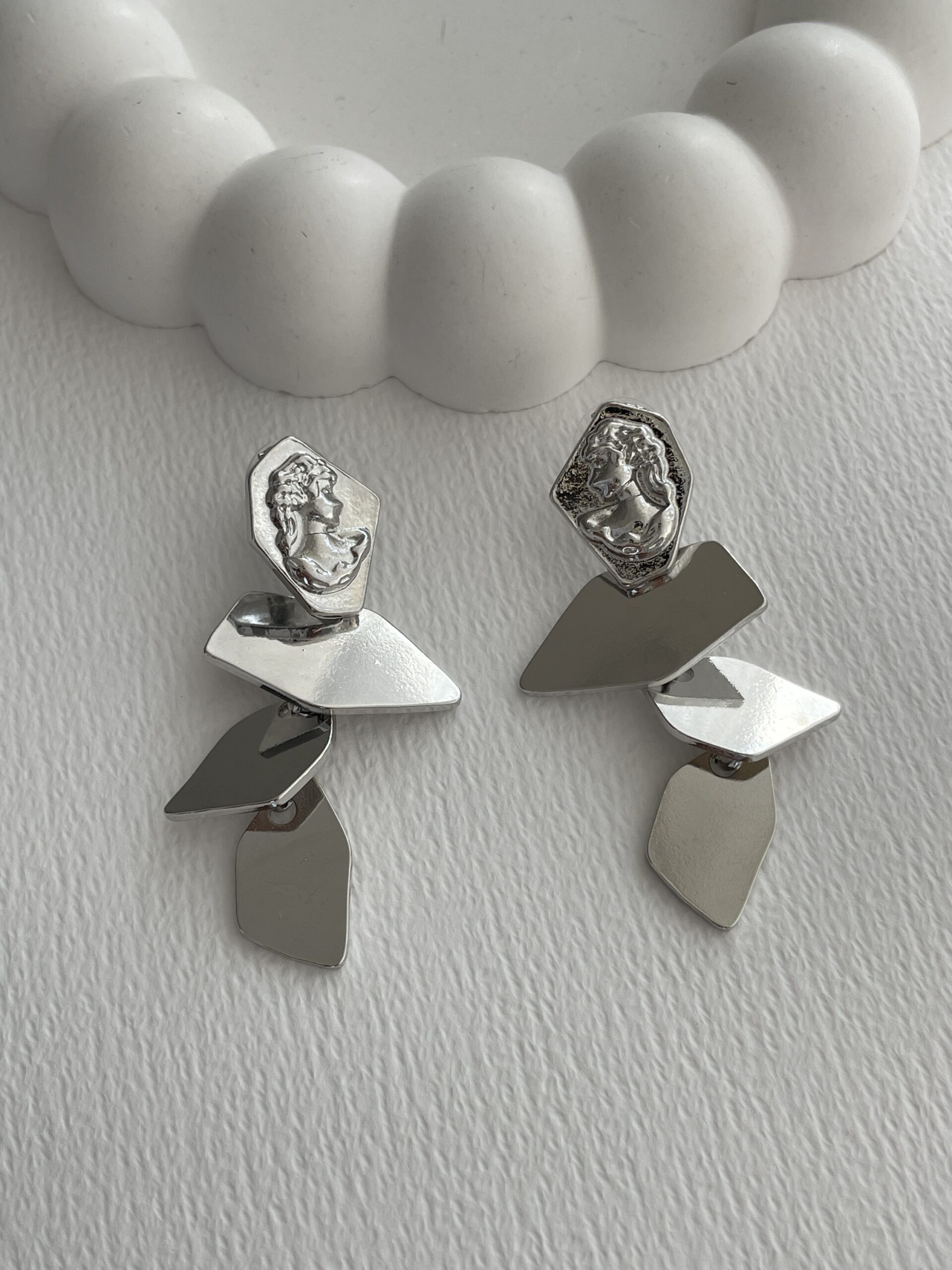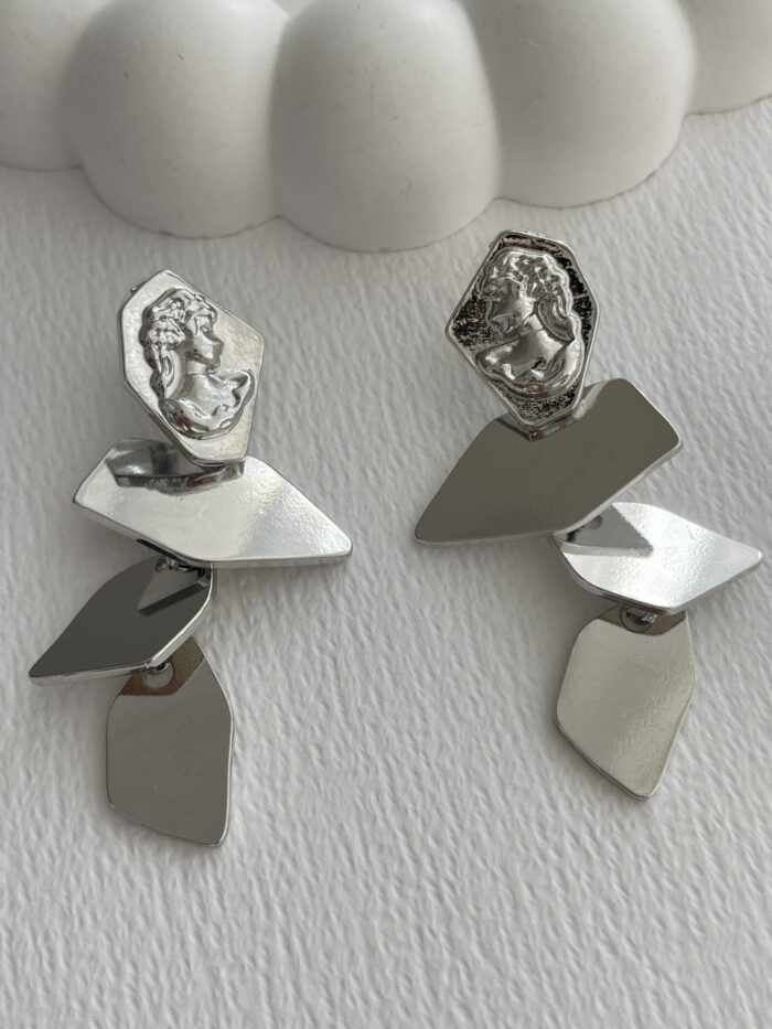 Özel Seri Asimetrik Desen Yaprak Tasarım Gümüş Küpe