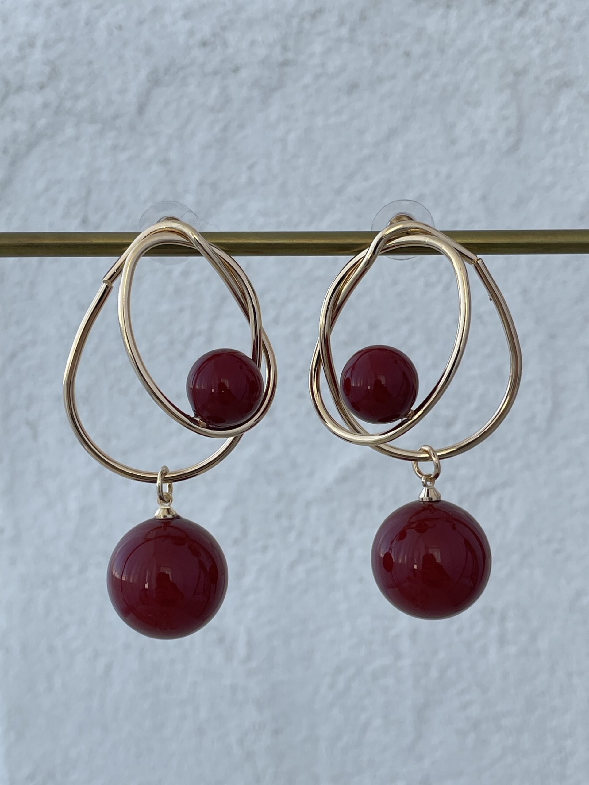 Özel Seri Asimetrik Kıvrım Bordo Top Gold Küpe