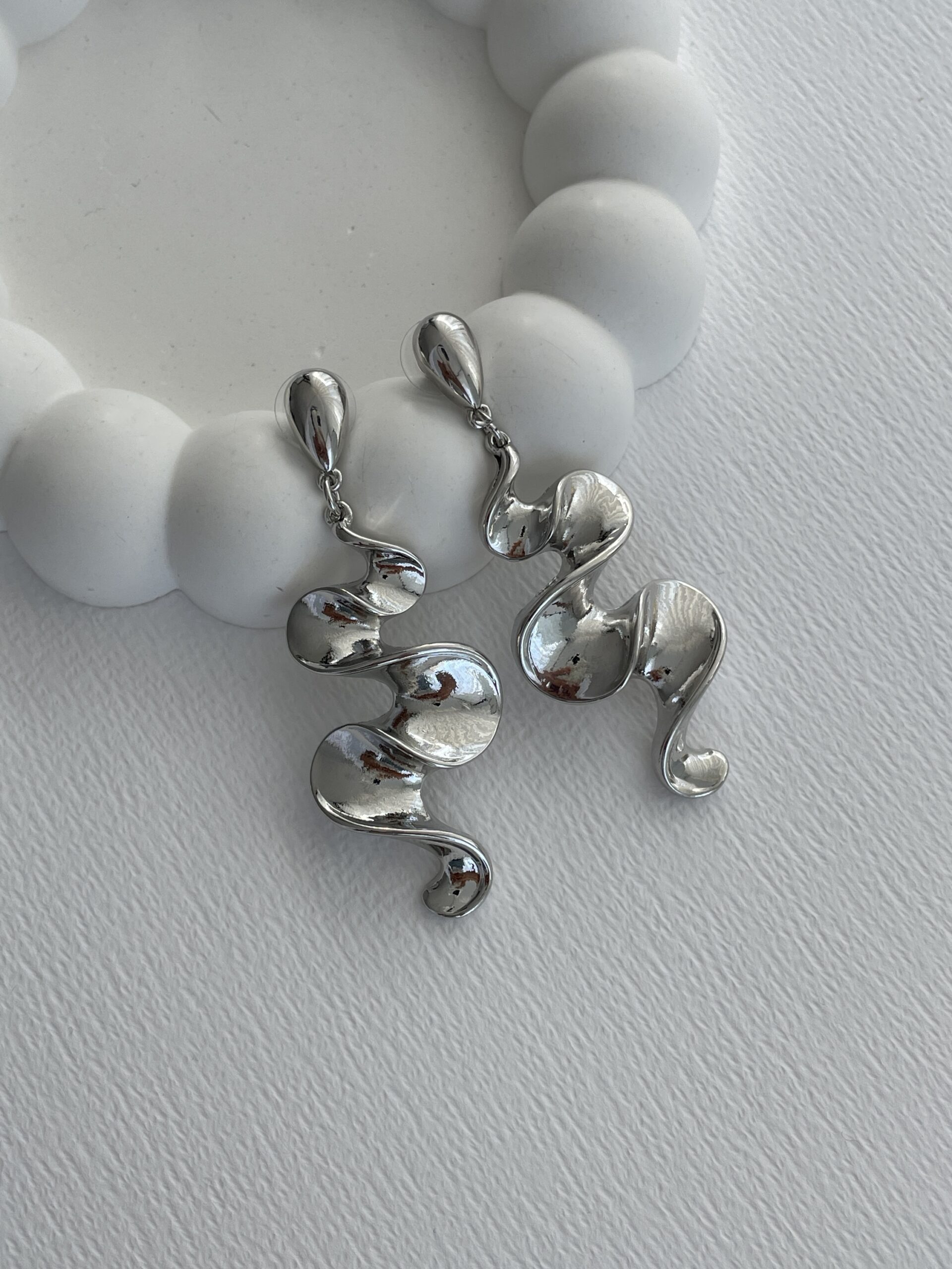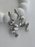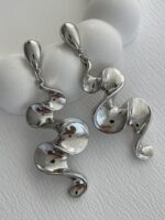 Özel Seri Asimetrik Kıvrım Büyük Gümüş Küpe
