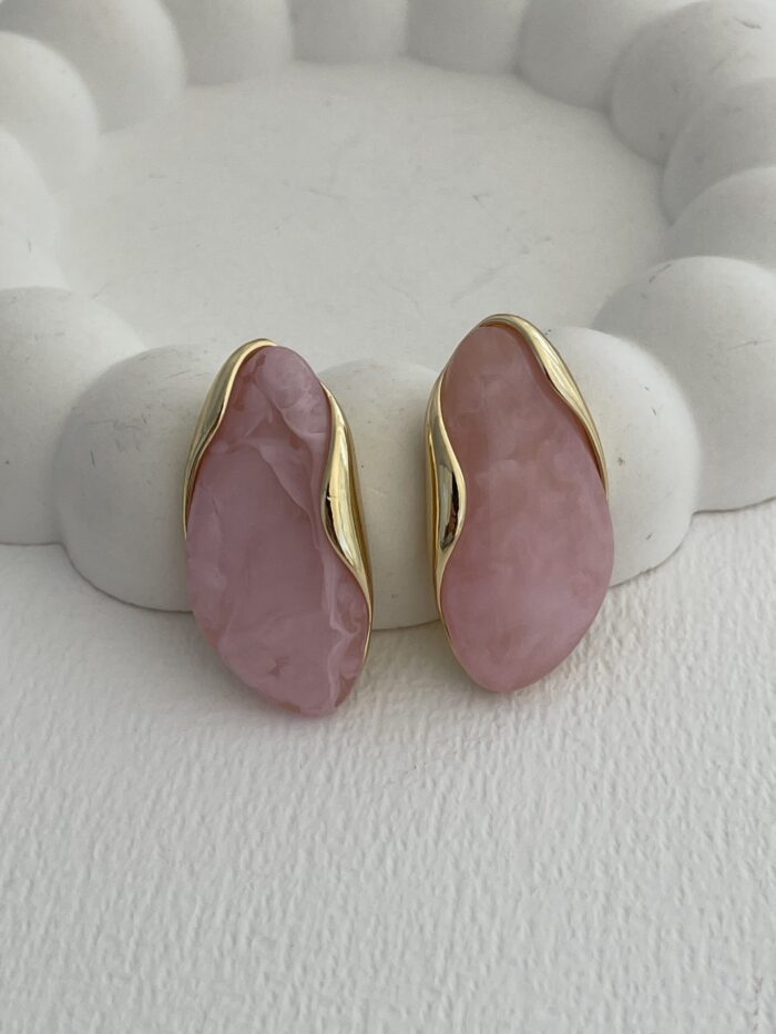 Özel Seri Asimetrik Kıvrım Gold Detay Pudra Küpe