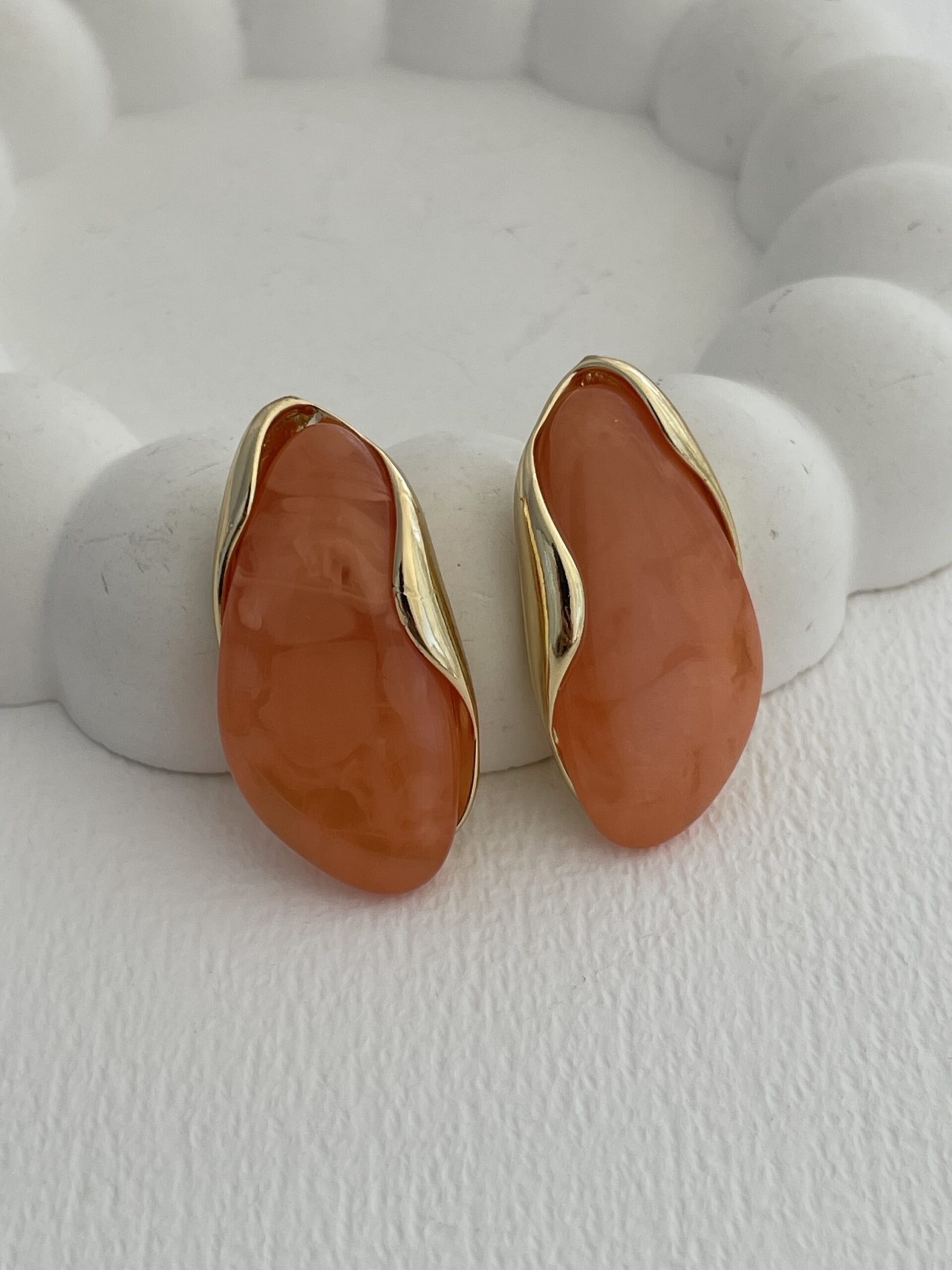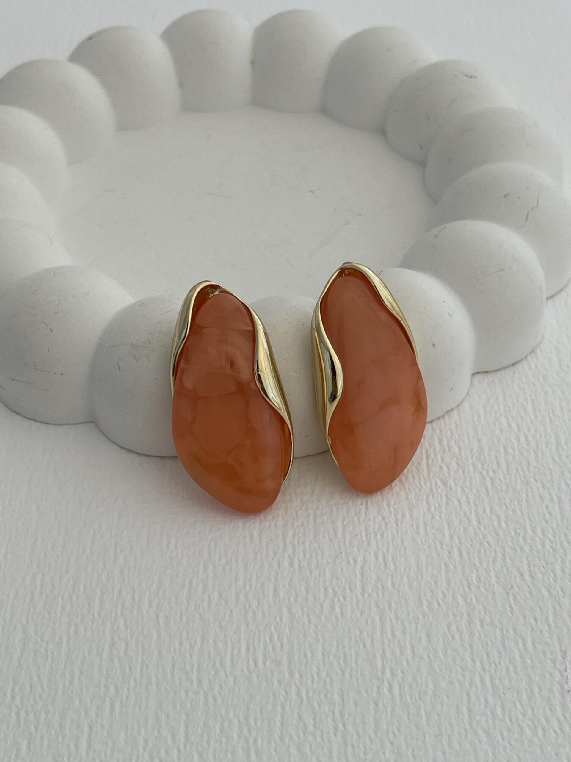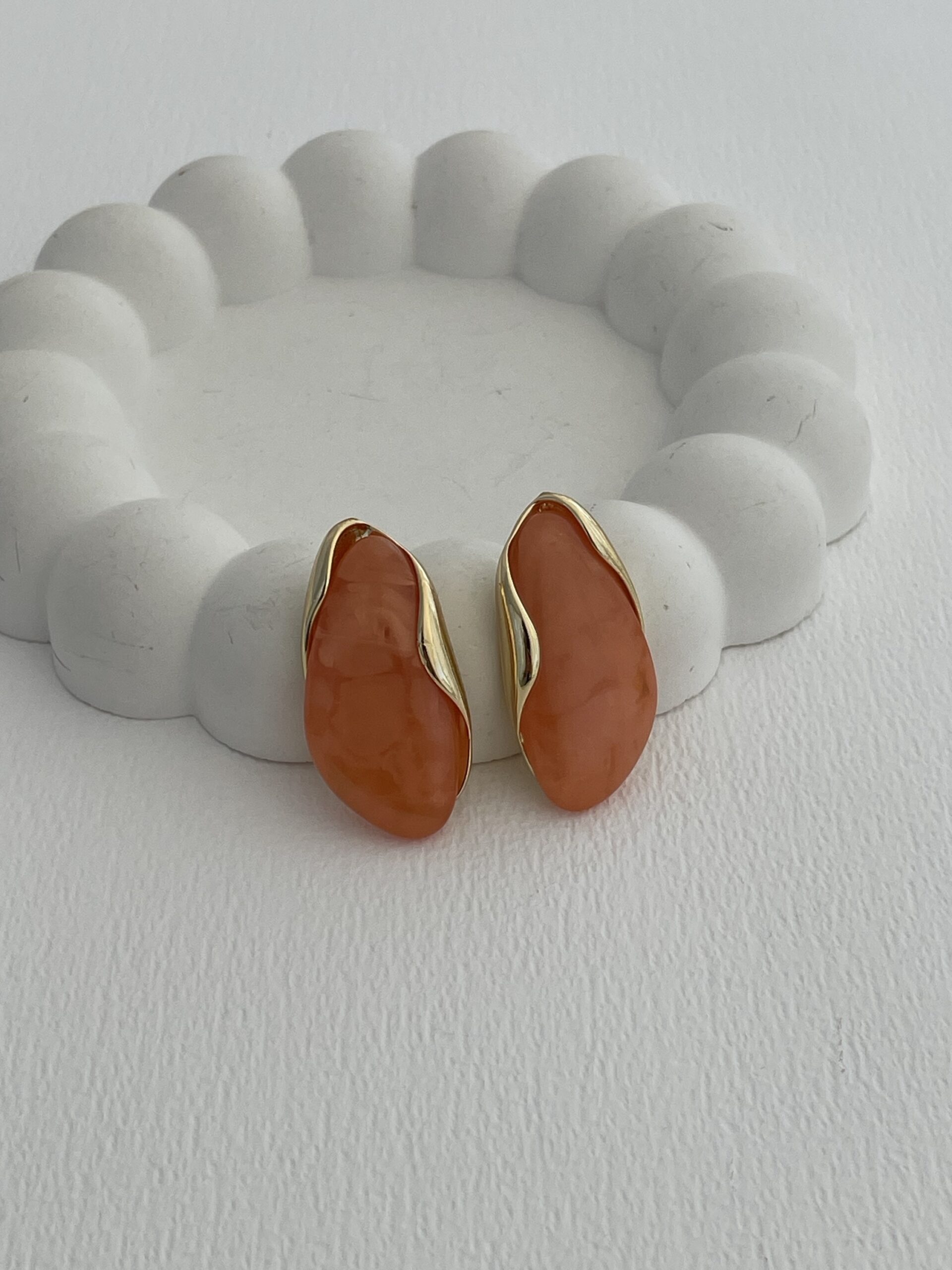 Özel Seri Asimetrik Kıvrım Gold Detay Turuncu Küpe