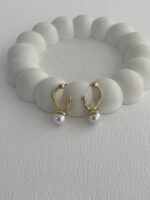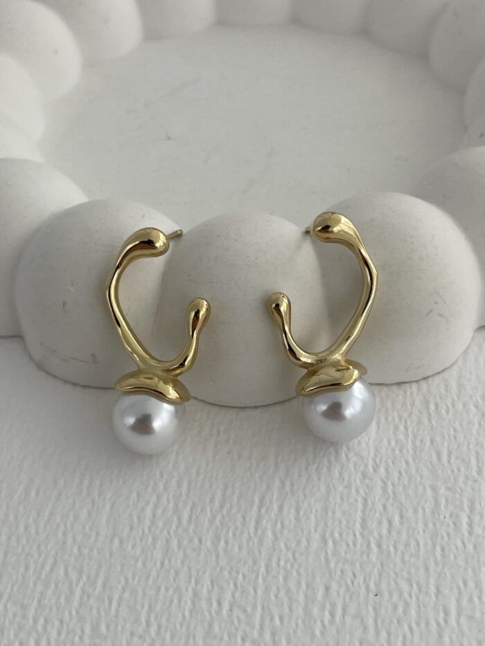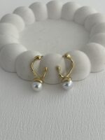 Özel Seri Asimetrik Kıvrım Gold İnci Küpe