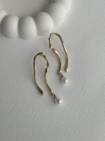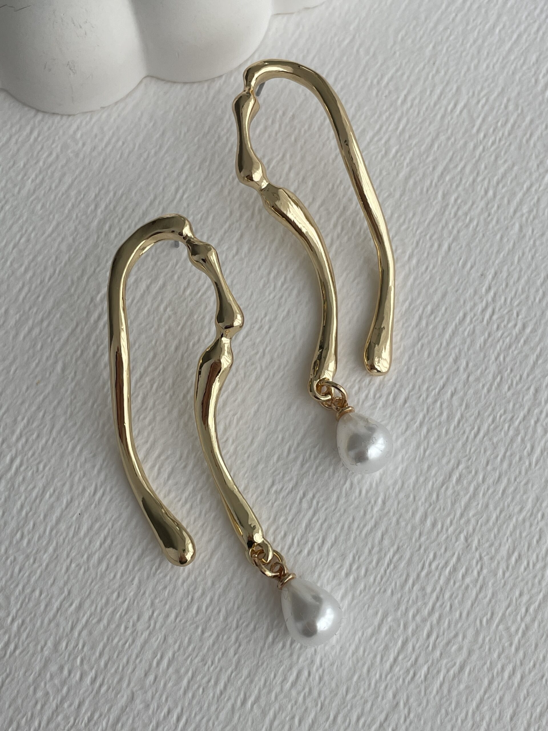 Özel Seri Asimetrik Kıvrım Gold İncili Küpe