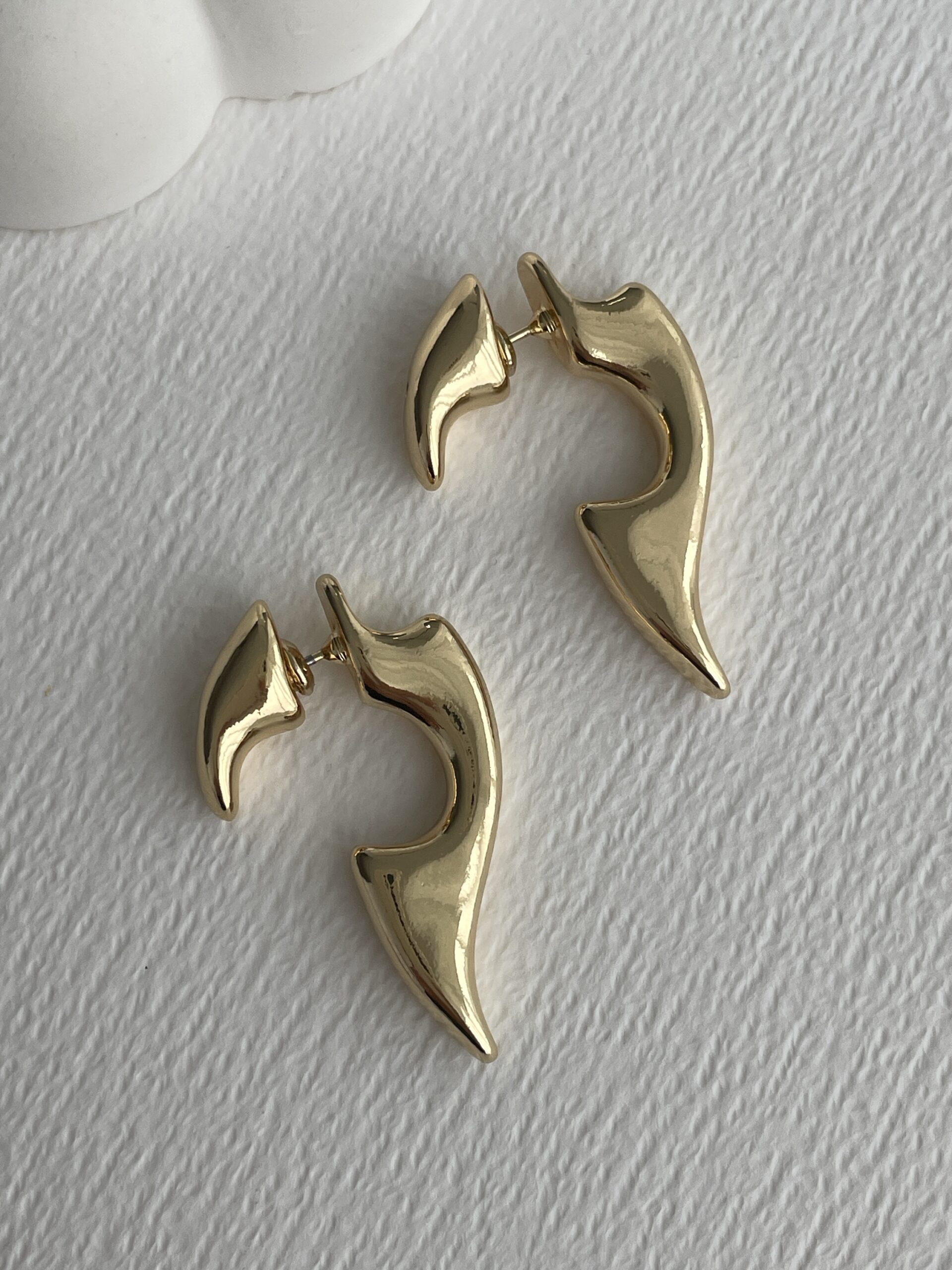 Özel Seri Asimetrik Kıvrım Gold Tasarım Küpe