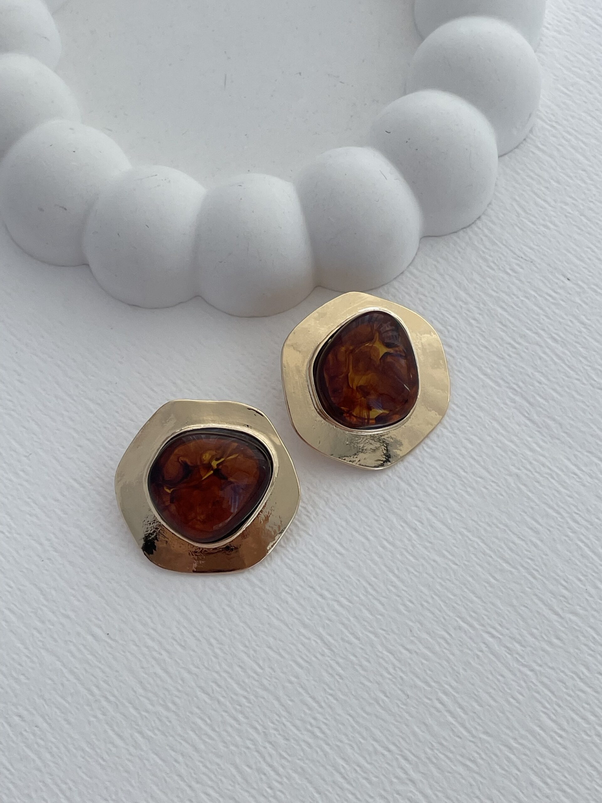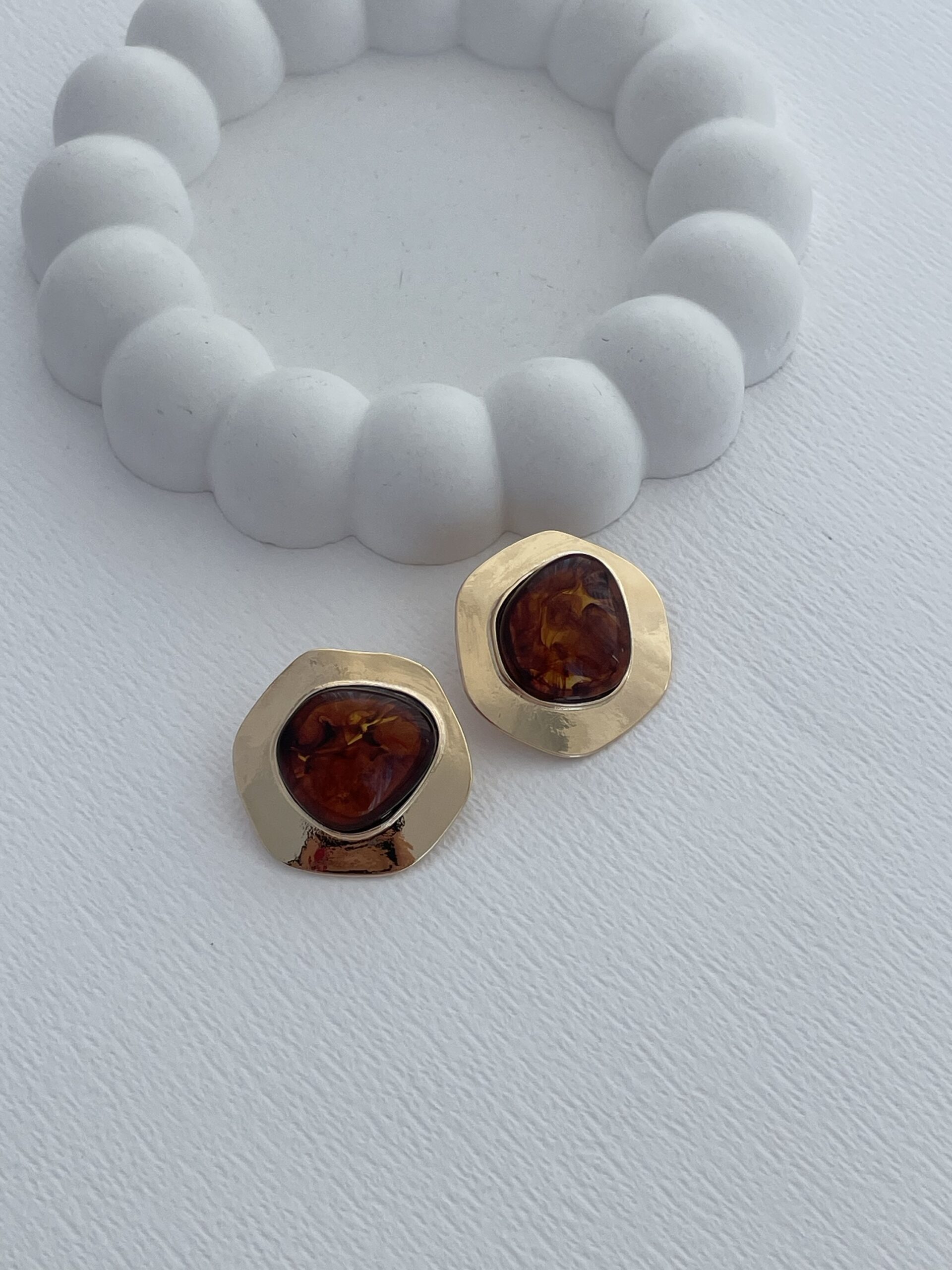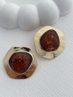 Özel Seri Asimetrik Kıvrım Kahverengi Mineli Gold Küpe