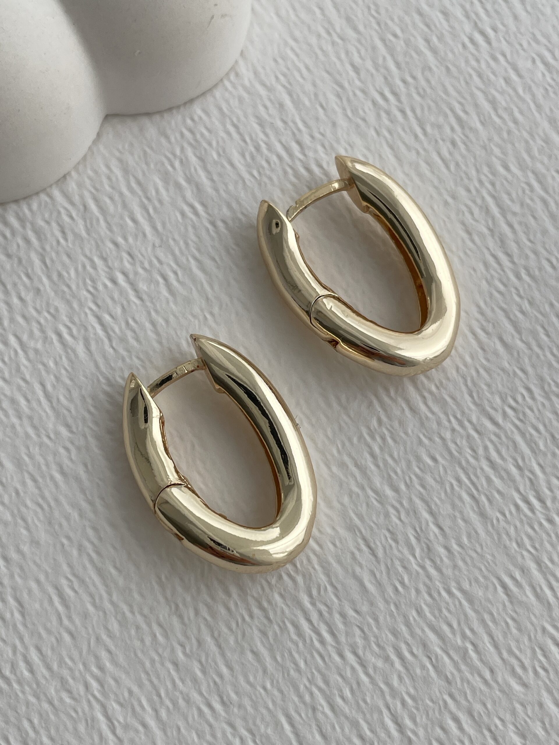 Özel Seri Asimetrik Kıvrım Oval Gold Küpe