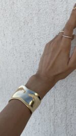 Özel Seri Asimetrik Kıvrım Plaka Marka Model Gold Kelepçe Bileklik