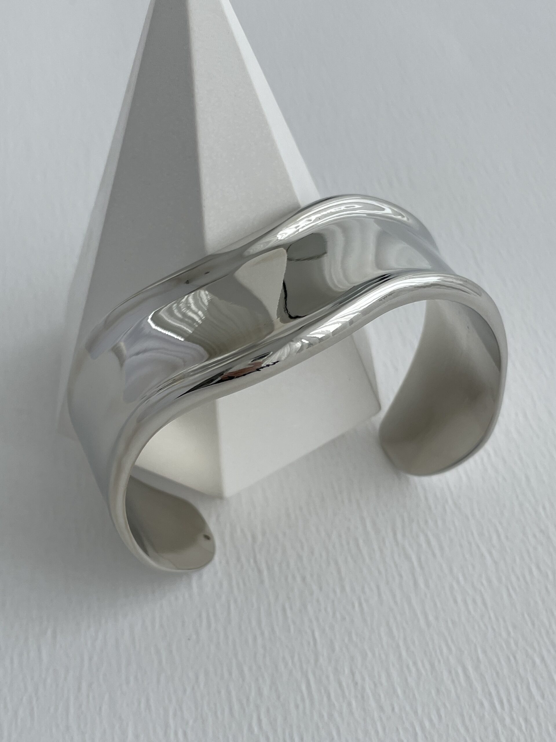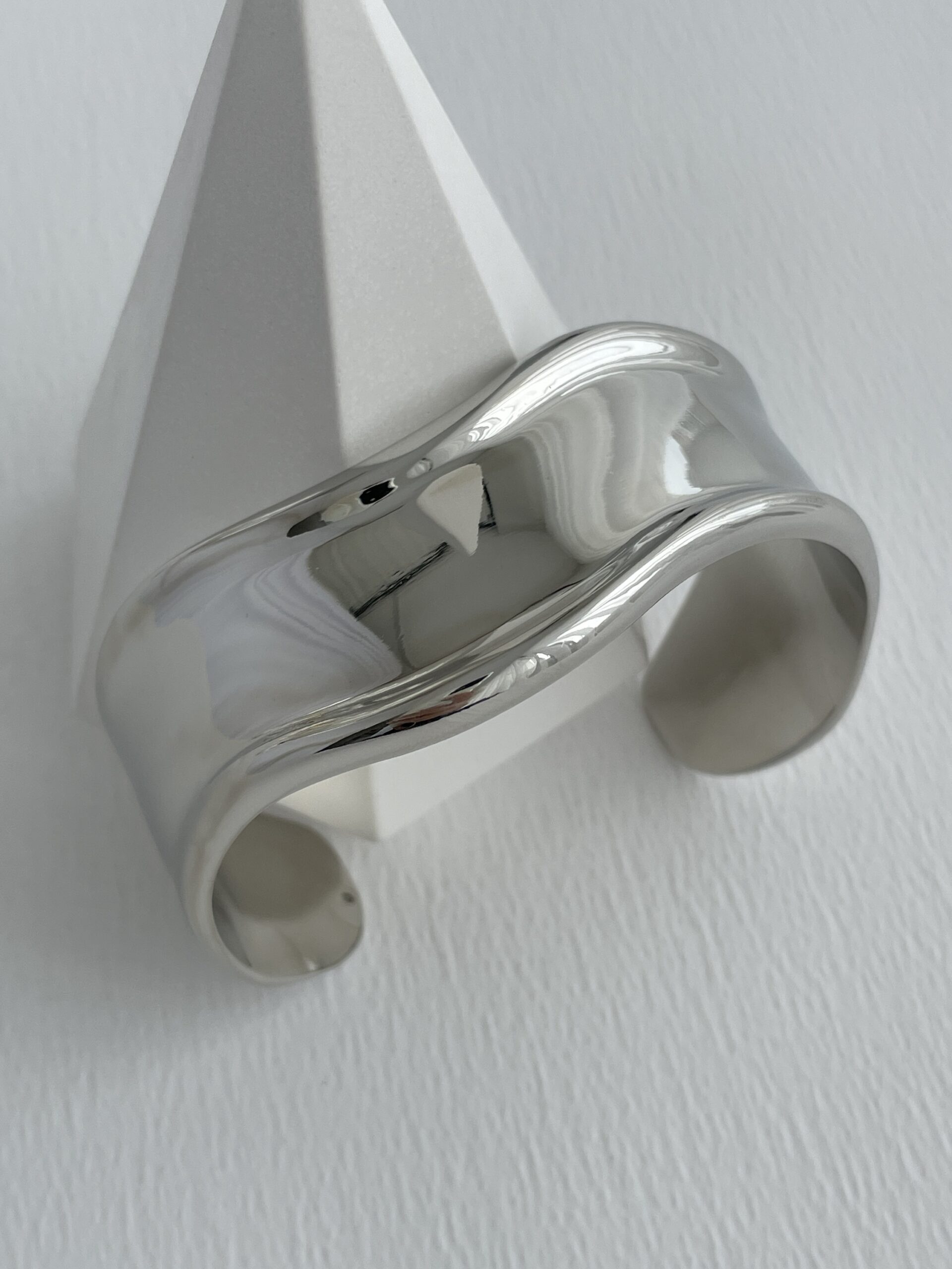 Özel Seri Asimetrik Kıvrım Plaka Marka Model Gümüş Kelepçe Bileklik