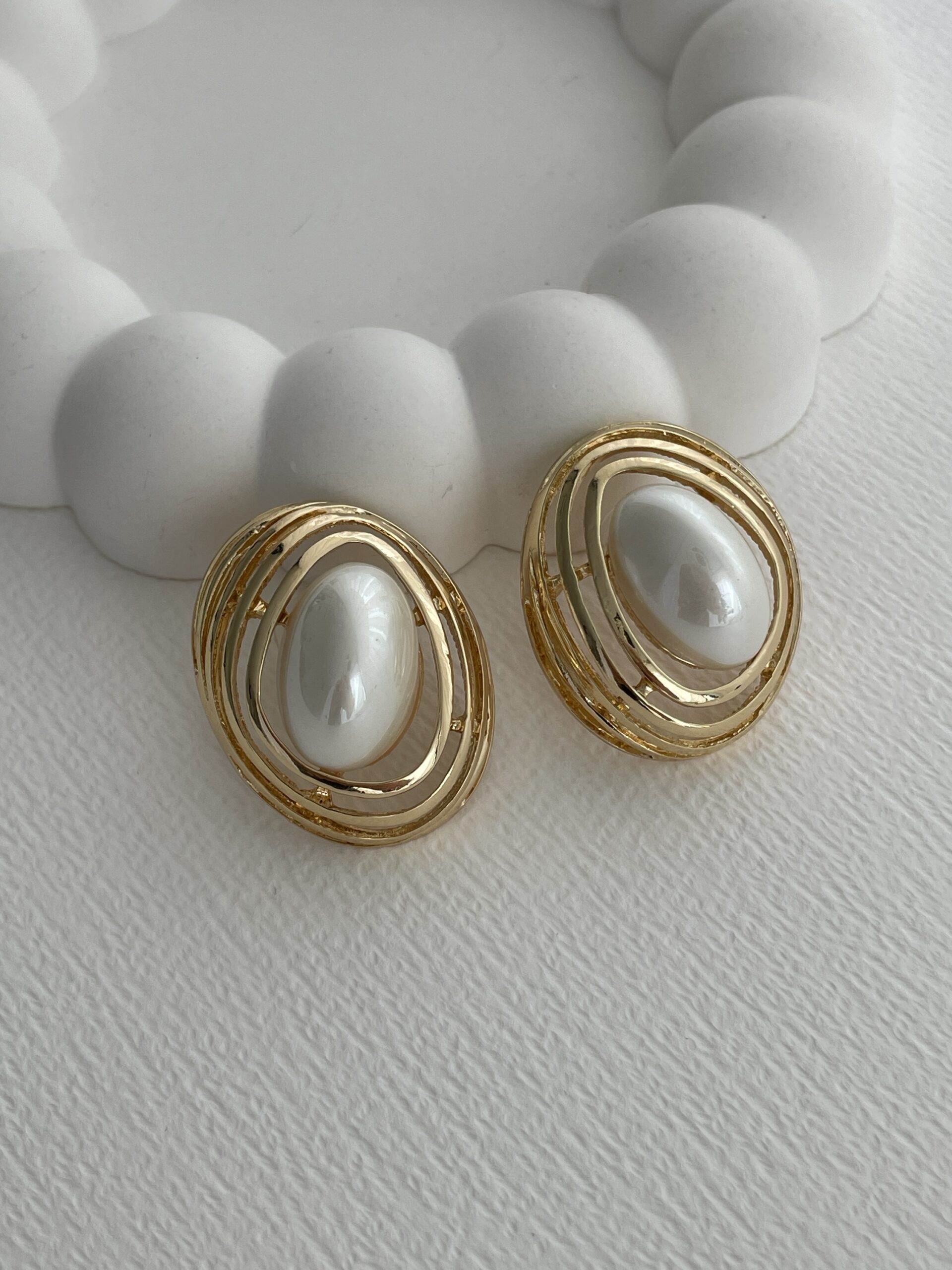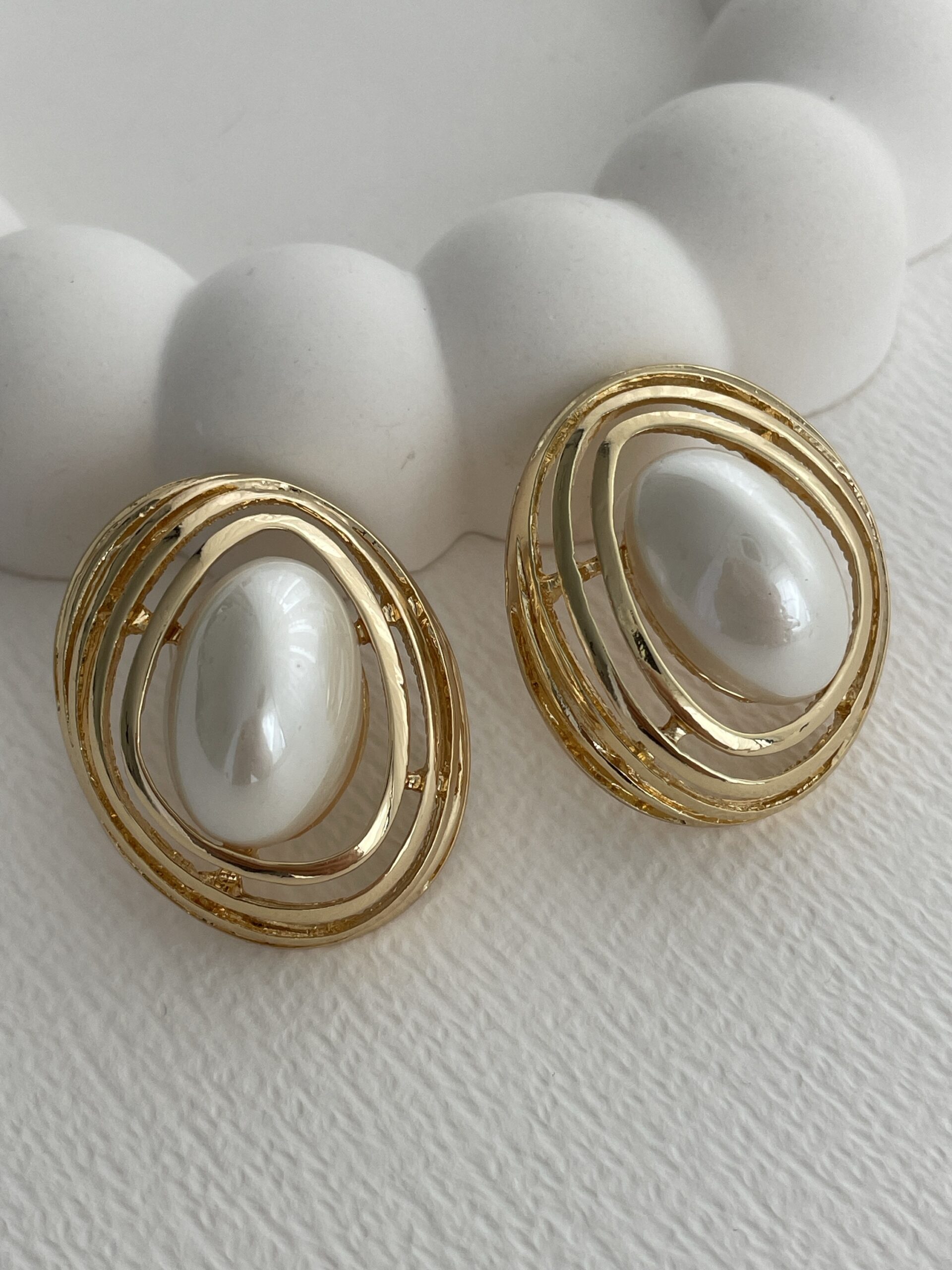 Özel Seri Asimetrik Kıvrım Tasarım Büyük İnci Küpe