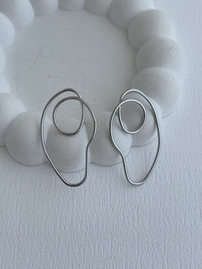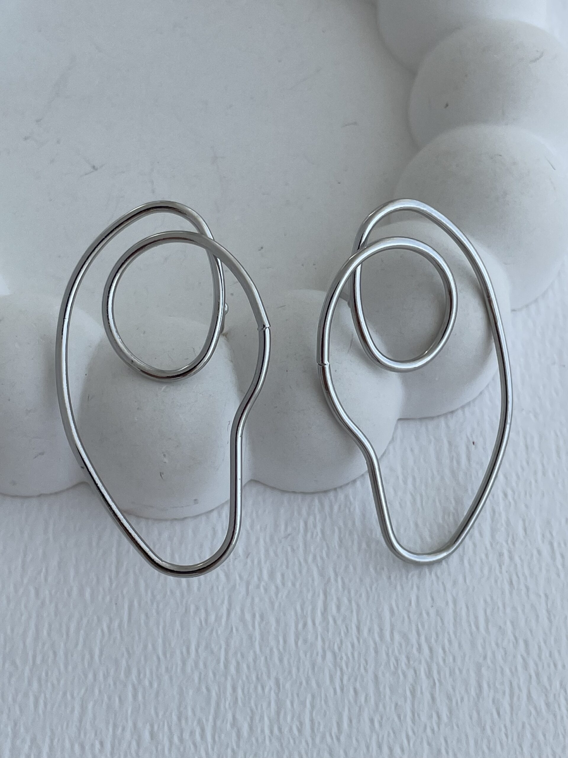 Özel Seri Asimetrik Kıvrım Tasarım Gümüş Küpe