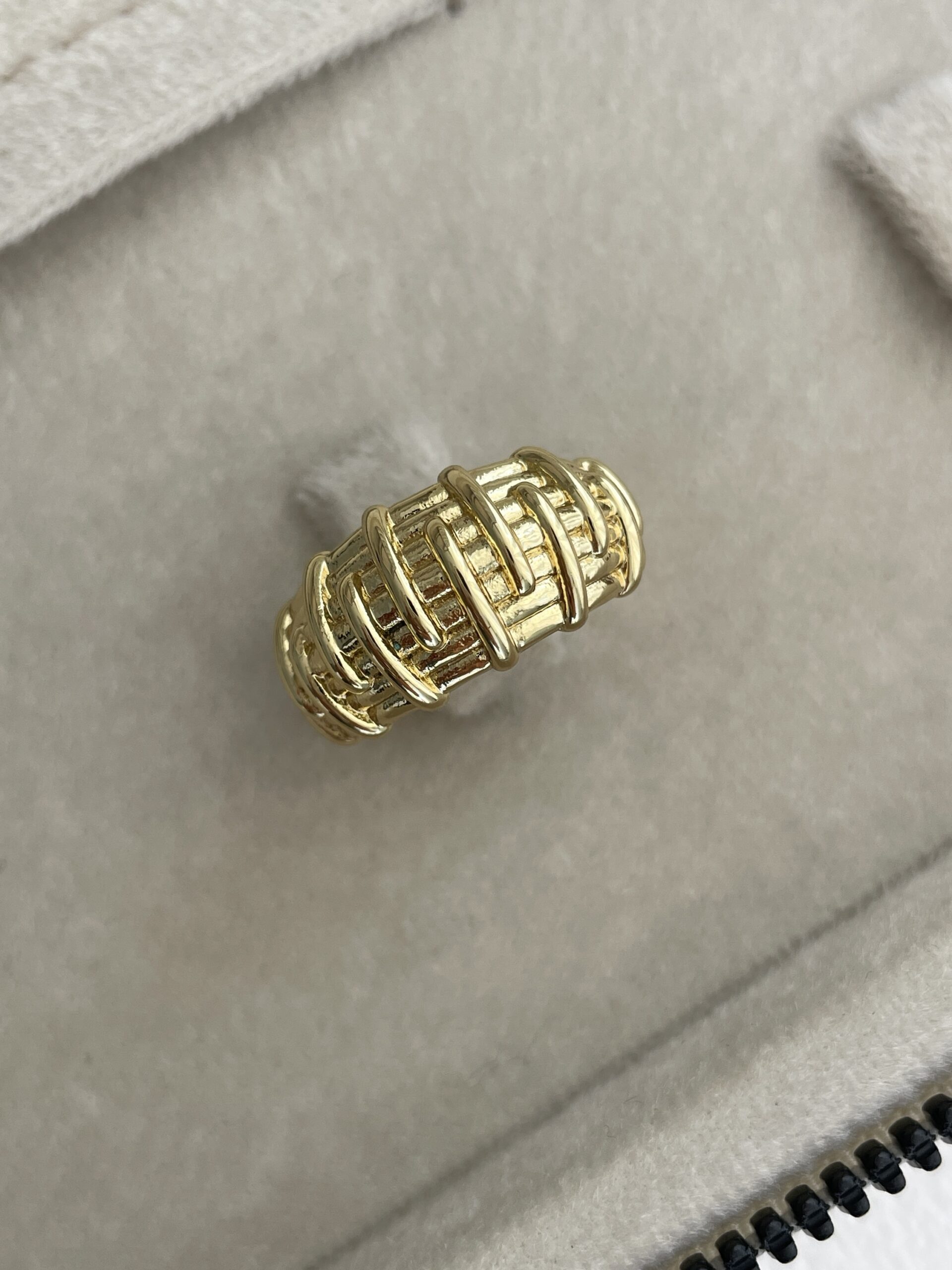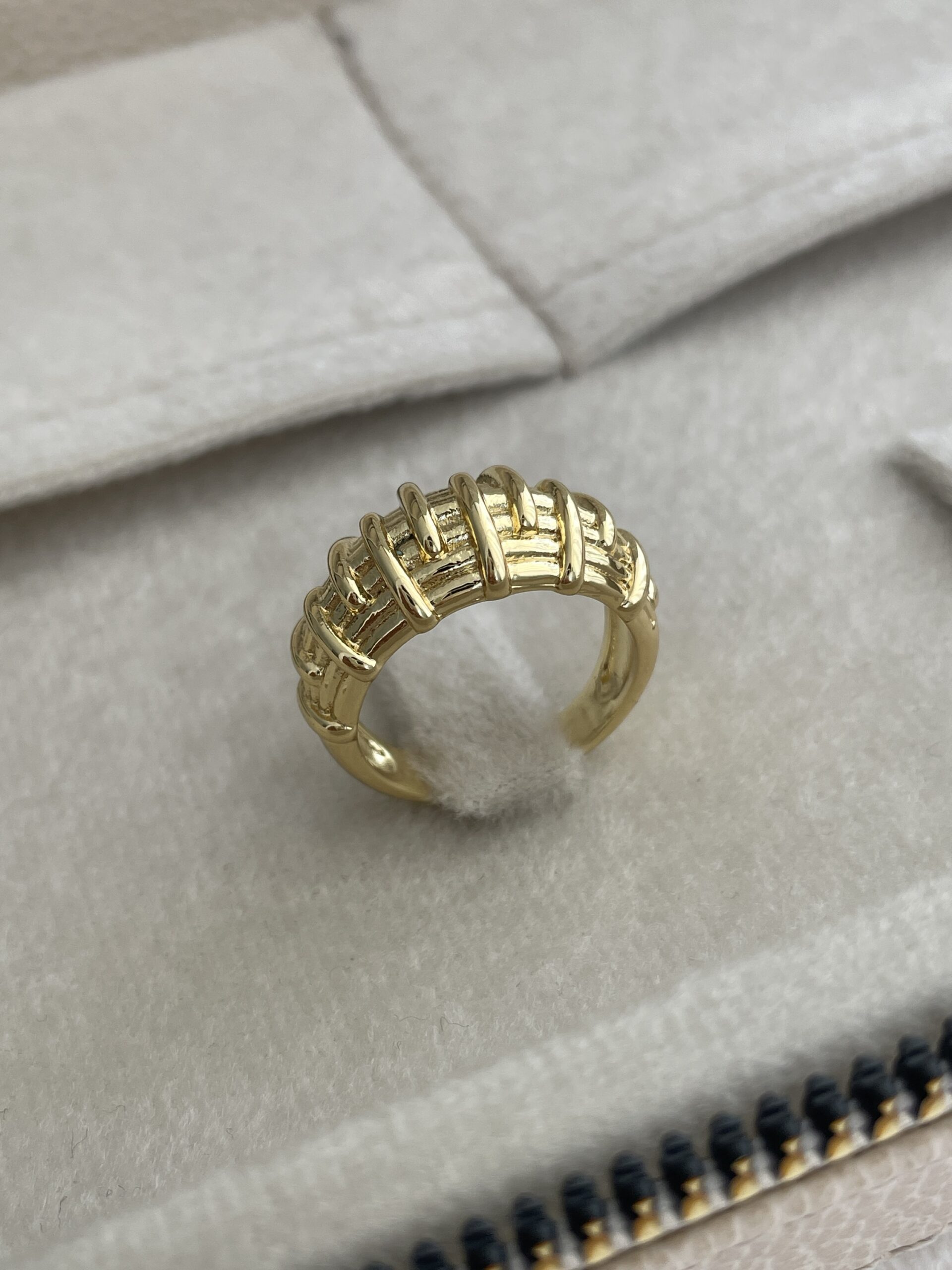 Özel Seri Ayarlanabilir Desenli Bombeli Gold Yüzük