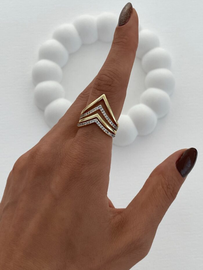 Özel Seri Zirkon Taş Geometrik Tasarım Ayarlanabilir Gold Yüzük
