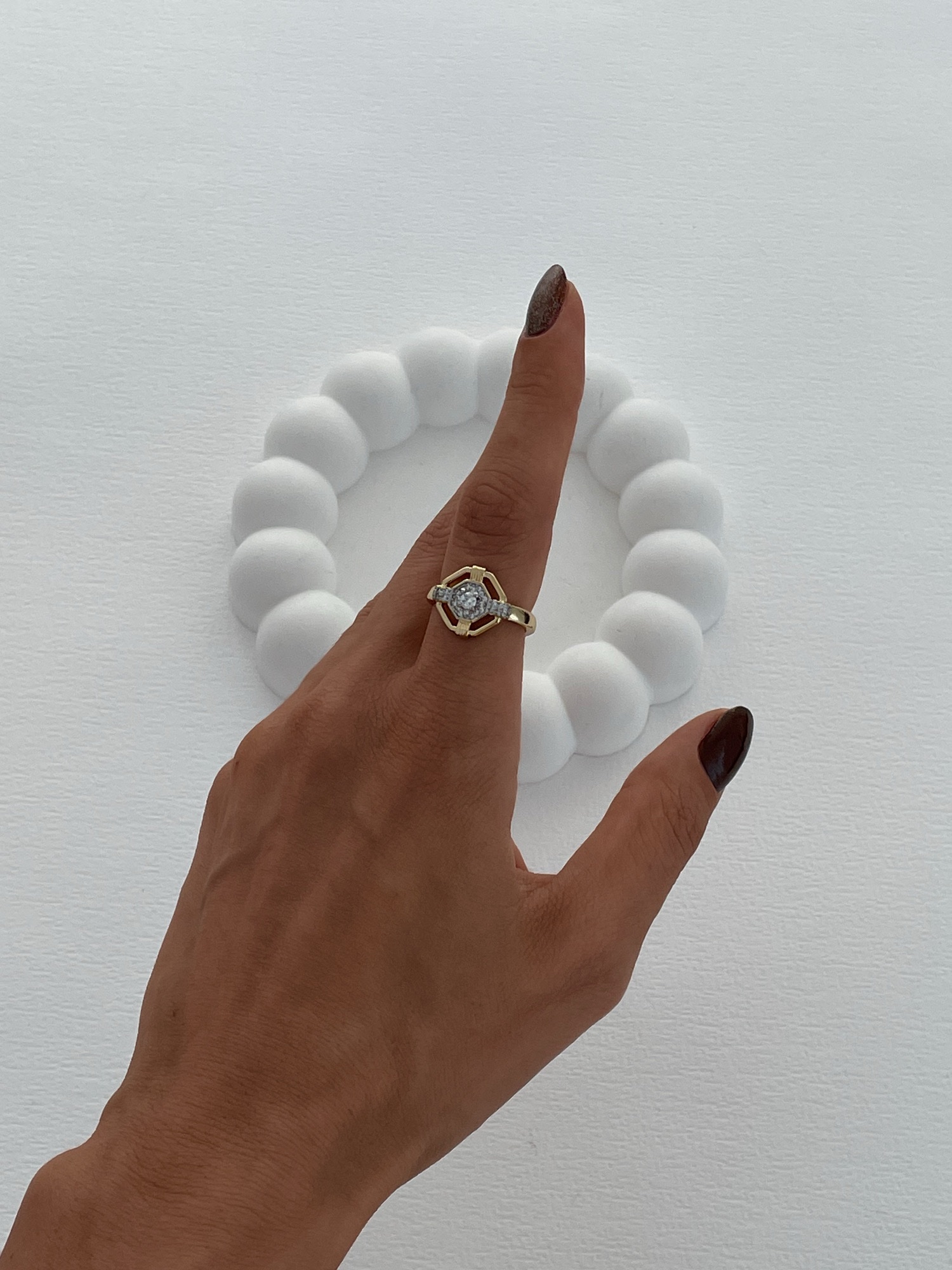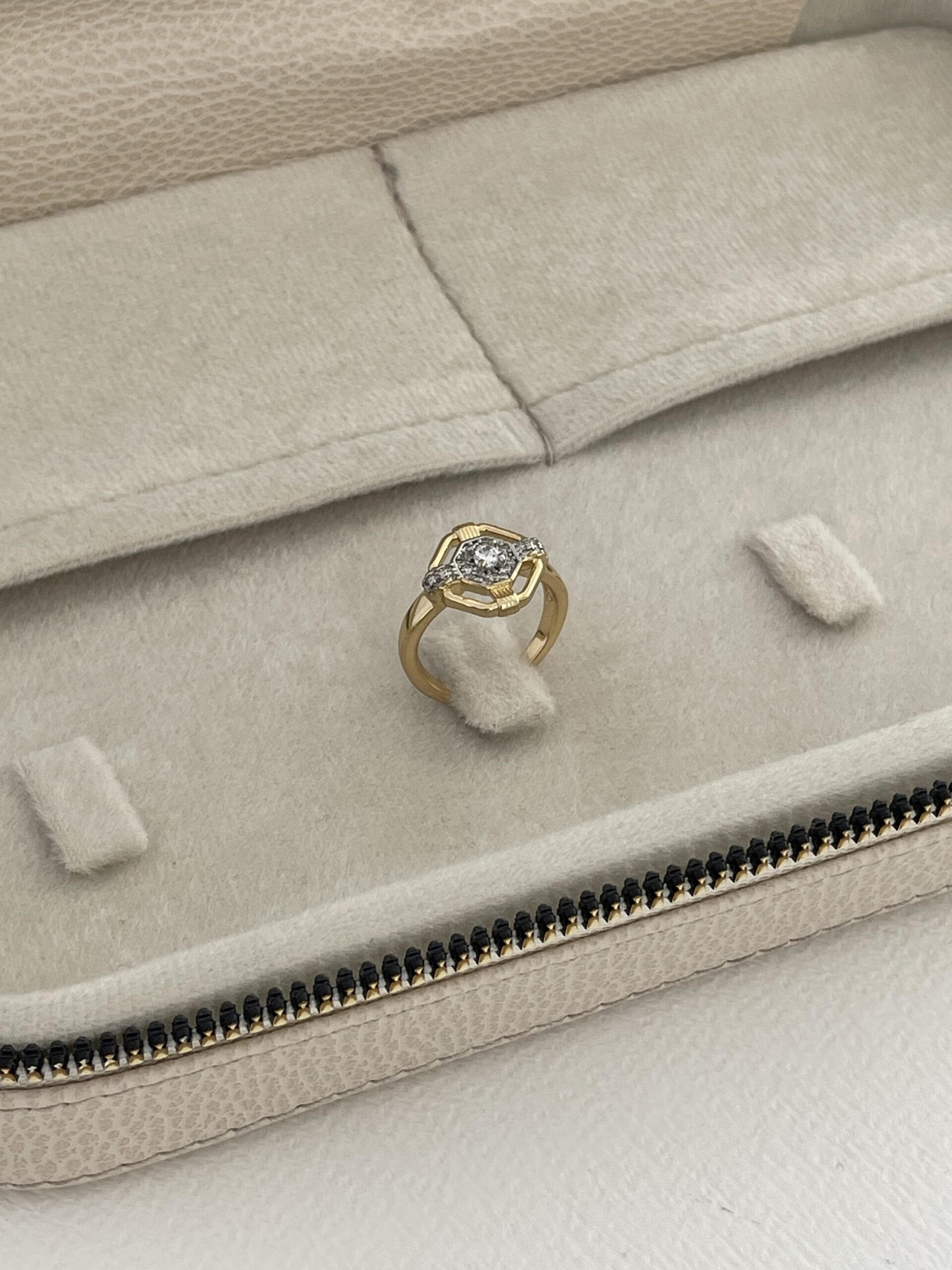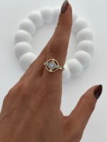 Özel Seri Zirkon Taş Geometrik Tasarım Ayarlanabilir Gold Yüzük