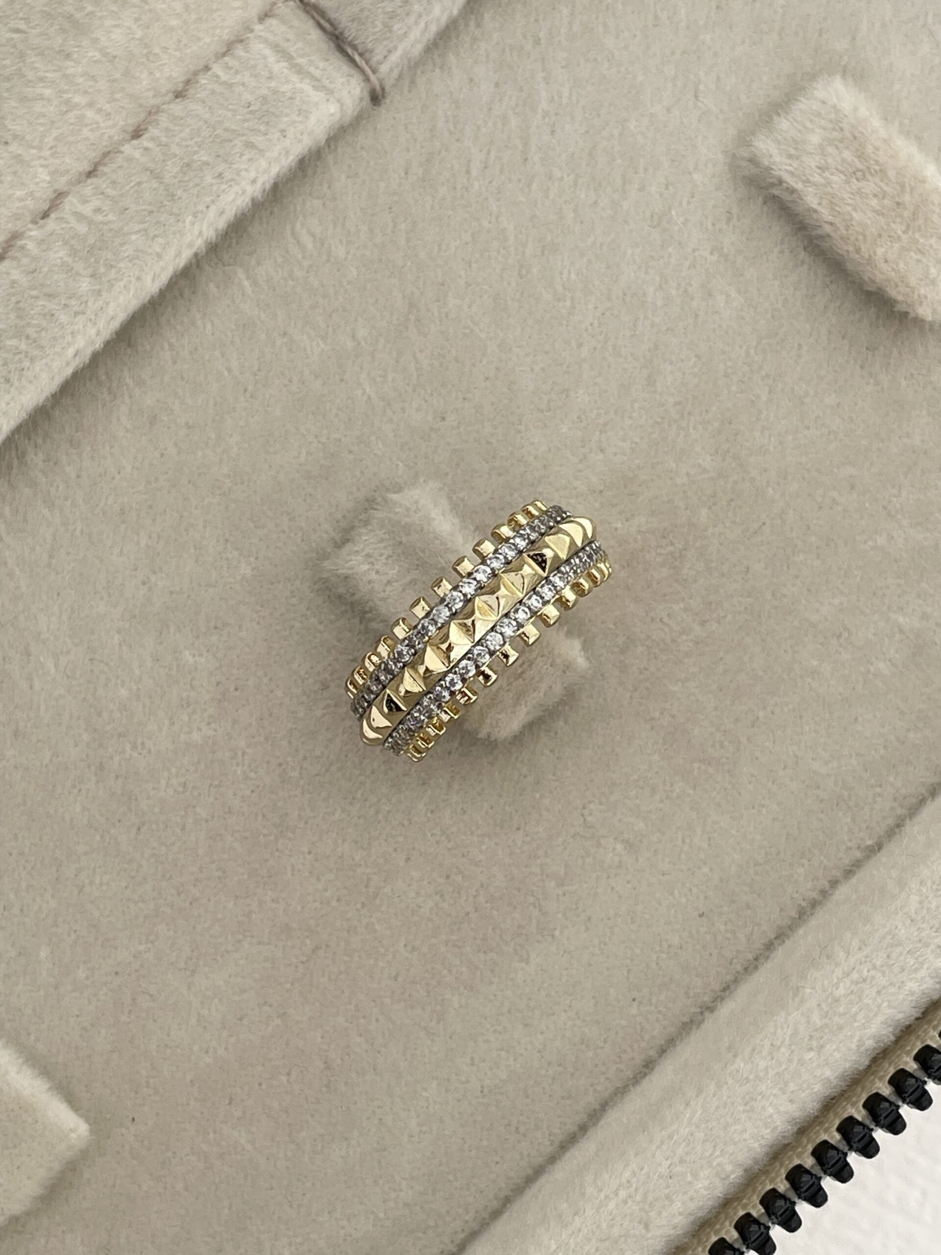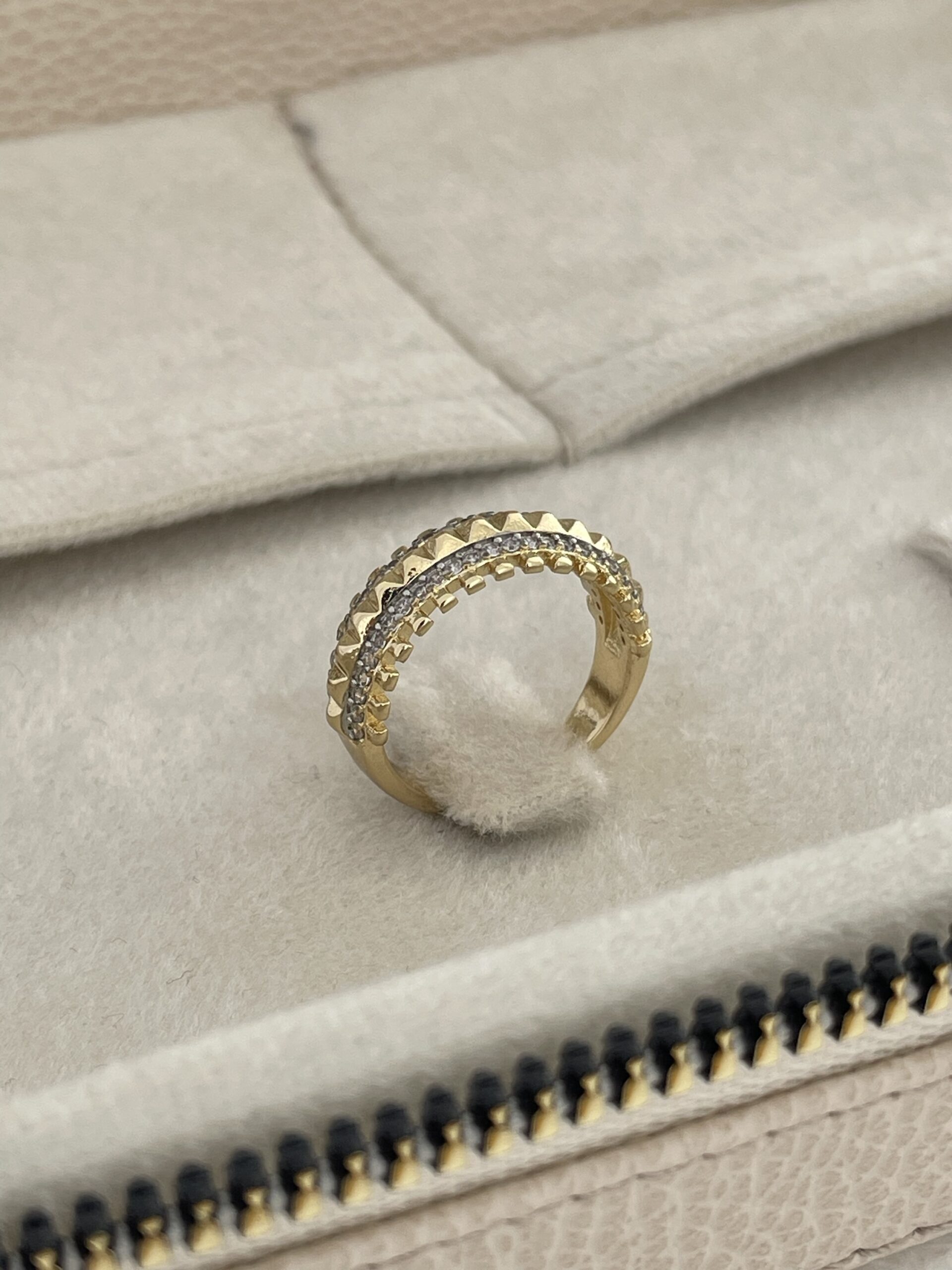 Özel Seri Zirkon Taş Mini Kare Tasarım Ayarlanabilir Gold Yüzük