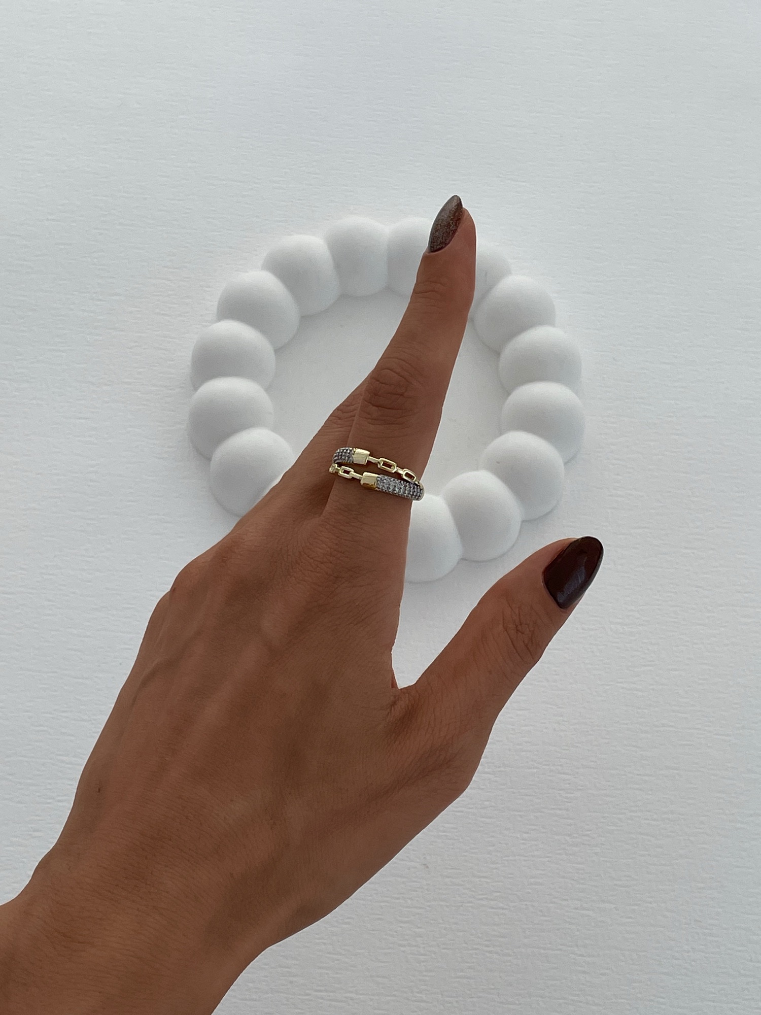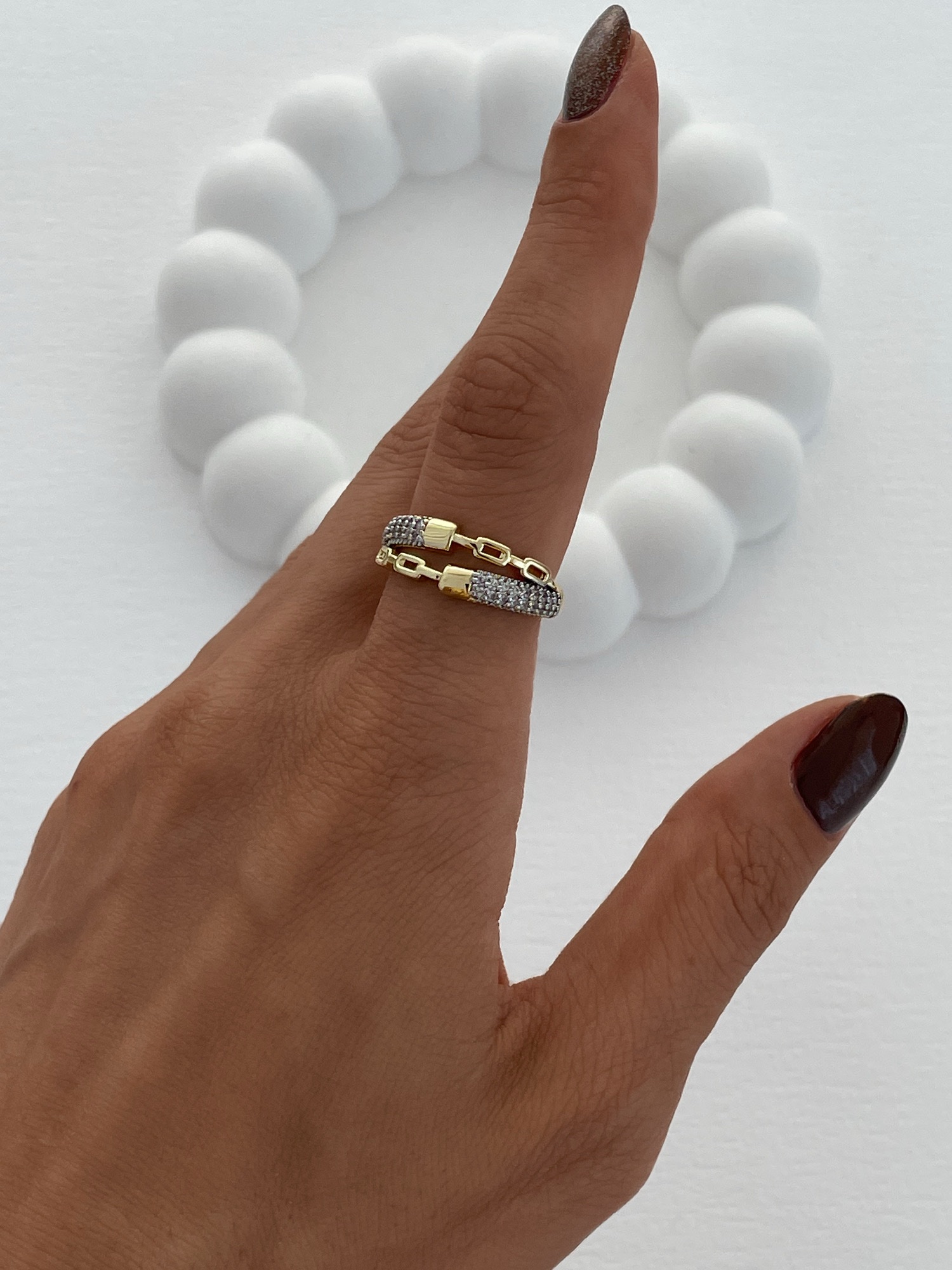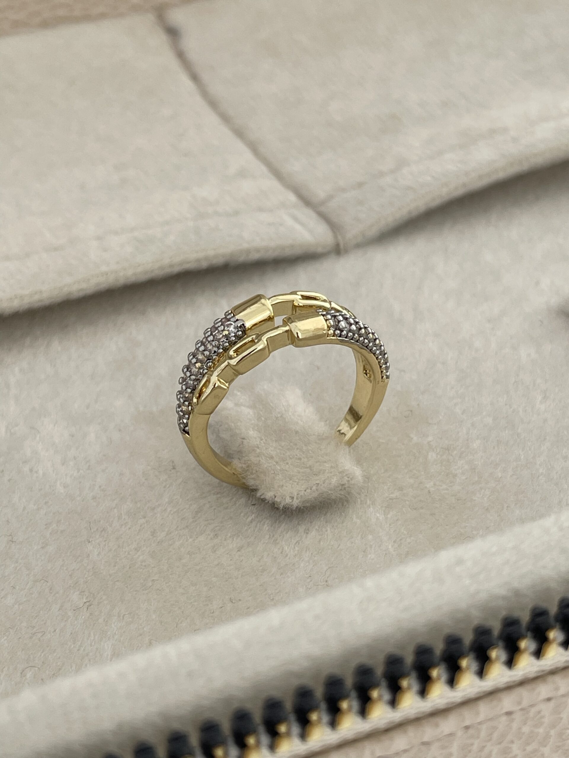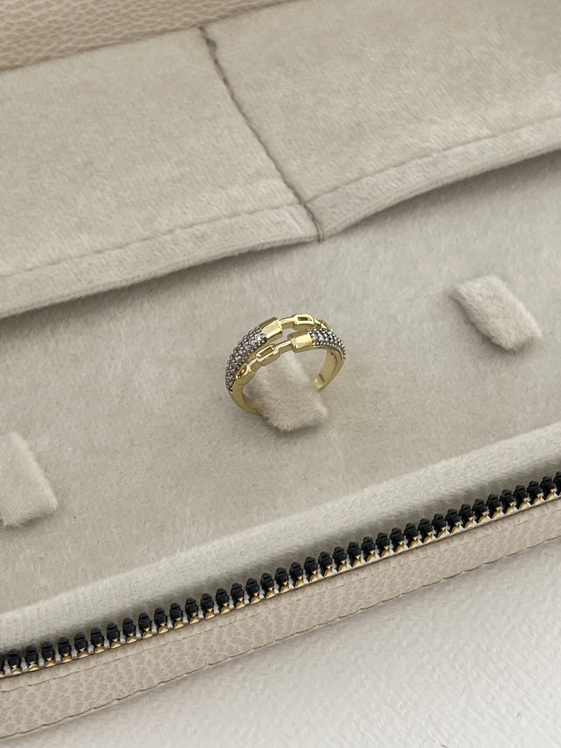 Özel Seri Zirkon Taş Zincir Tasarım Ayarlanabilir Gold Yüzük