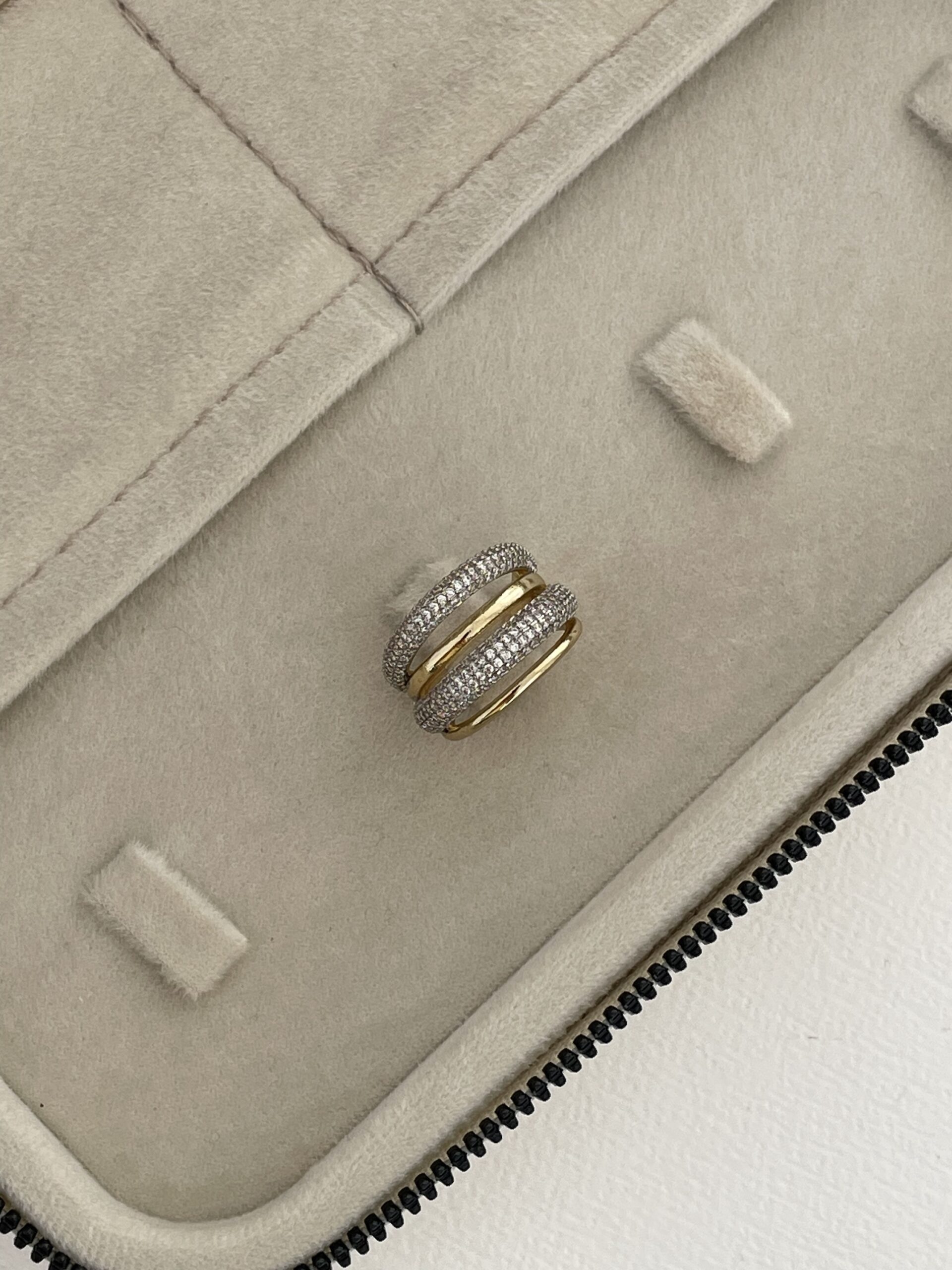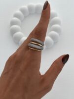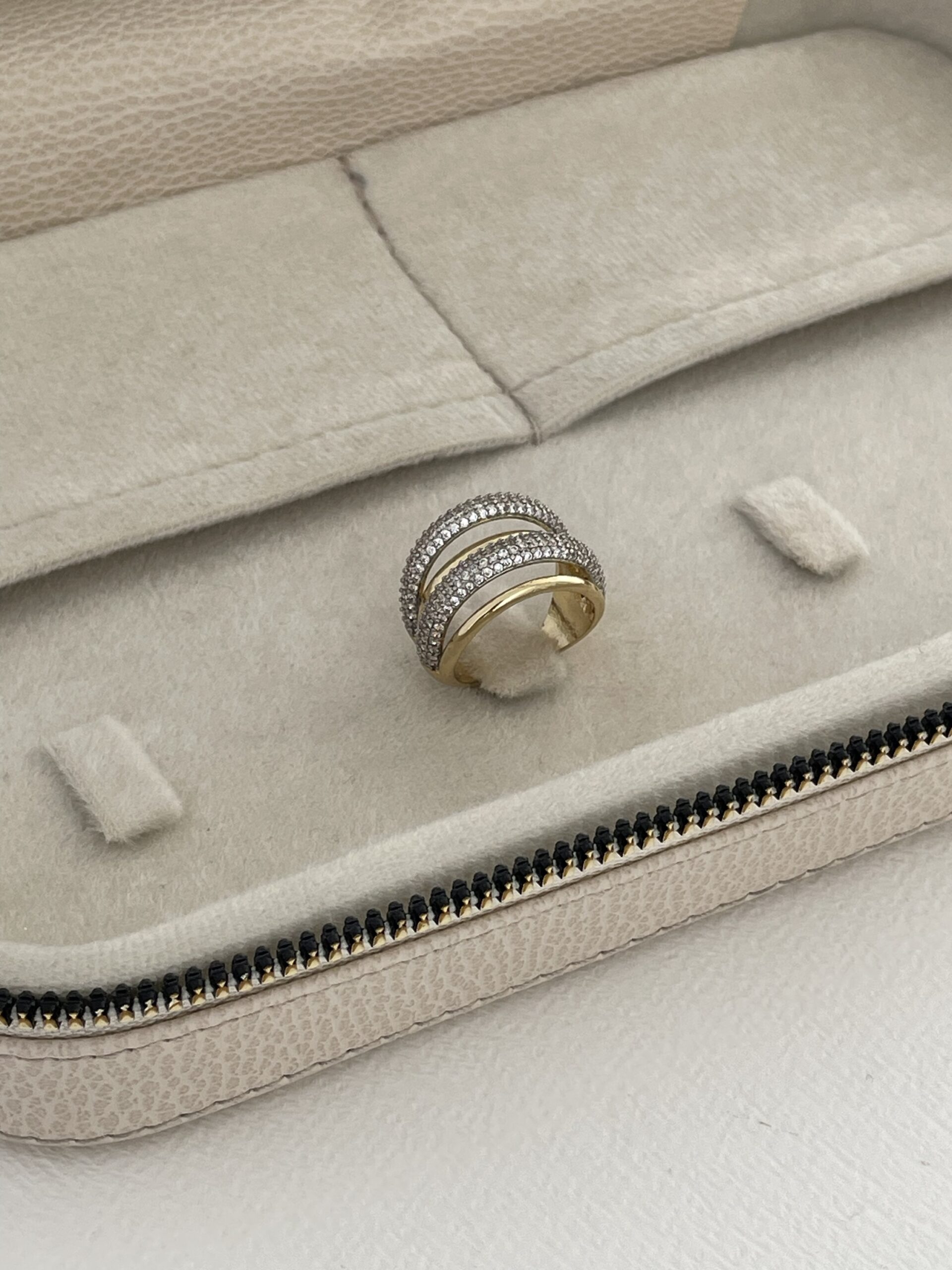 Özel Seri Zirkon Taş Geometrik Tasarım Ayarlanabilir Gold Yüzük