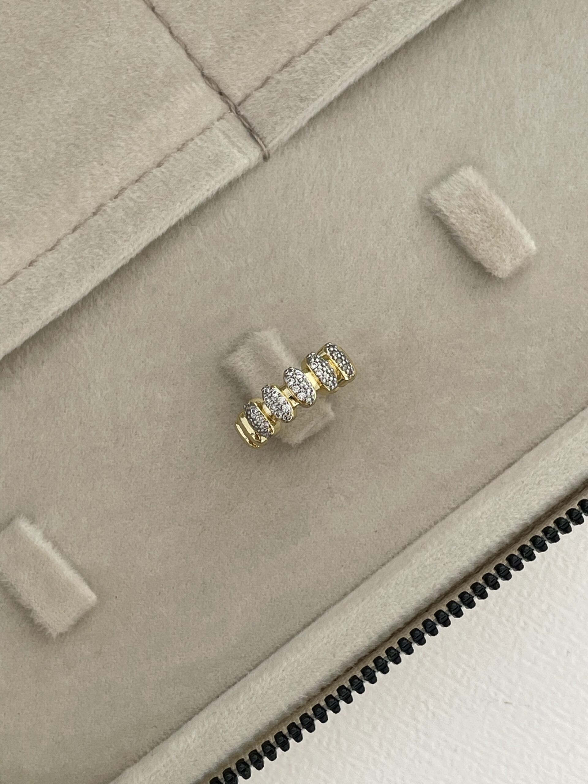 Özel Seri Zirkon Taş Sıralı Oval Tasarım Ayarlanabilir Gold Yüzük