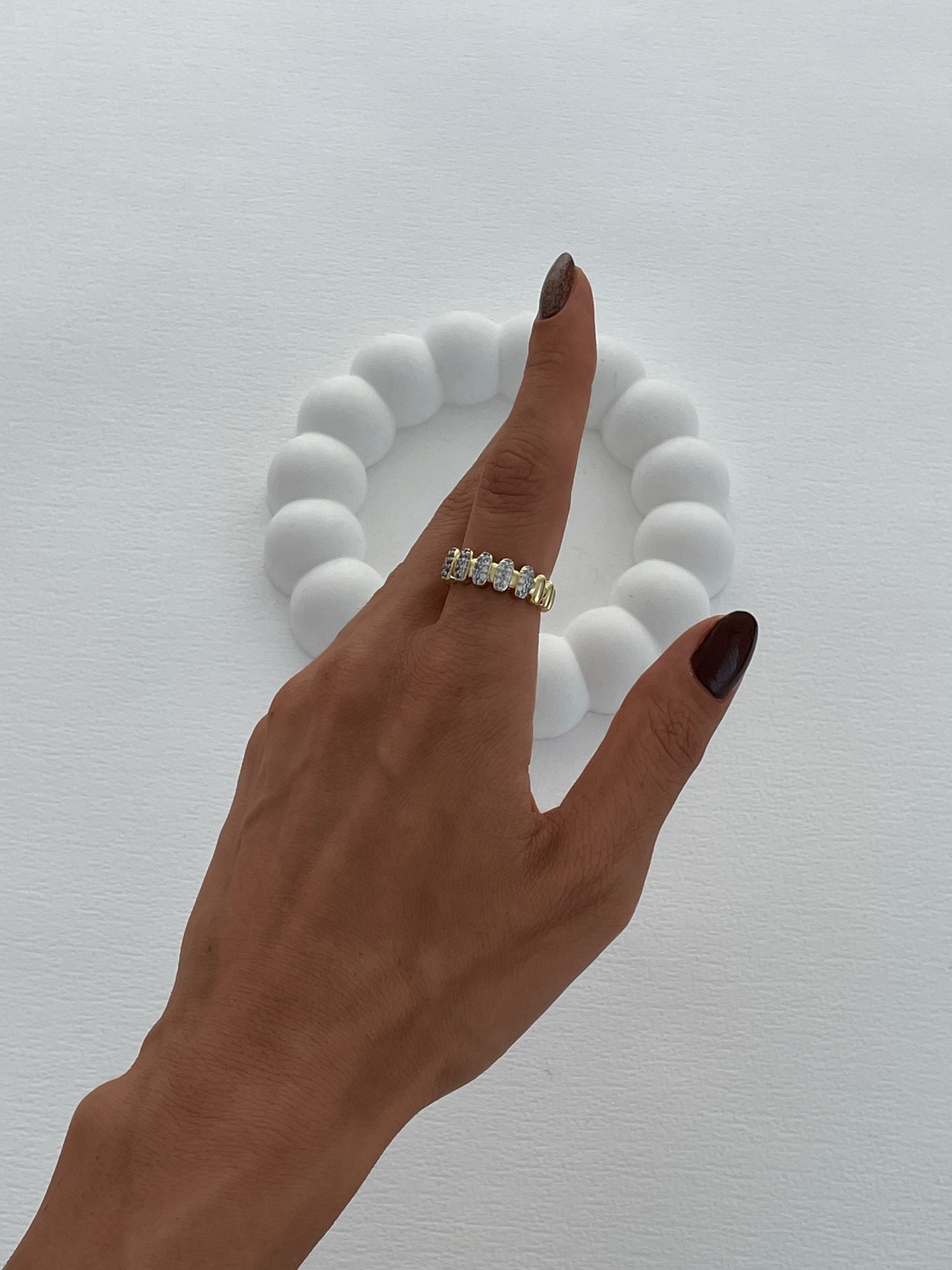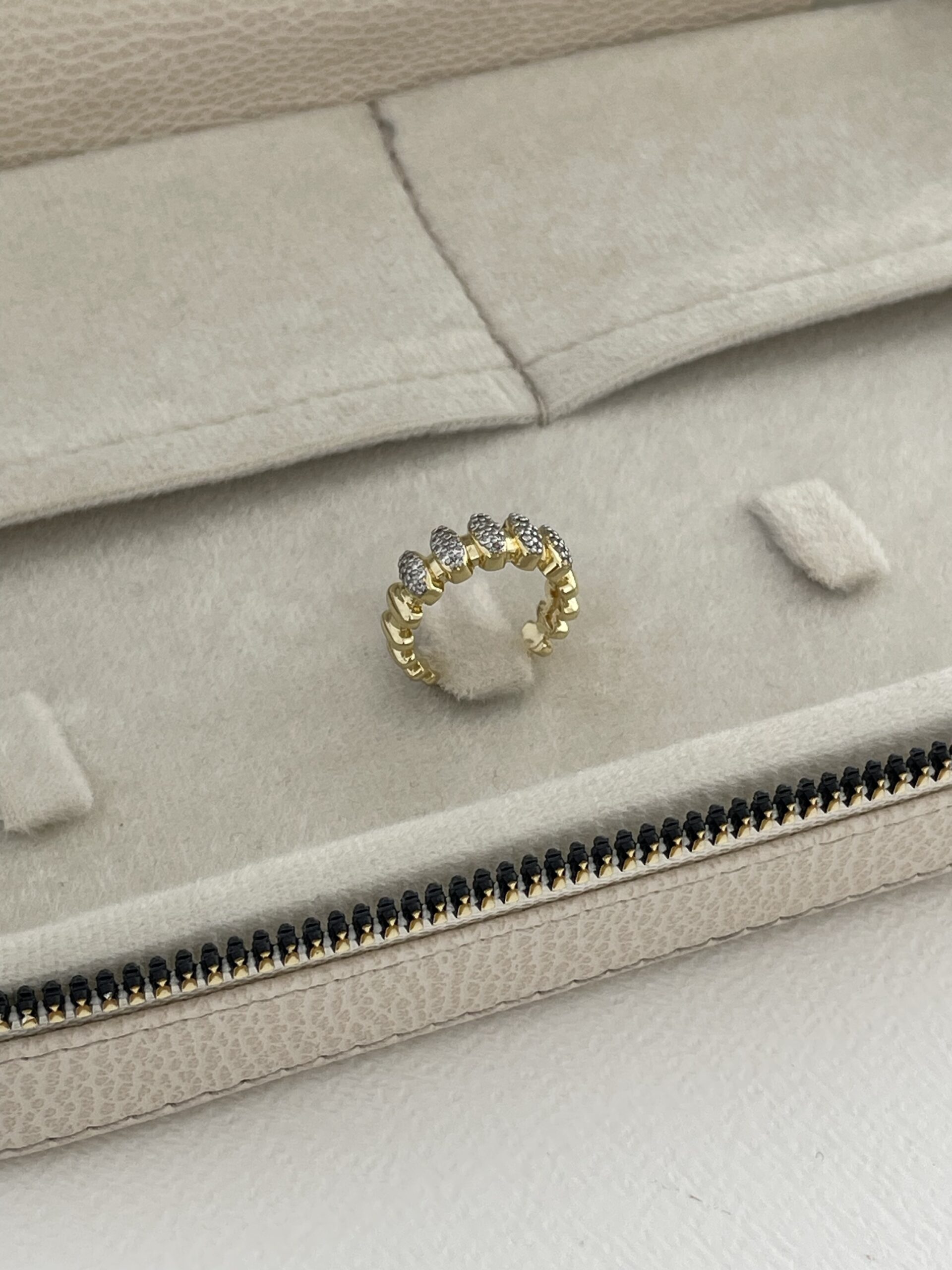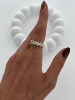 Özel Seri Zirkon Taş Sıralı Oval Tasarım Ayarlanabilir Gold Yüzük