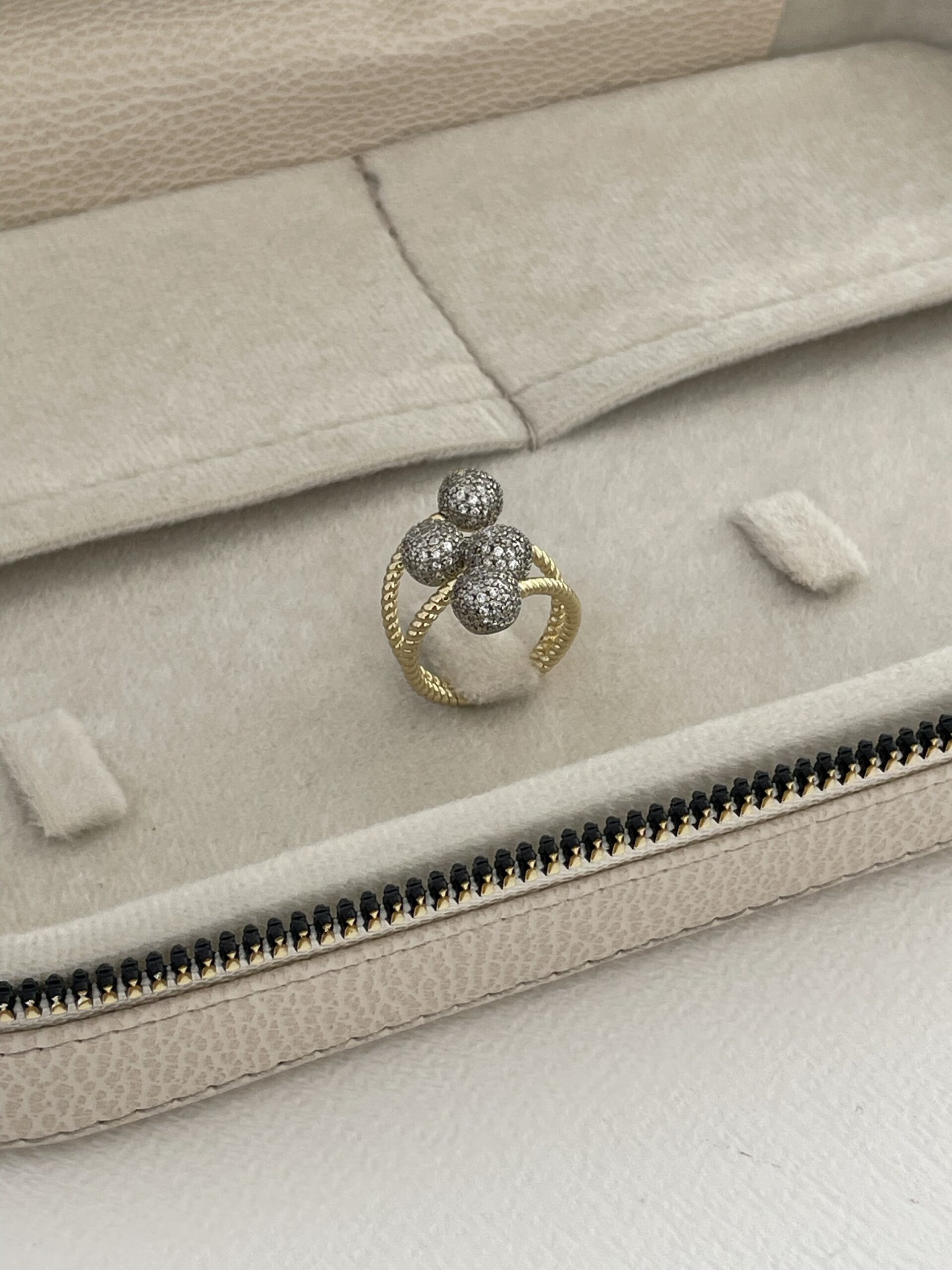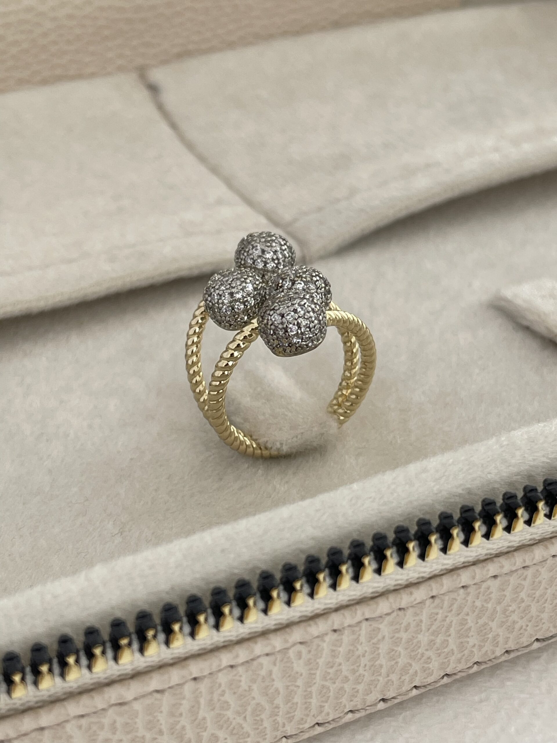 Özel Seri Zirkon Taş Dörtlü Top Tasarım Ayarlanabilir Gold Yüzük