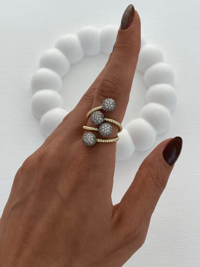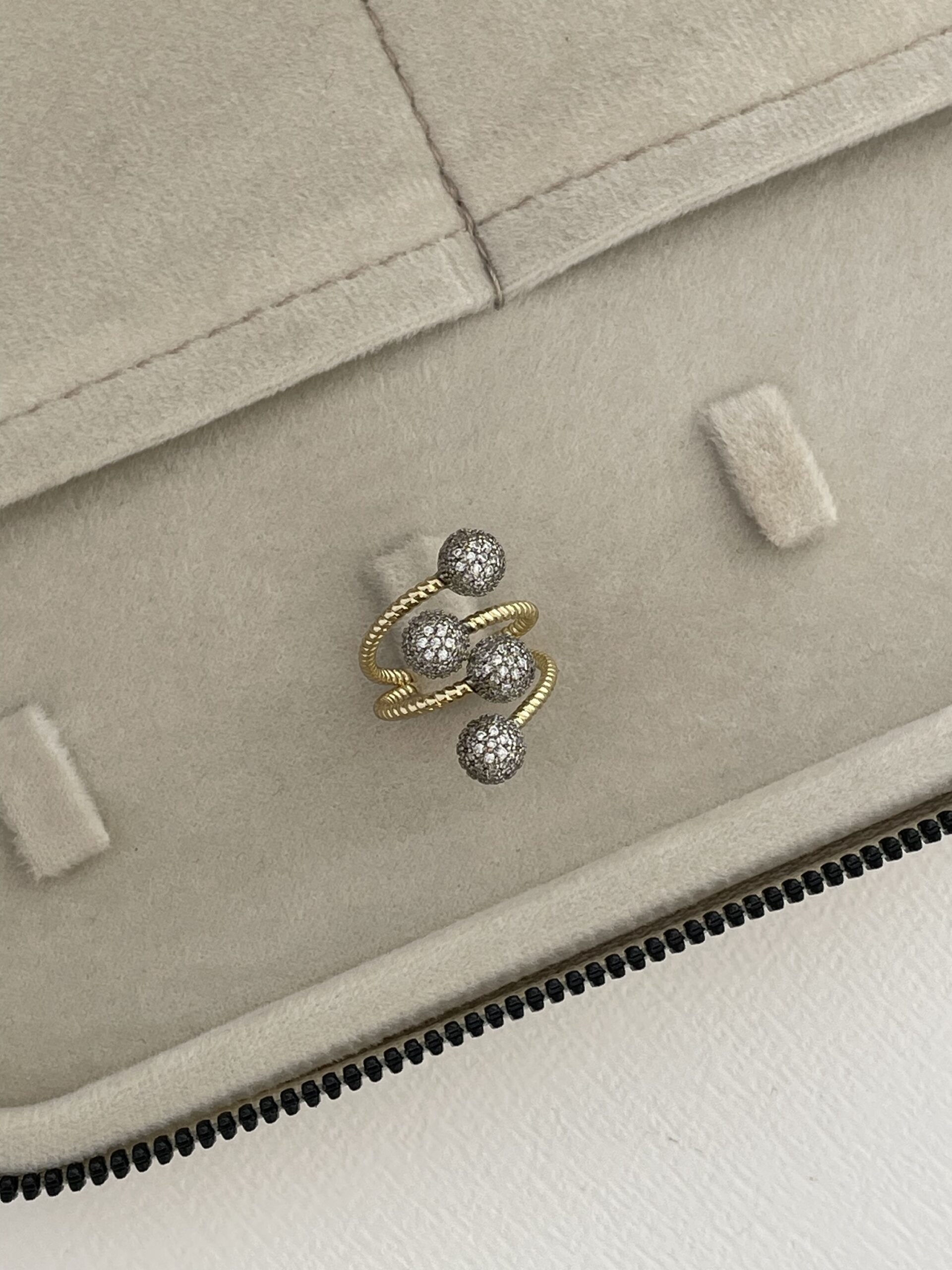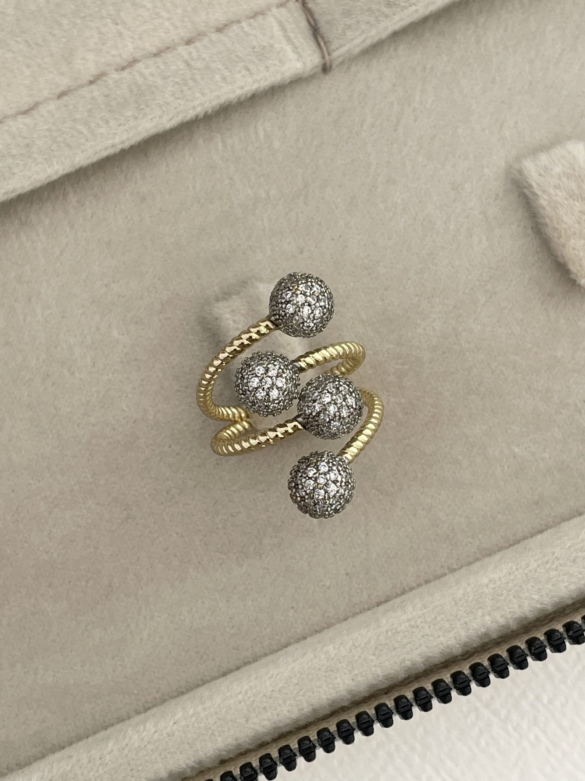 Özel Seri Zirkon Taş Dörtlü Top Tasarım Ayarlanabilir Gold Yüzük