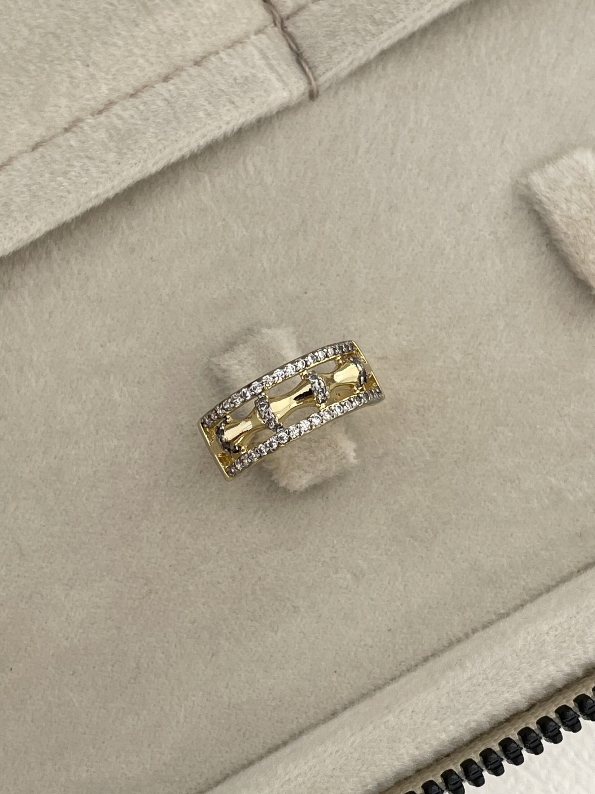 Özel Seri Zirkon Taş Kemik Tasarım Ayarlanabilir Gold Yüzük