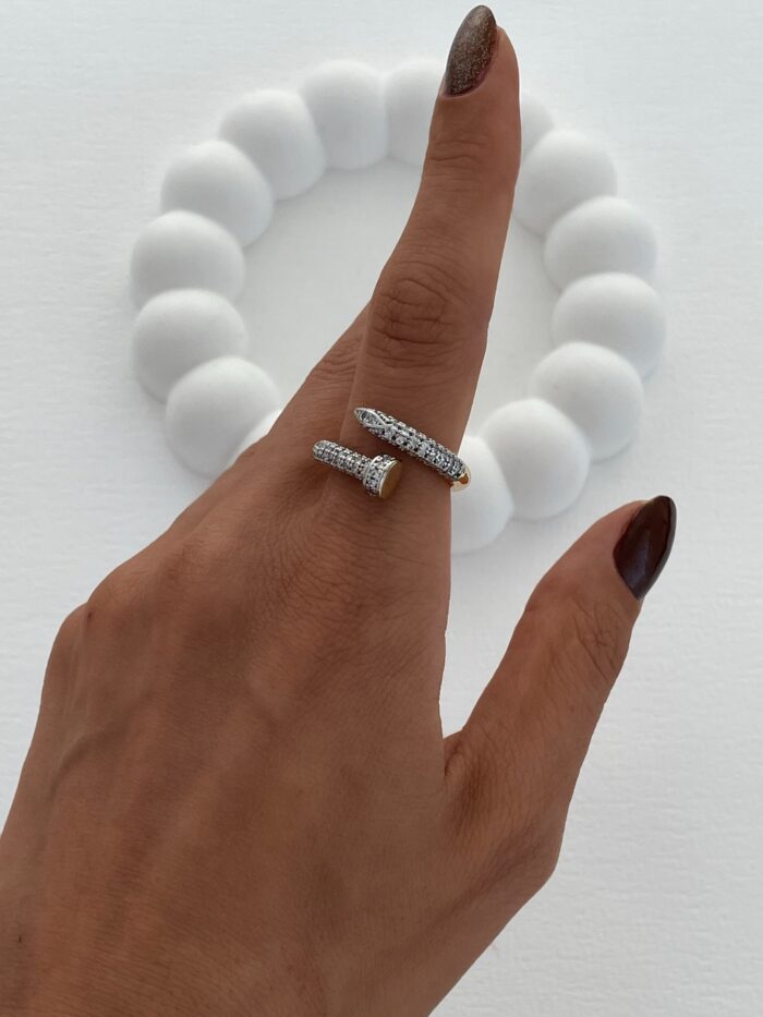 Özel Seri Zirkon Taş Çivi Tasarım Ayarlanabilir Gold Yüzük