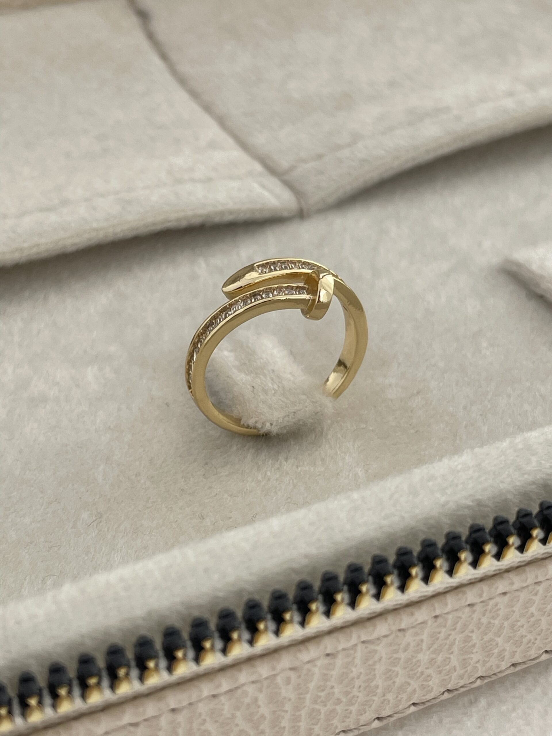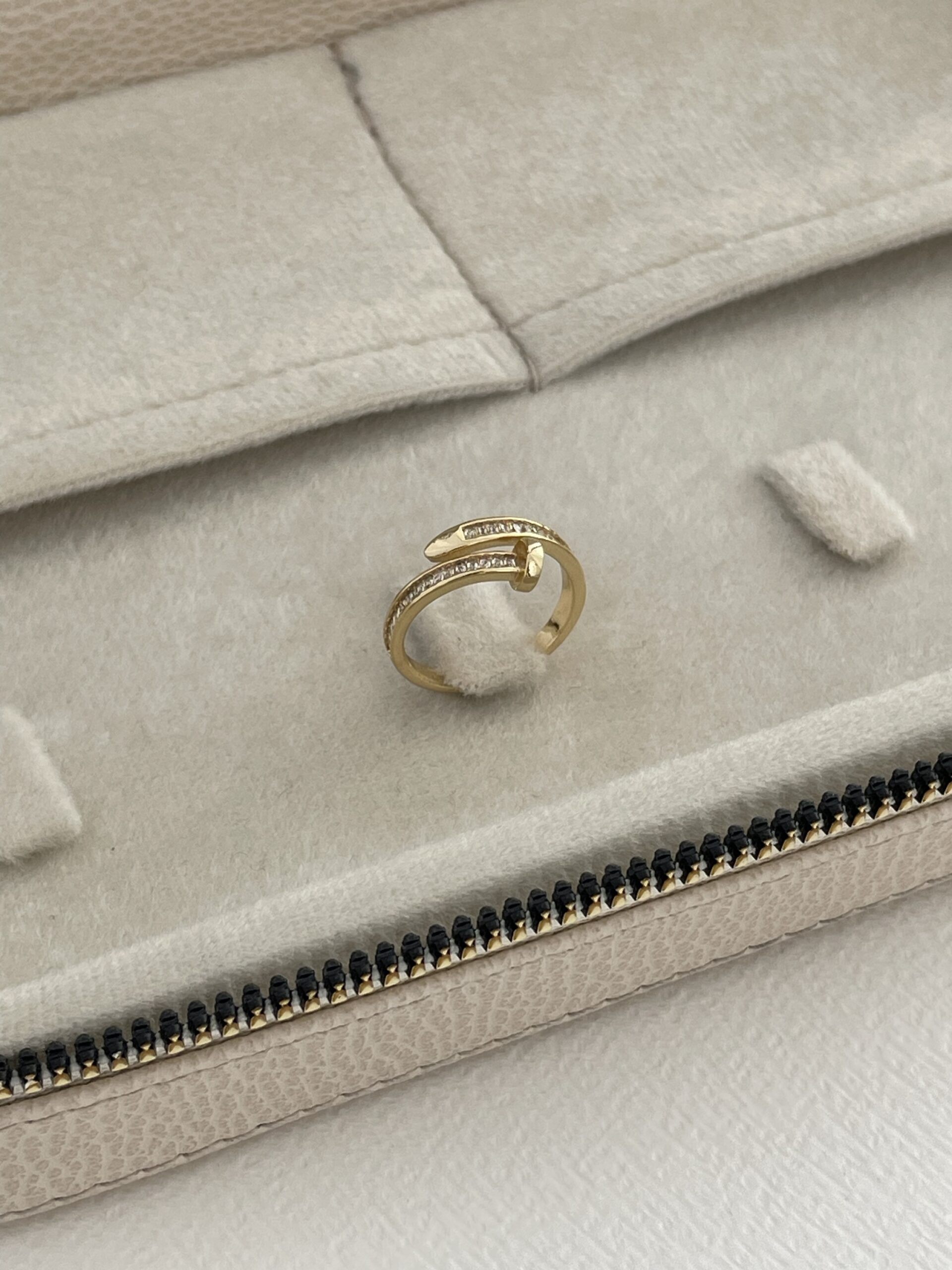 Özel Seri Baget Taş Çivi Tasarım Ayarlanabilir Gold Yüzük