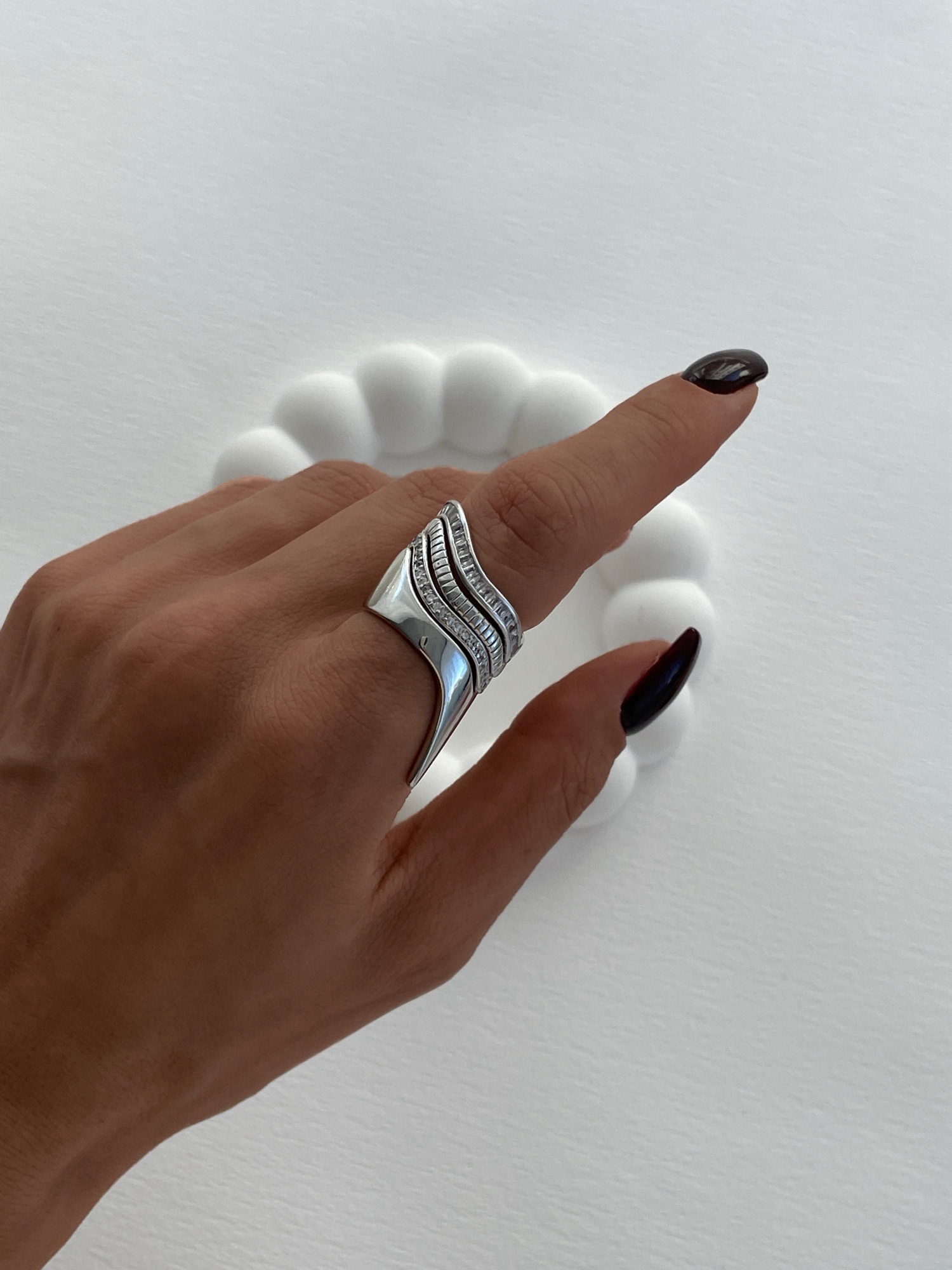 Özel Seri Baget Taşlı S Tasarım Ayarlanabilir Gümüş Yüzük