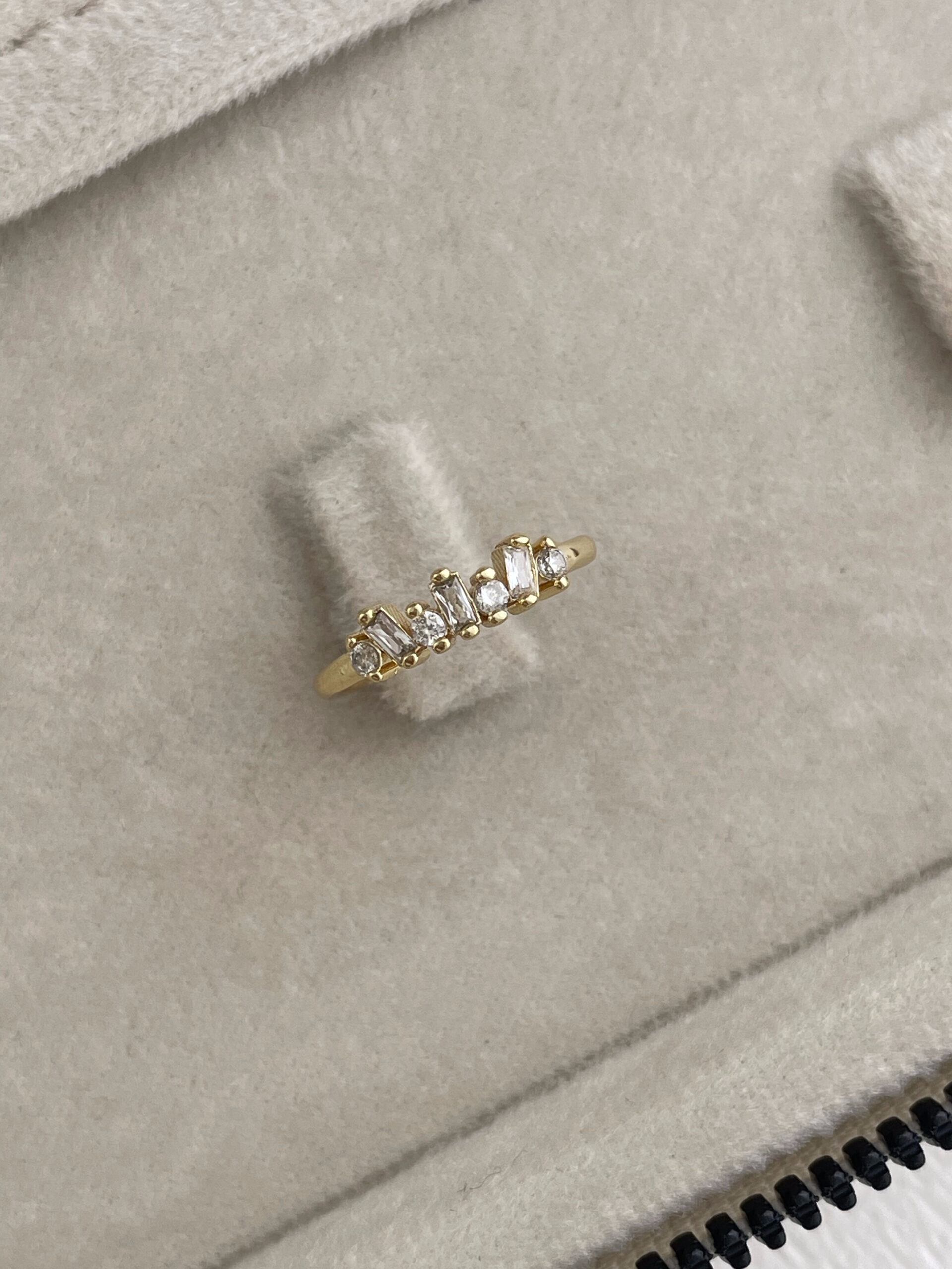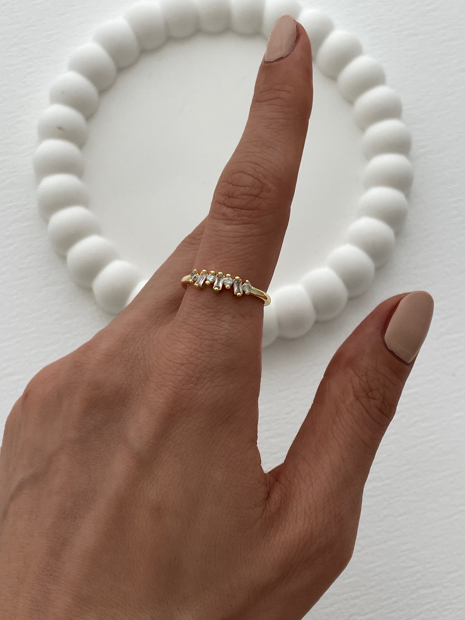 Özel Seri Baget Taş Tasarım Ayarlanabilir Gold Yüzük