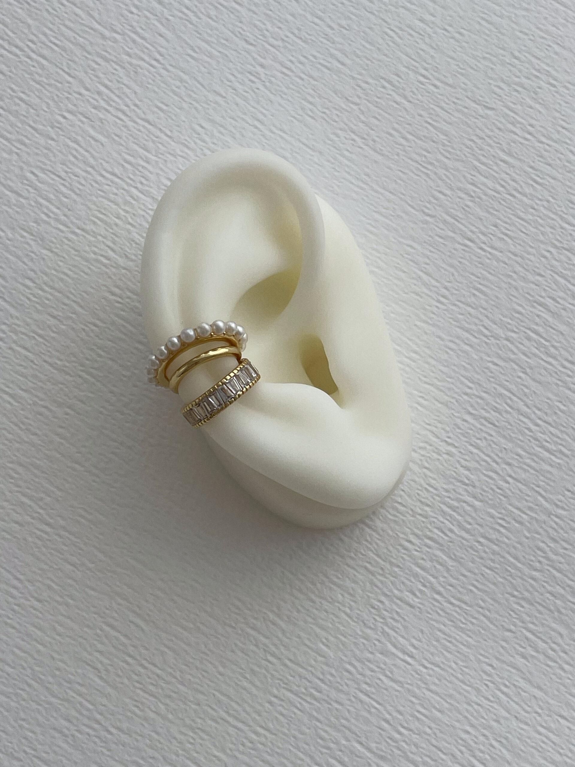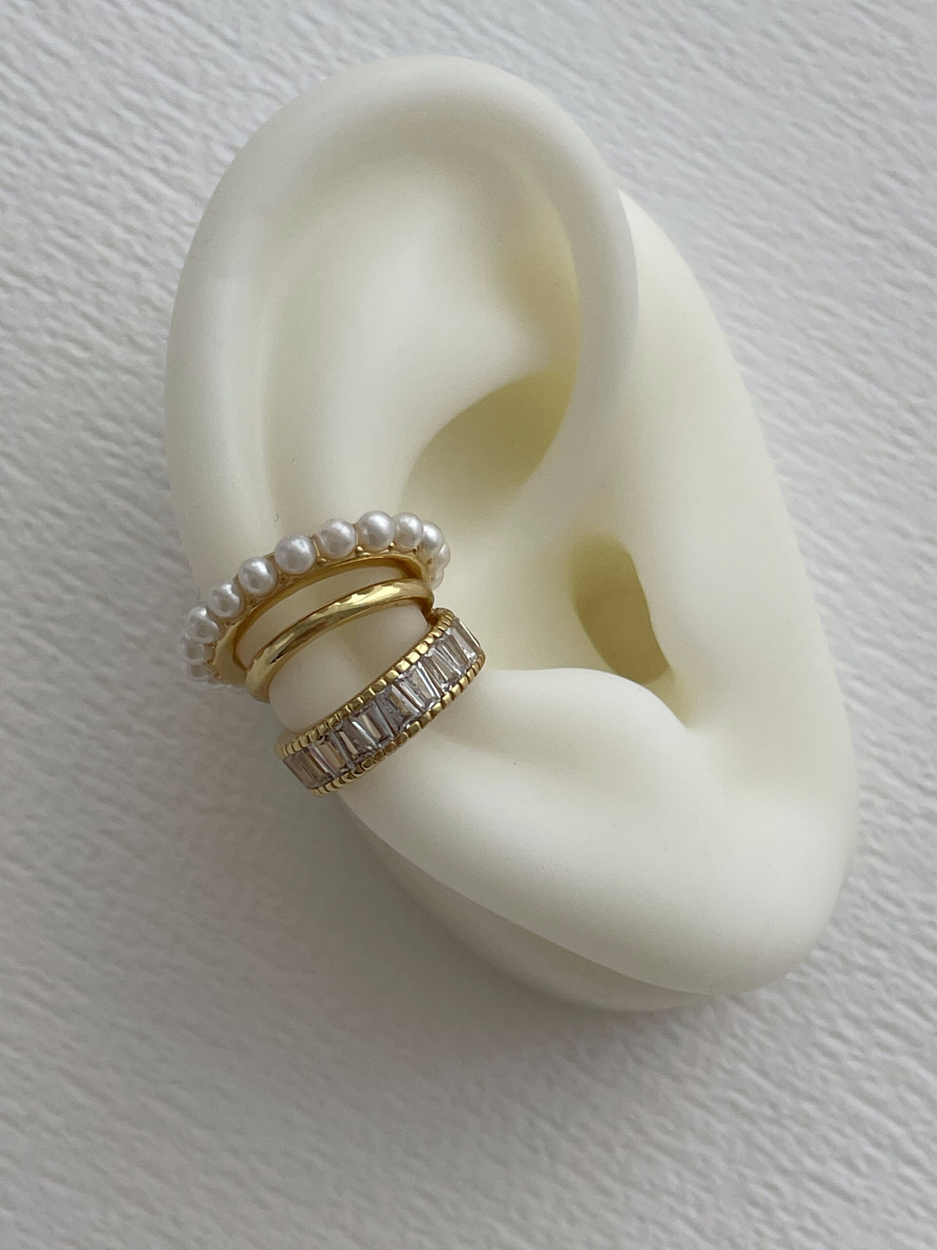 Özel Seri Baget Taş Tasarım İnci Detay Gold Earcuff Küpe
