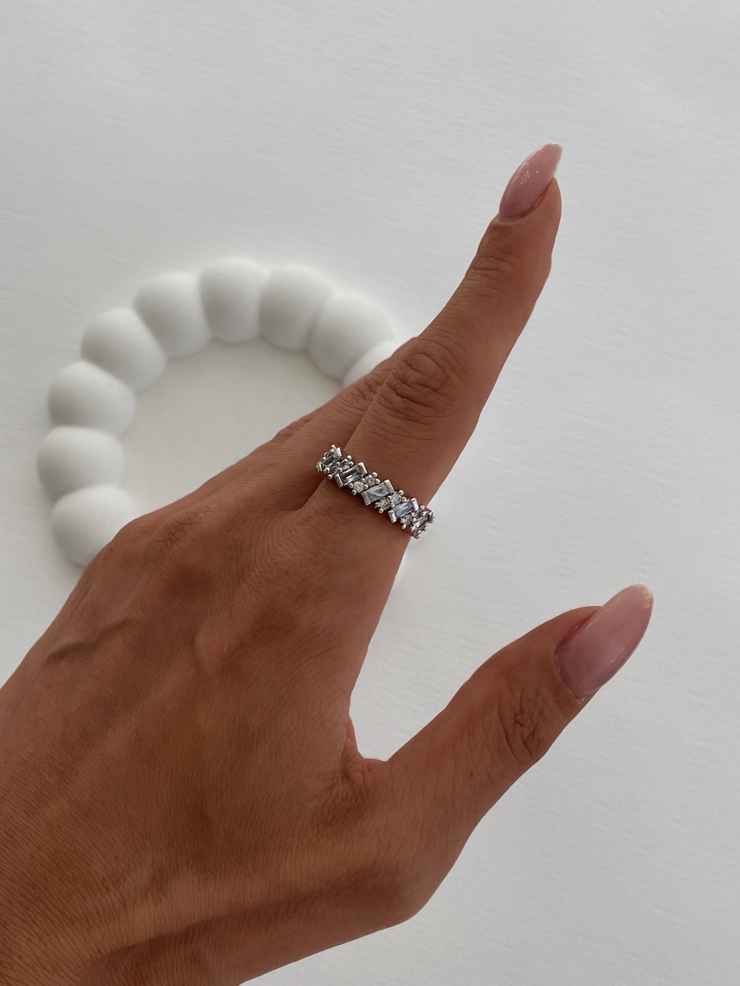 Özel Seri Baget Taşlı Ayarlanabilir Gümüş Yüzük