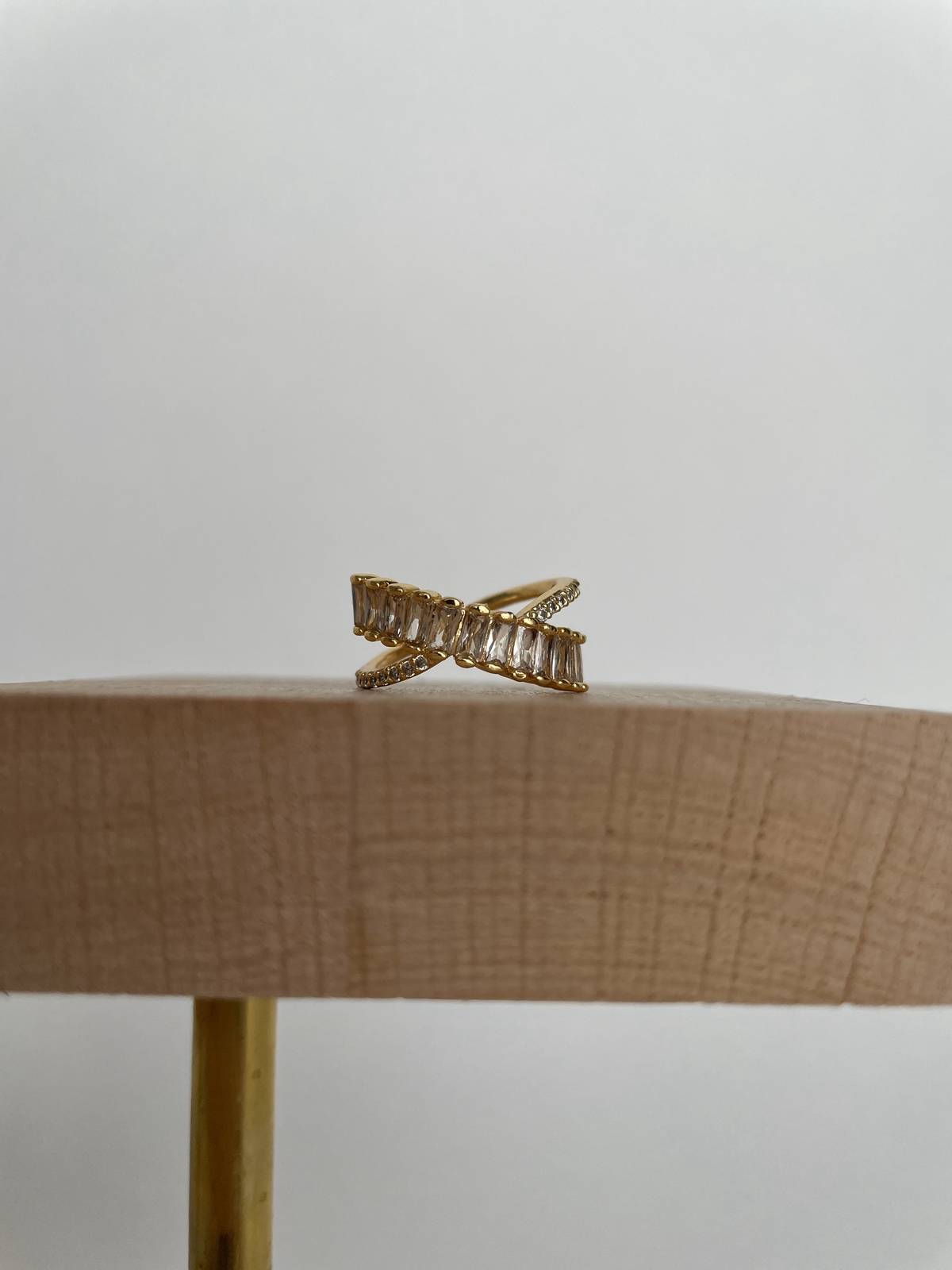 Özel Seri Baget Taşlı Çelik Gold Yüzük