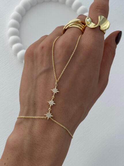 Özel Seri Baget Taşlı Dörtlü Yıldız Tasarım Gold Şahmeran