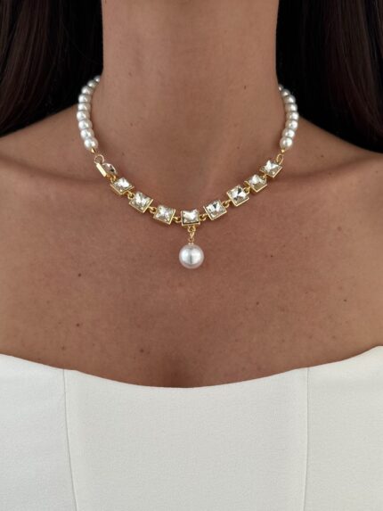 Özel Seri Baget Taşlı Geometrik Tasarım Gold Y Kolye