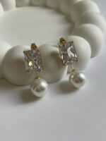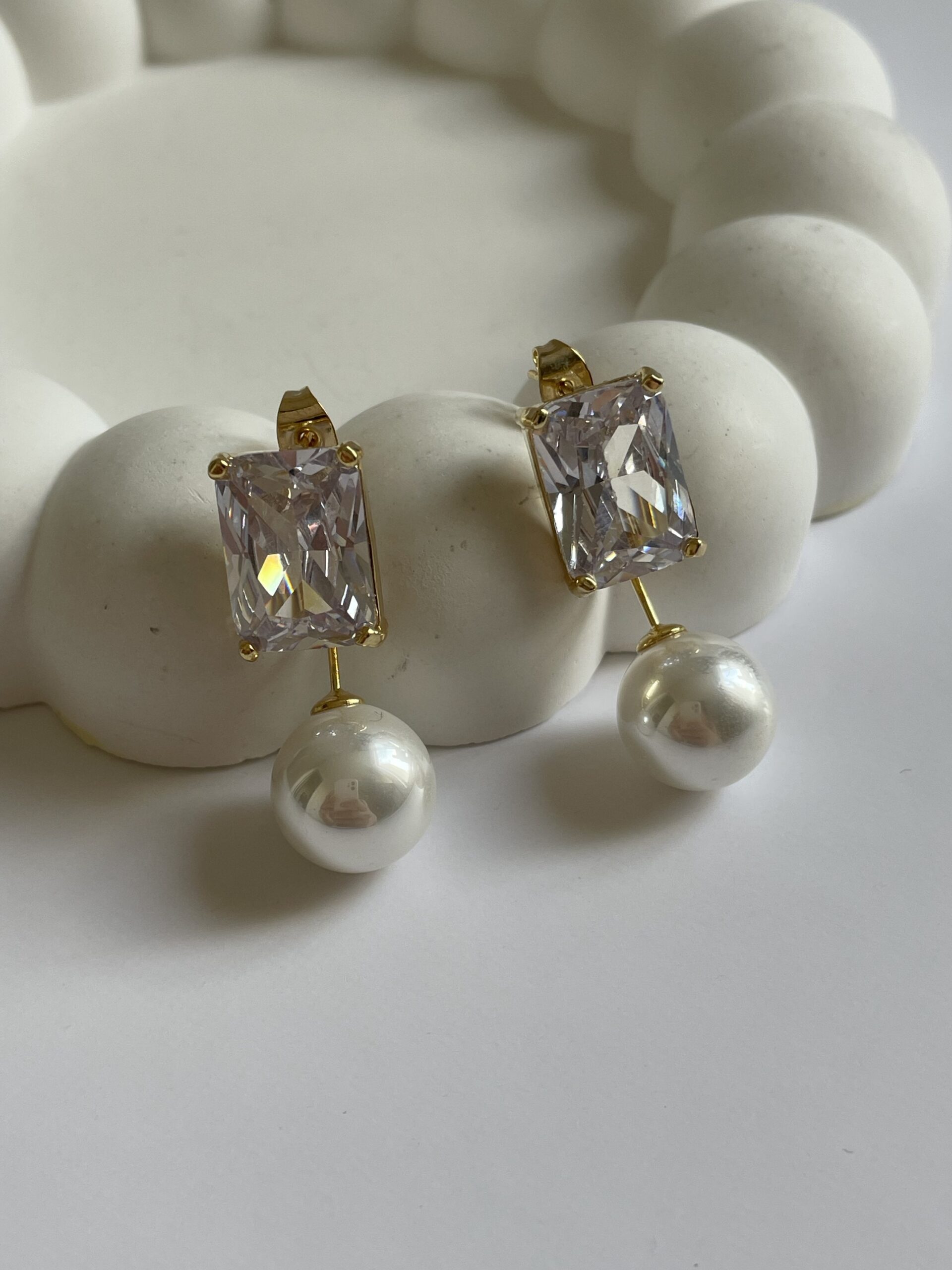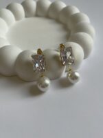 Özel Seri Baget Taşlı Gold İnci Küpe