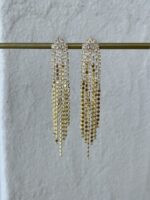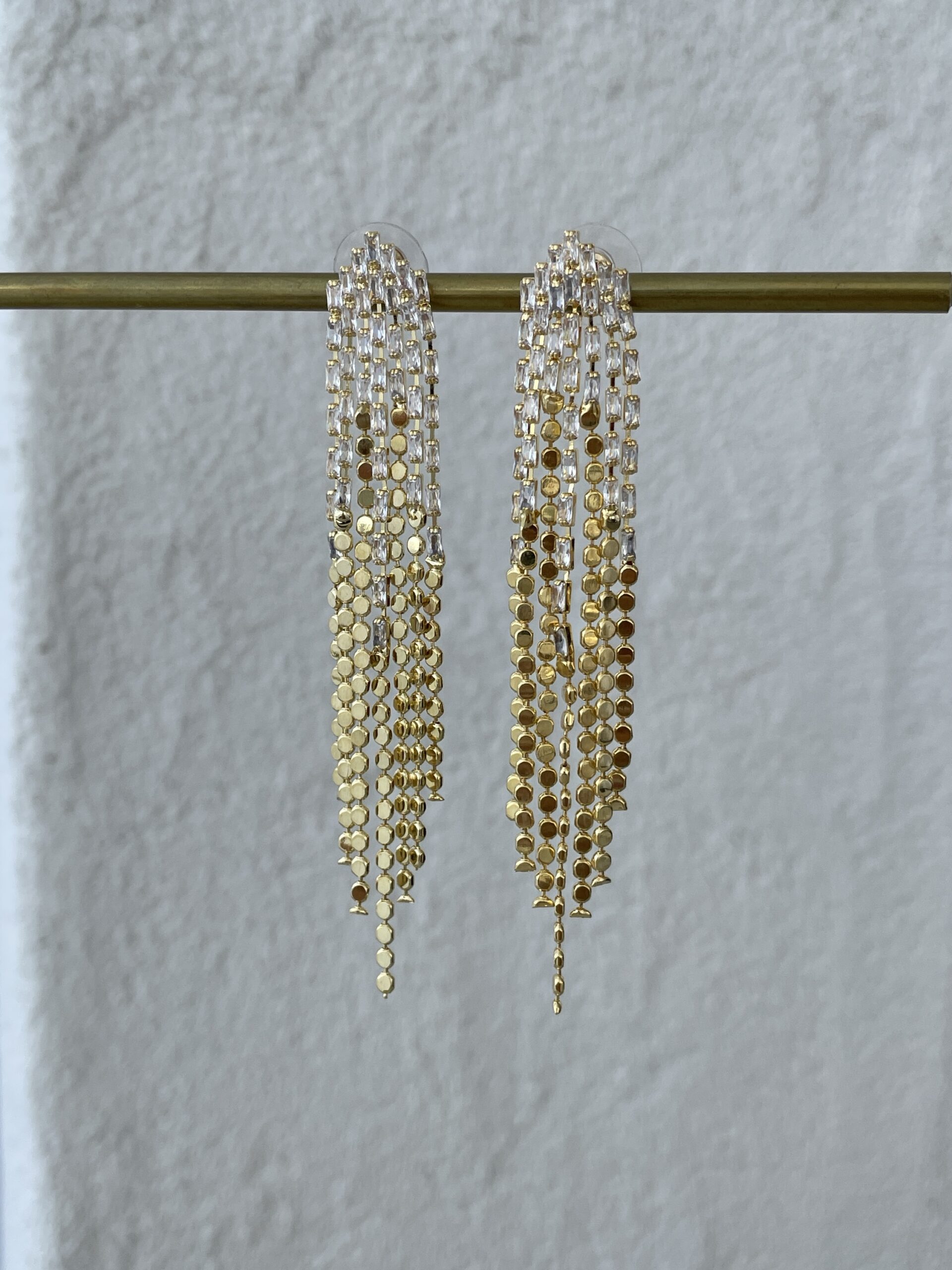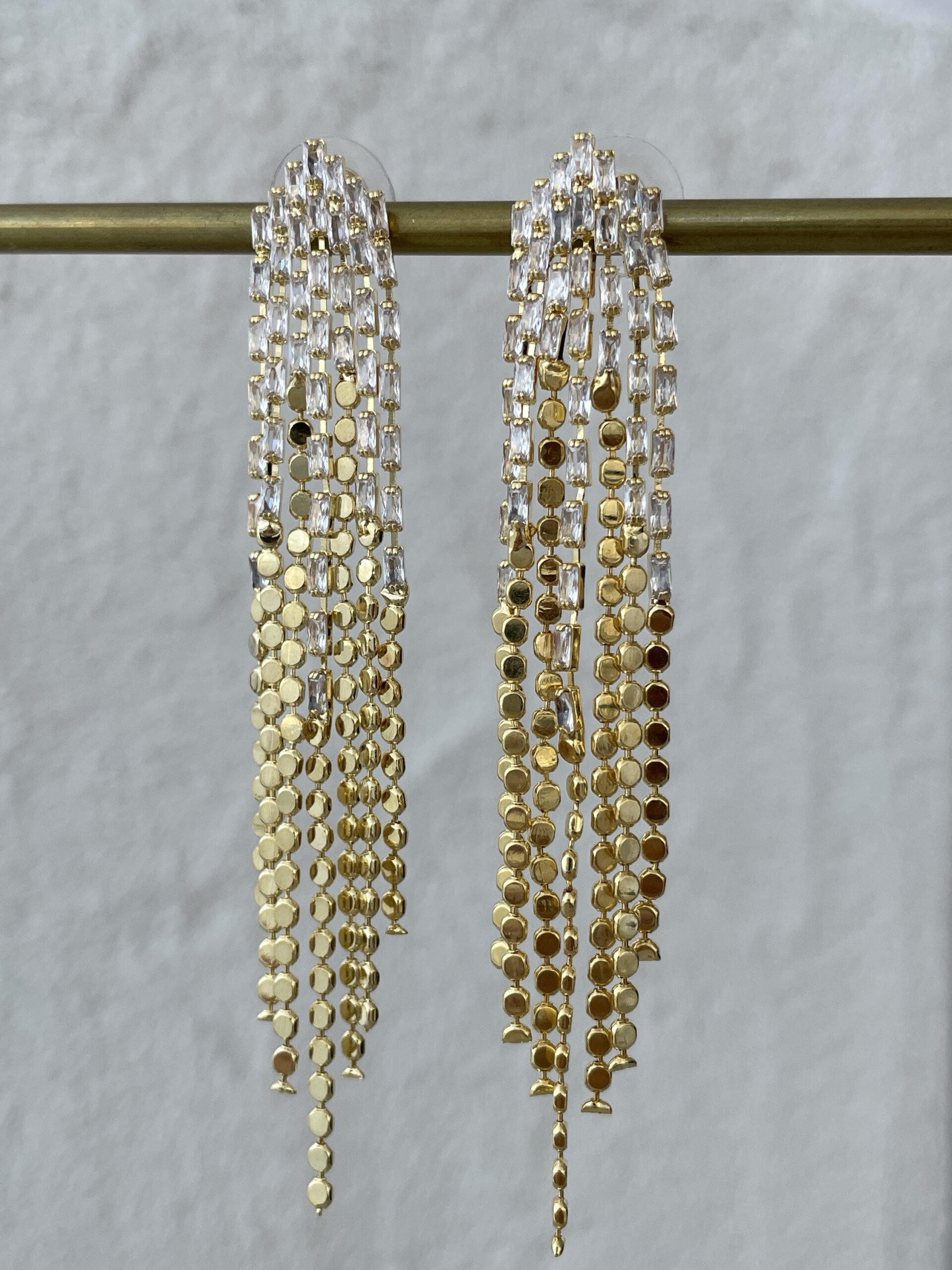 Özel Seri Baget Taşlı Gold Sallantılı Ezme Zincir Küpe