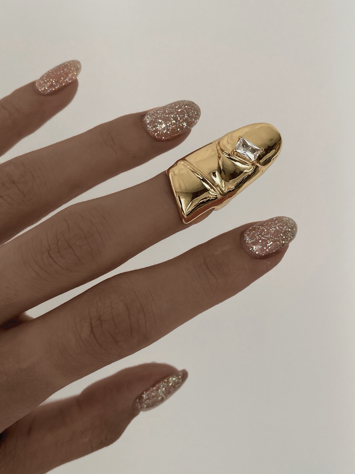 Özel Seri Baget Taşlı Gold Tırnak Yüzüğü