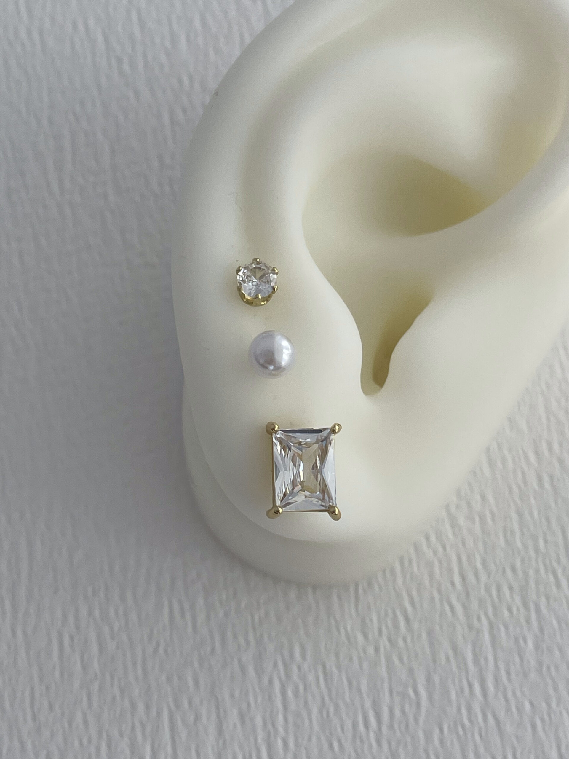 Özel Seri Baget Taşlı Gold Üçlü Küpe Seti