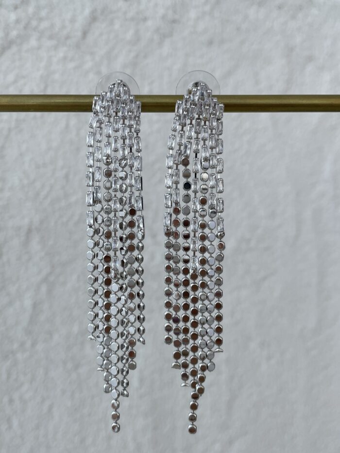 Özel Seri Baget Taşlı Gümüş Sallantılı Ezme Zincir Küpe